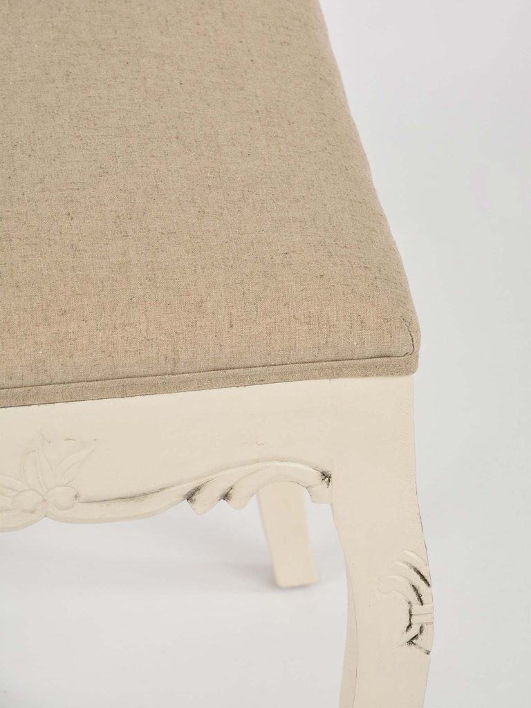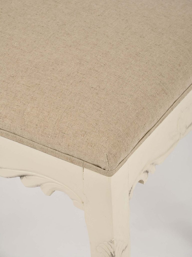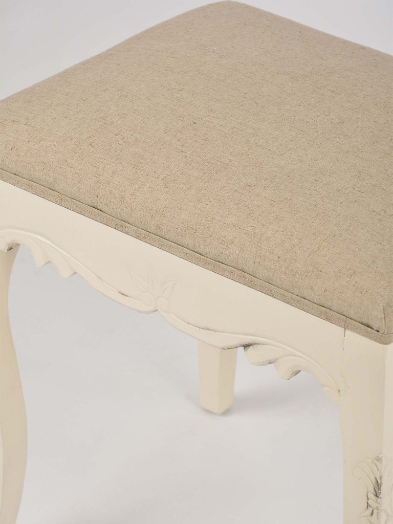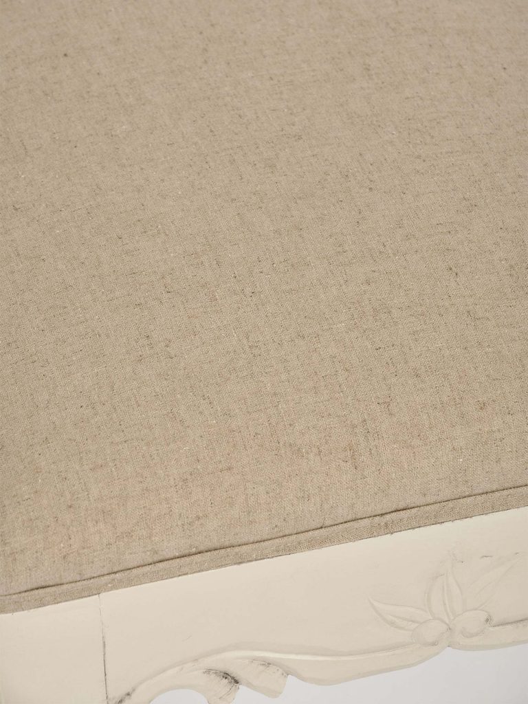 Siedzisko tapicerowane w stylu prowansalskim w kolorze kremowym.