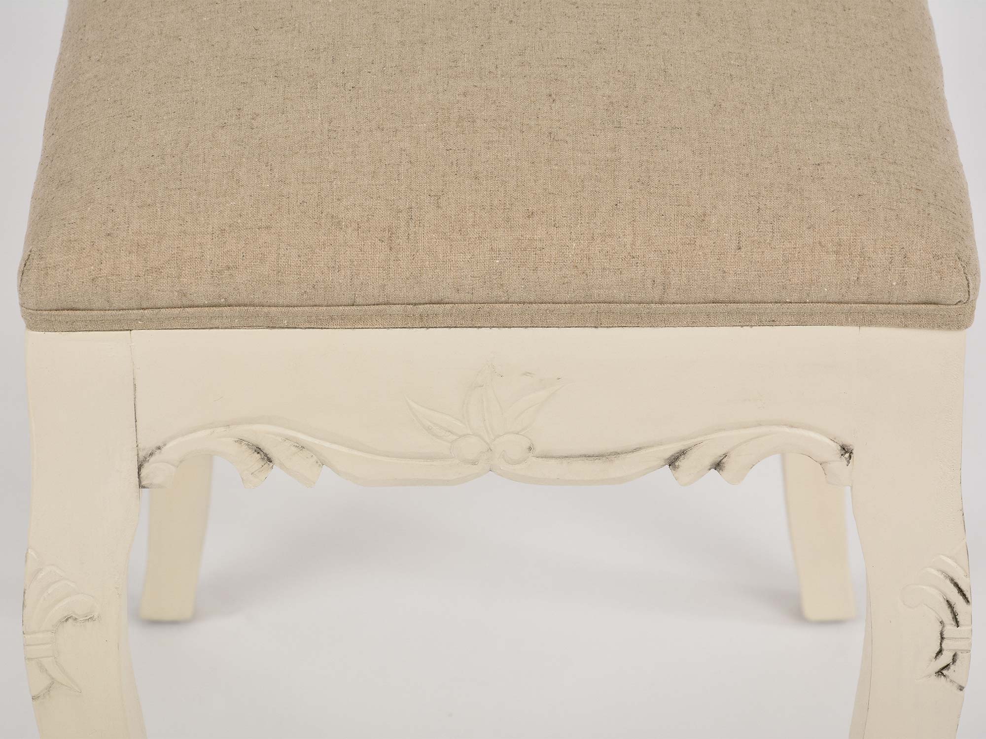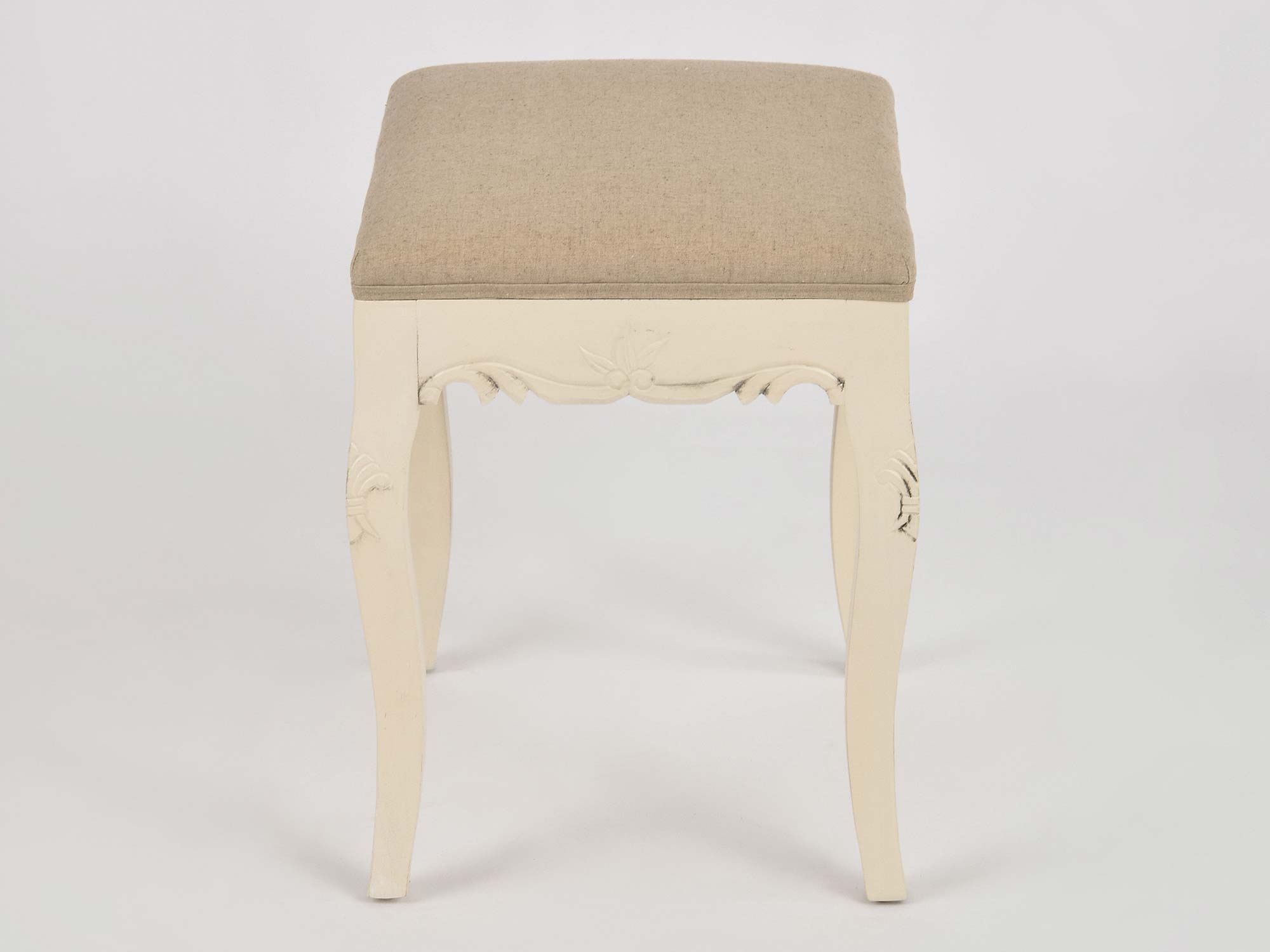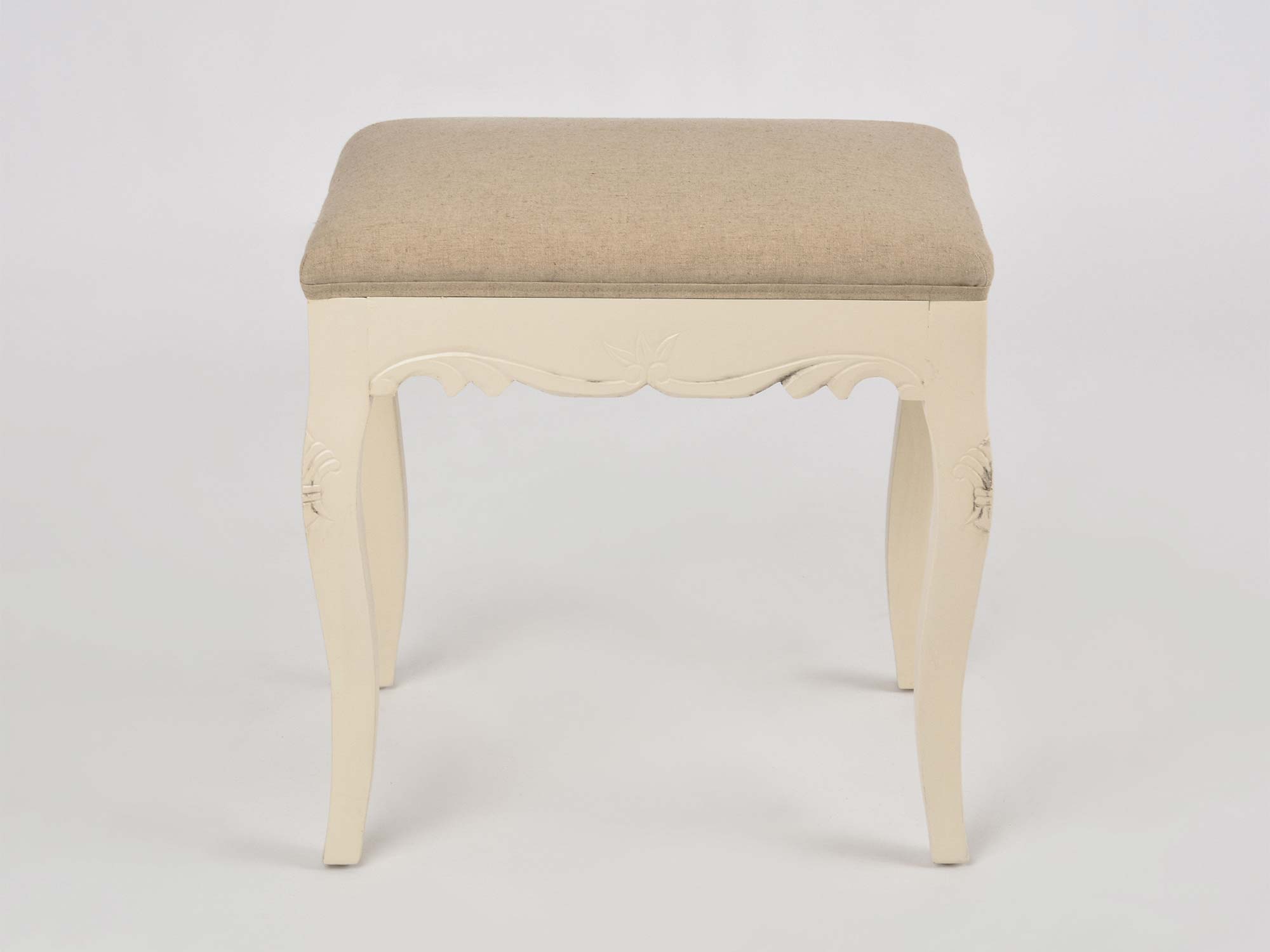 Siedzisko tapicerowane w stylu prowansalskim w kolorze kremowym.