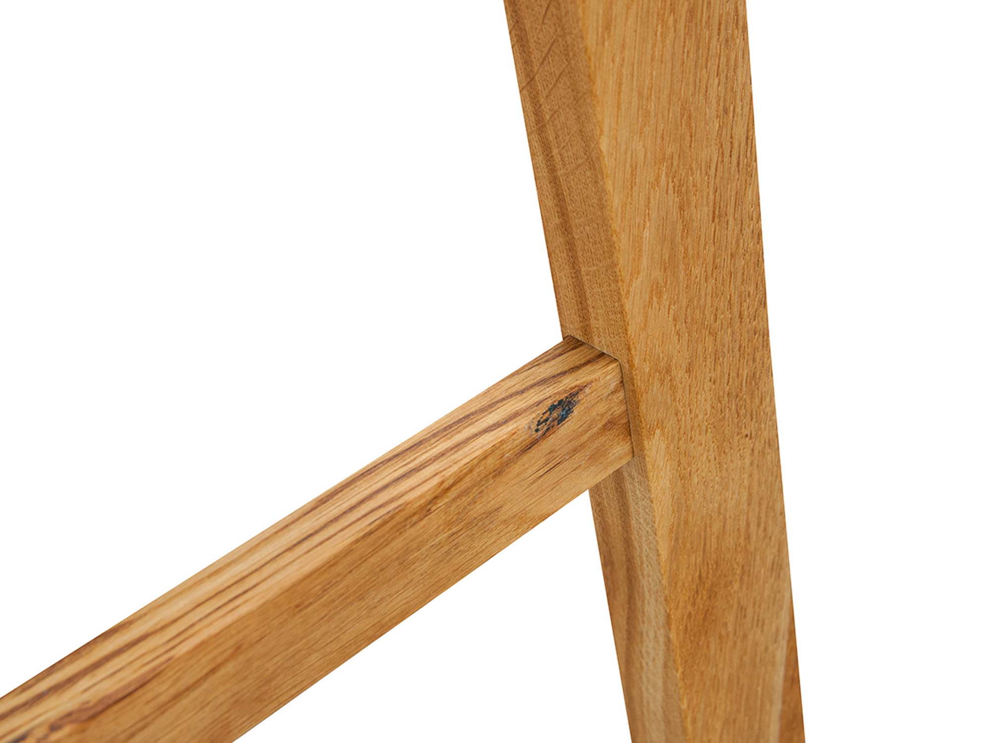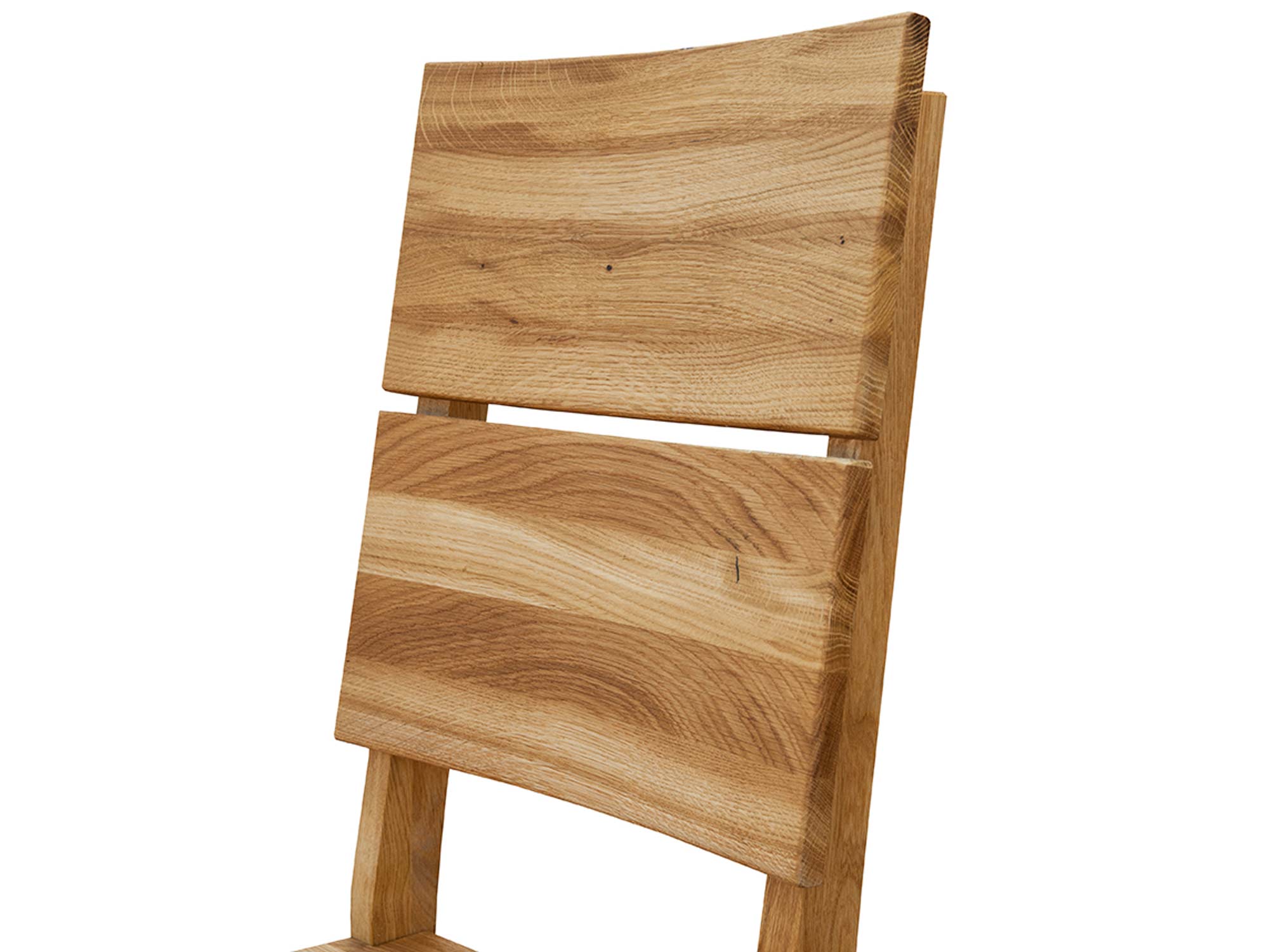 Przede wszystkim na uwagę zasługuje materiał wykonania prezentowanego krzesła, gdyż został on w całości wykonany z litego drewna dębowego. Drewno dębowe charakteryzuje się niezwykłą wytrzymałością i solidnością jak i również ponadczasowością w wyglądzie. Z tego względu jest to inwestycja na długie lata, gdyż nawet z upływem lat i przeminięciem mody, jest to mebel na tyle uniwersalny iż dopasuje się zdecydowanie do większości wnętrz. Co więcej prosta bryła, solidne nogi oraz znakomicie wyprofilowane oparcie tworzy funkcjonalny, komfortowy i ponadczasowy mebel. Dodatkowo sęki występujące naturalnie w drewnie dodają meblu charakteru tworząc za każdym razem jedyny w swoim rodzaju. Warto jednak pamiętać, aby meble dębowe nie miały bezpośredniego kontaktu z wysoką temperaturą, dlatego warto stosować poduszki na krzesła.