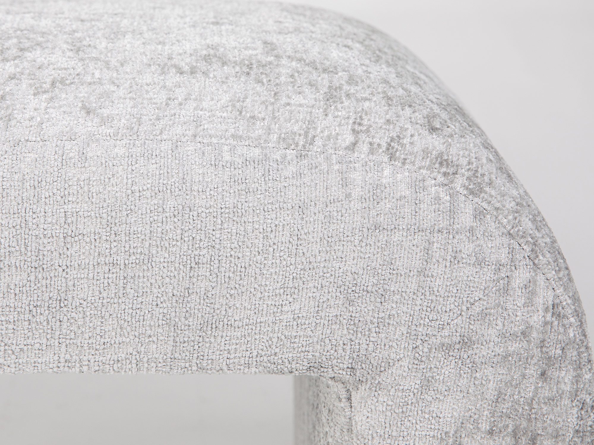 Elegancka ławka tapicerowana w kolorze srebrnoszarym wykonana z najwyższej jakości tkaniny szenilowej. Prosta otwarta forma mebla idealnie sprawdzi się w salonie, sypialni czy przedpokoju.