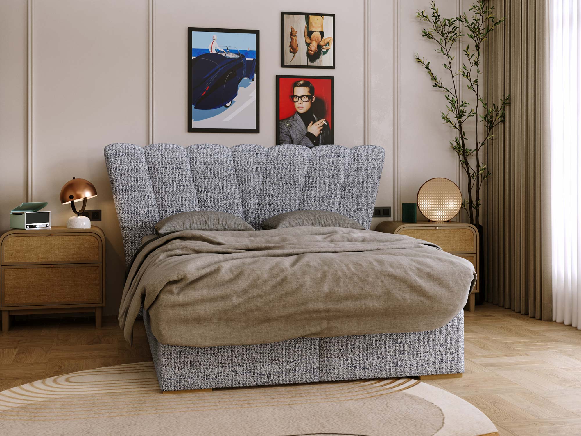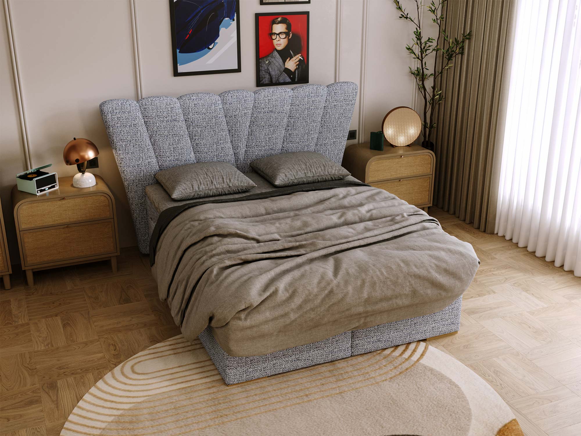 Designerskie łóżko kontynentalne HUBBY to wyjątkowa propozycja, która łączy nowoczesny design z maksymalnym komfortem snu. Stworzone dla osób, które cenią oryginalny styl, funkcjonalność oraz wysoką jakość, łóżko HUBBY stanie się centralnym punktem Twojej sypialni, nadając jej niepowtarzalny charakter. Jego unikalny zagłówek, inspirowany wachlarzowym kształtem, nie tylko przyciąga wzrok, ale także zapewnia wygodę podczas wypoczynku.