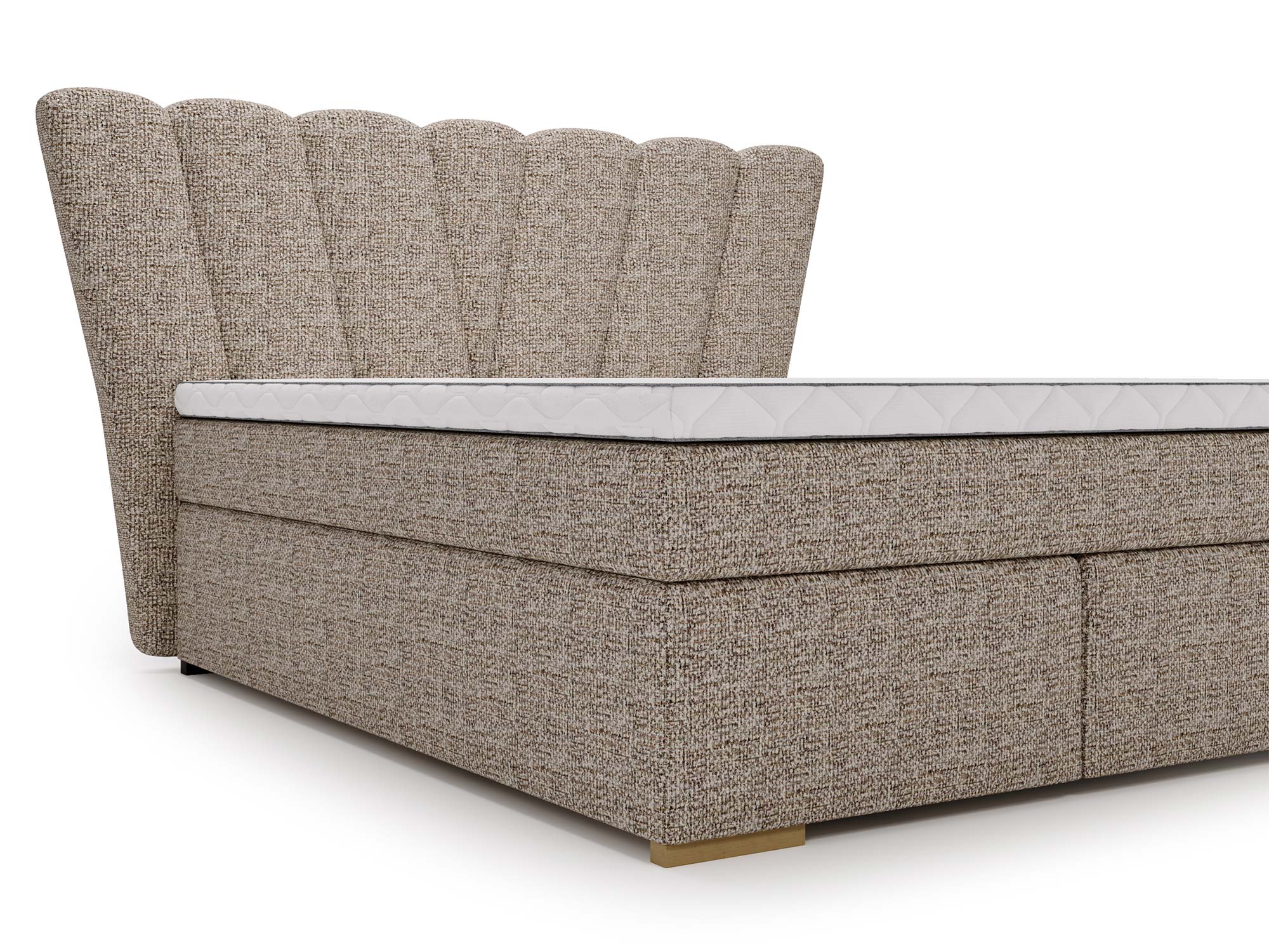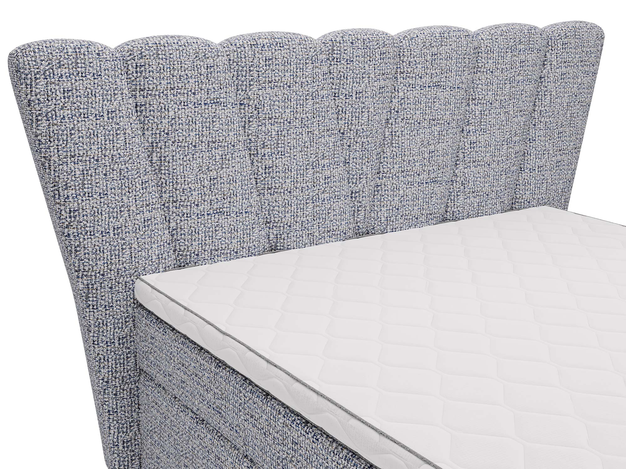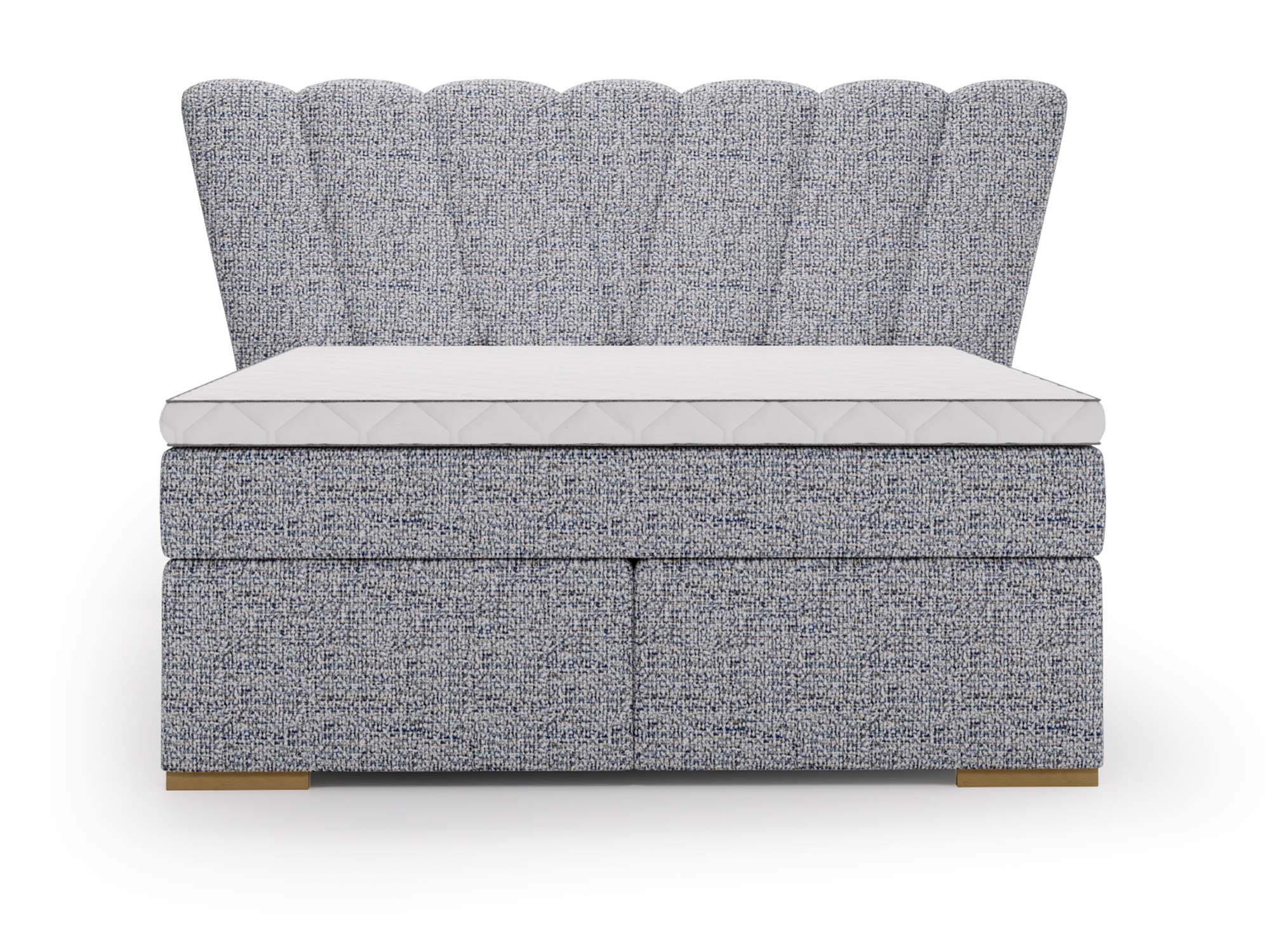Najbardziej charakterystycznym elementem łóżka HUBBY jest jego oryginalny zagłówek. Stylizowany na kształt wachlarza, stanowi artystyczną ozdobę wnętrza, podkreślając ekskluzywność oraz finezję sypialni. Zagłówek nie tylko wprowadza nowoczesny design, ale jest również niezwykle funkcjonalny, zapewniając wygodne oparcie podczas wieczornego relaksu – idealny do czytania książki lub oglądania telewizji. Jego wysokość wynosząca 128 cm czyni łóżko HUBBY imponującym elementem dekoracyjnym, który natychmiast staje się główną atrakcją sypialni.