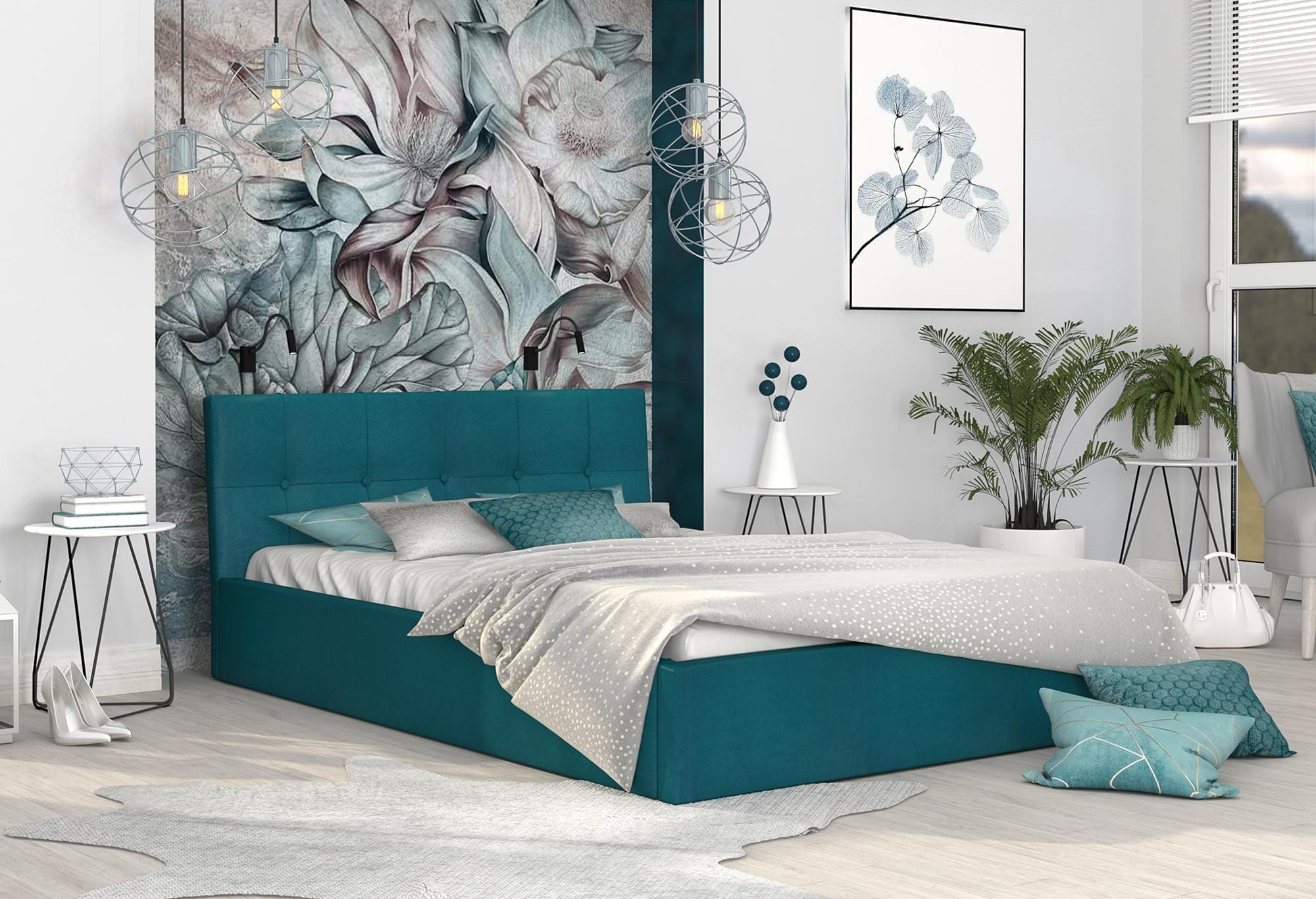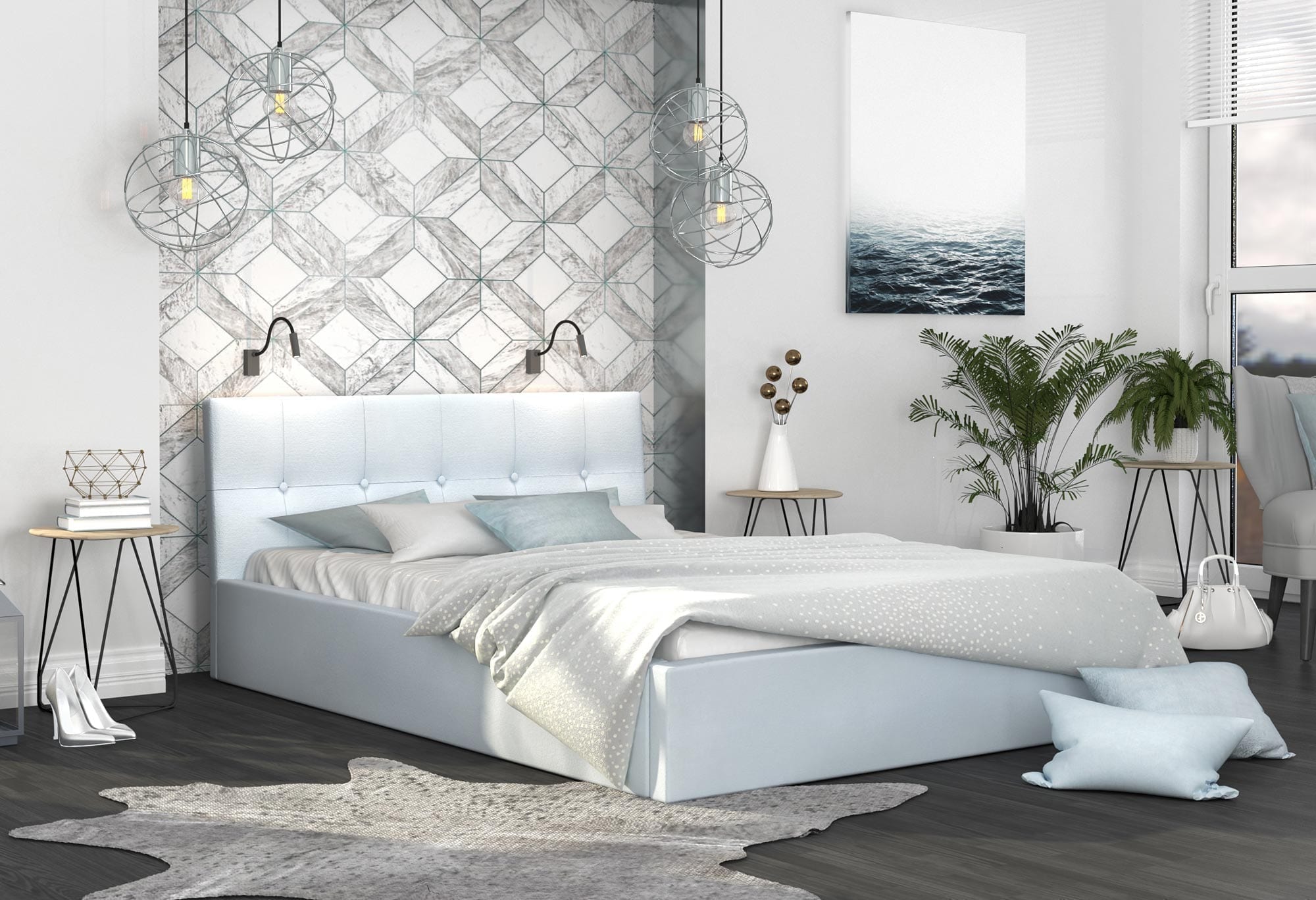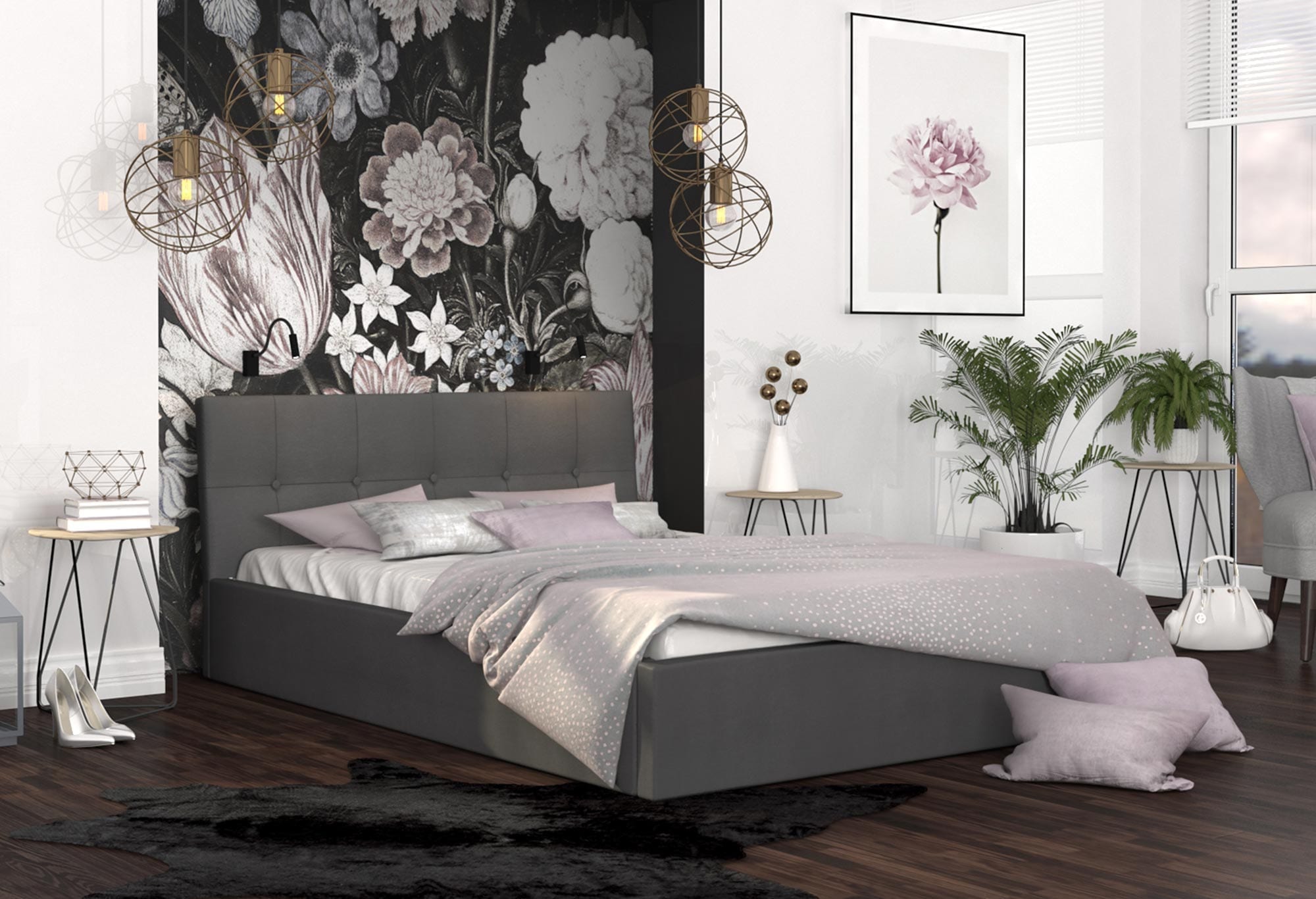 Wygodne łóżko z materiałów wysokiej jakości, dzięki czemu to mebel solidny, a przy tym świetnie się prezentujący. Ponadto jego ciekawy fason dostępny w wielu wersjach kolorystycznych będzie pasował do każdej sypialni. Łóżko występuje też w tapicerce z eko-skóry.
