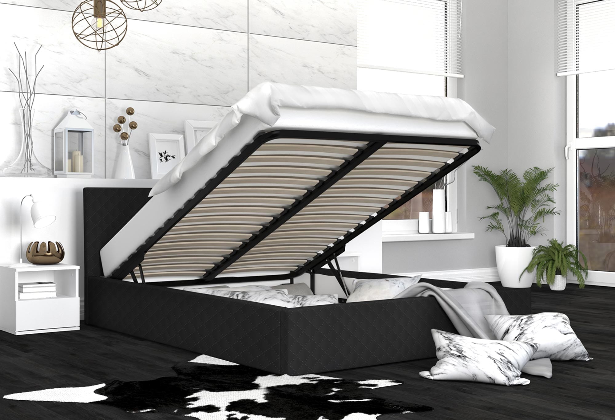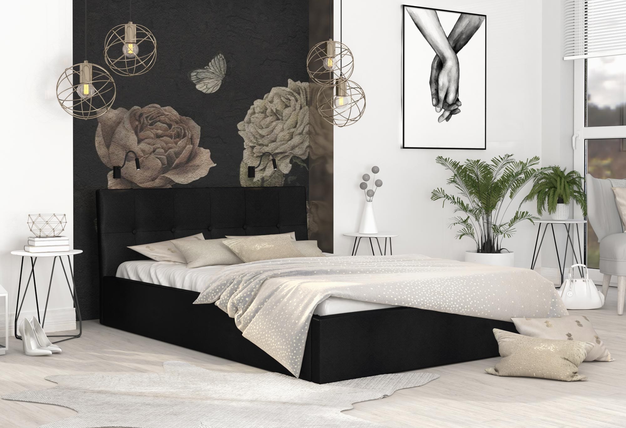 Dwuosobowe łóżko czarne podniesiony stelaż 140x200 RUBY
