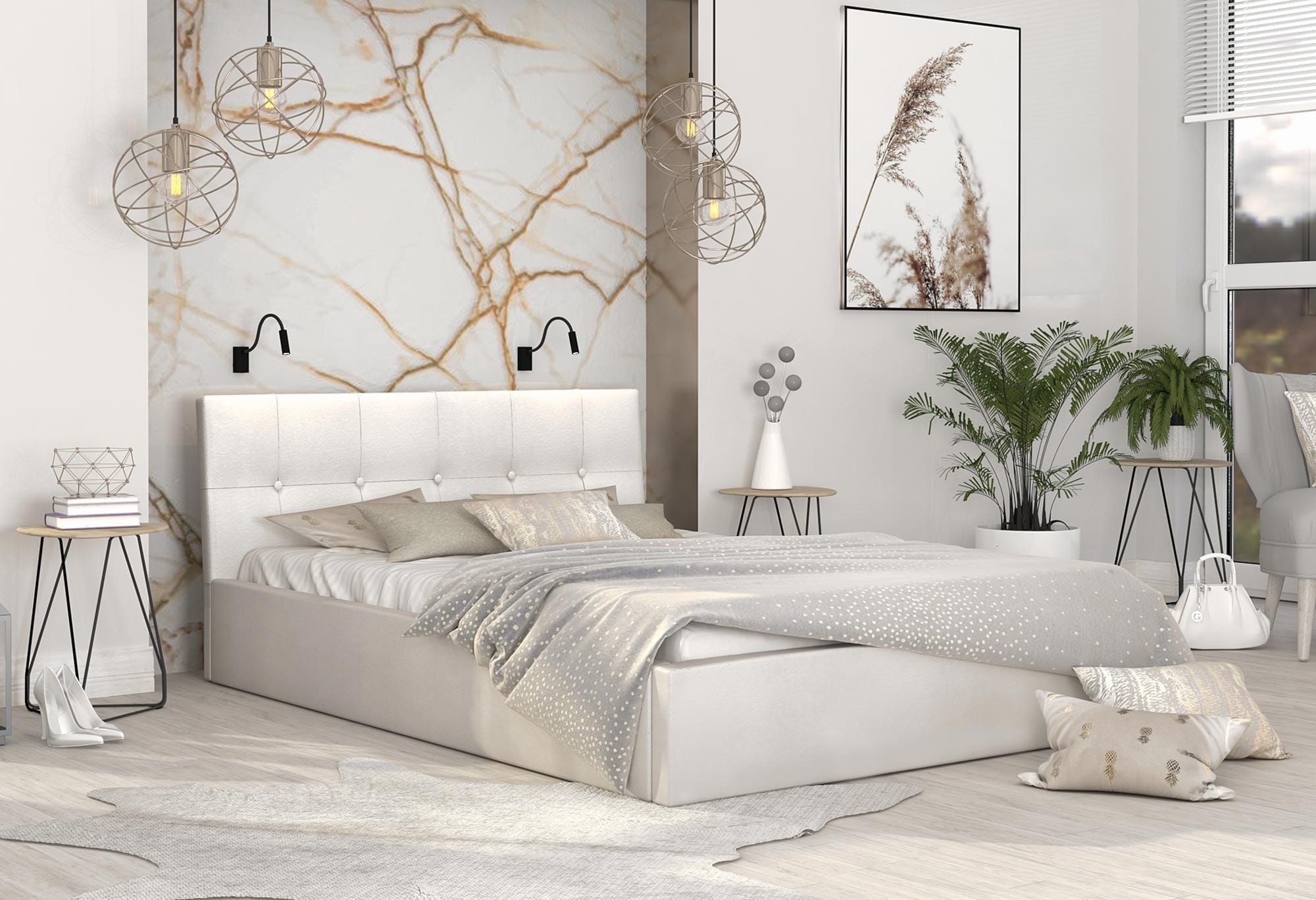 Dwuosobowe łóżko kremowe aranżacja 140x200 RUBY