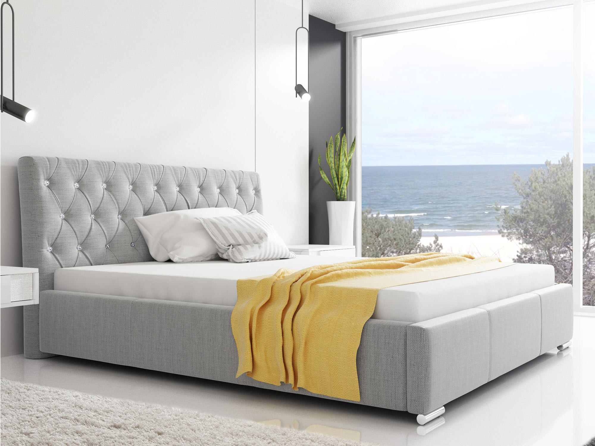Ekskluzywne Łóżko Sypialniane ORPELLO to prawdziwa kwintesencja luksusu, nowoczesności i wygody. Zaprojektowane z myślą o osobach, które pragną wprowadzić do swojej sypialni elegancję, styl i funkcjonalność. Wyróżniający się wygięty zagłówek, pikowany na piance o grubości 3 cm, ozdobiony kryształkami Swarovski, zapewnia wyjątkowy wygląd i komfort. Możliwość wyboru nóg oraz pojemnika na pościel pozwala na pełną personalizację, co sprawia, że łóżko ORPELLO doskonale wpisze się w dowolną aranżację wnętrza.