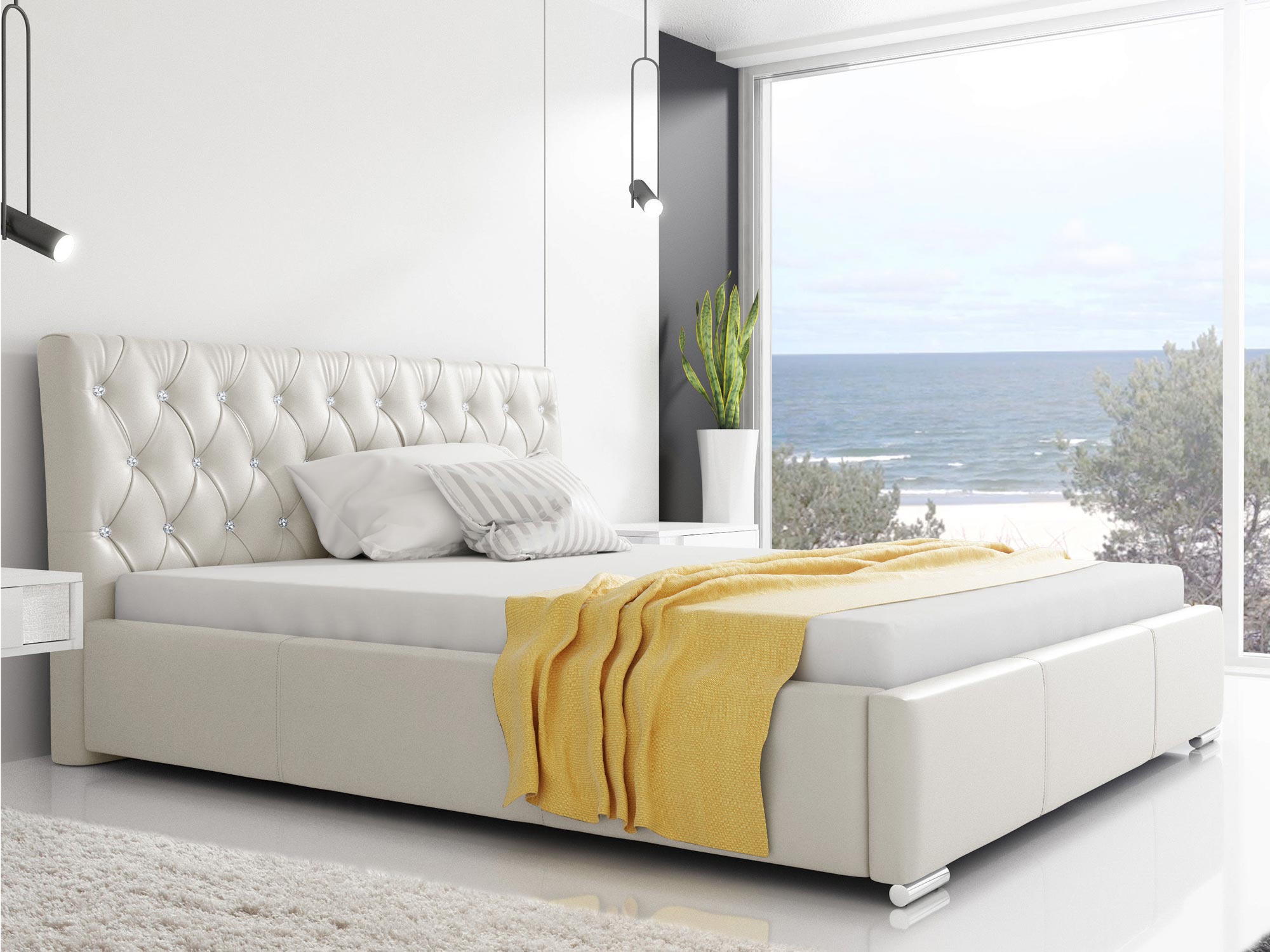Łóżko ORPELLO zostało wykonane z najwyższej jakości materiałów, co zapewnia jego trwałość i komfort użytkowania przez długie lata. Solidny stelaż metalowy z 34 listwami sprężynującymi gwarantuje stabilność i odpowiednie podparcie dla materaca, co przekłada się na wygodę snu. Ozdobne pikowanie kryształkami Swarovski dodaje łóżku luksusowego wyglądu, co czyni je idealnym wyborem dla osób ceniących sobie ekskluzywne wnętrza.