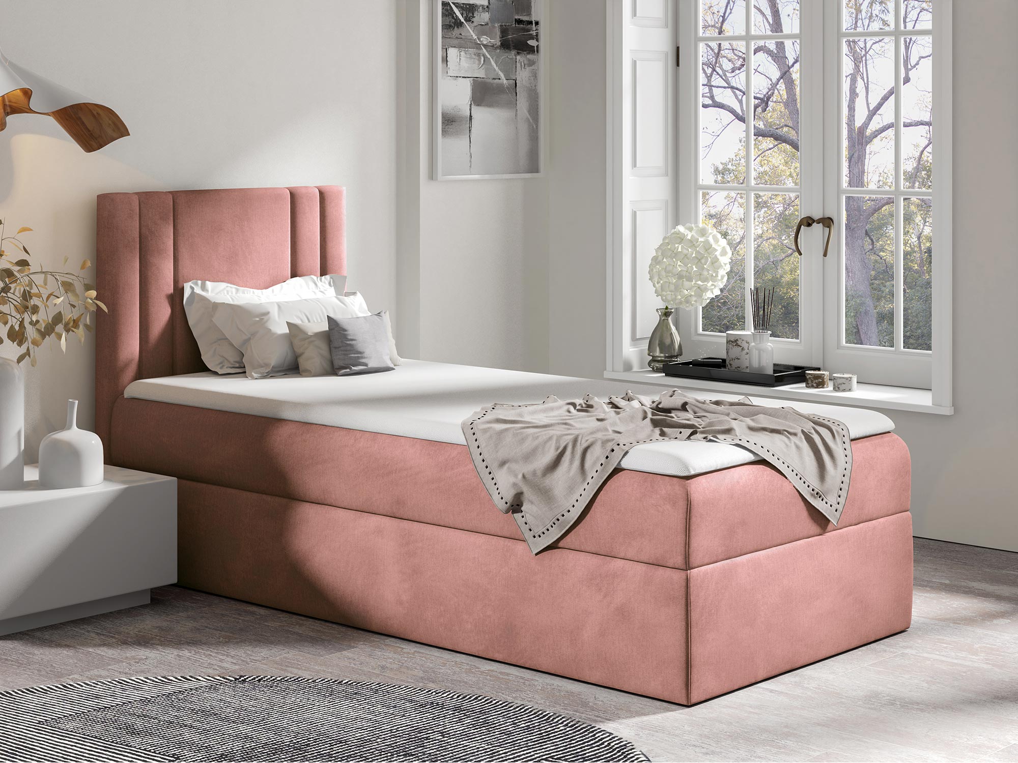 Zależy Ci na indywidualnym dopasowaniu? Łóżko LEGATO pozwala na wybór strony otwierania pojemnika na pościel, co sprawia, że możesz dostosować je do rozkładu swojej sypialni. To niezwykle praktyczne rozwiązanie, które ułatwia codzienne użytkowanie, a także pozwala na lepsze zagospodarowanie przestrzeni.