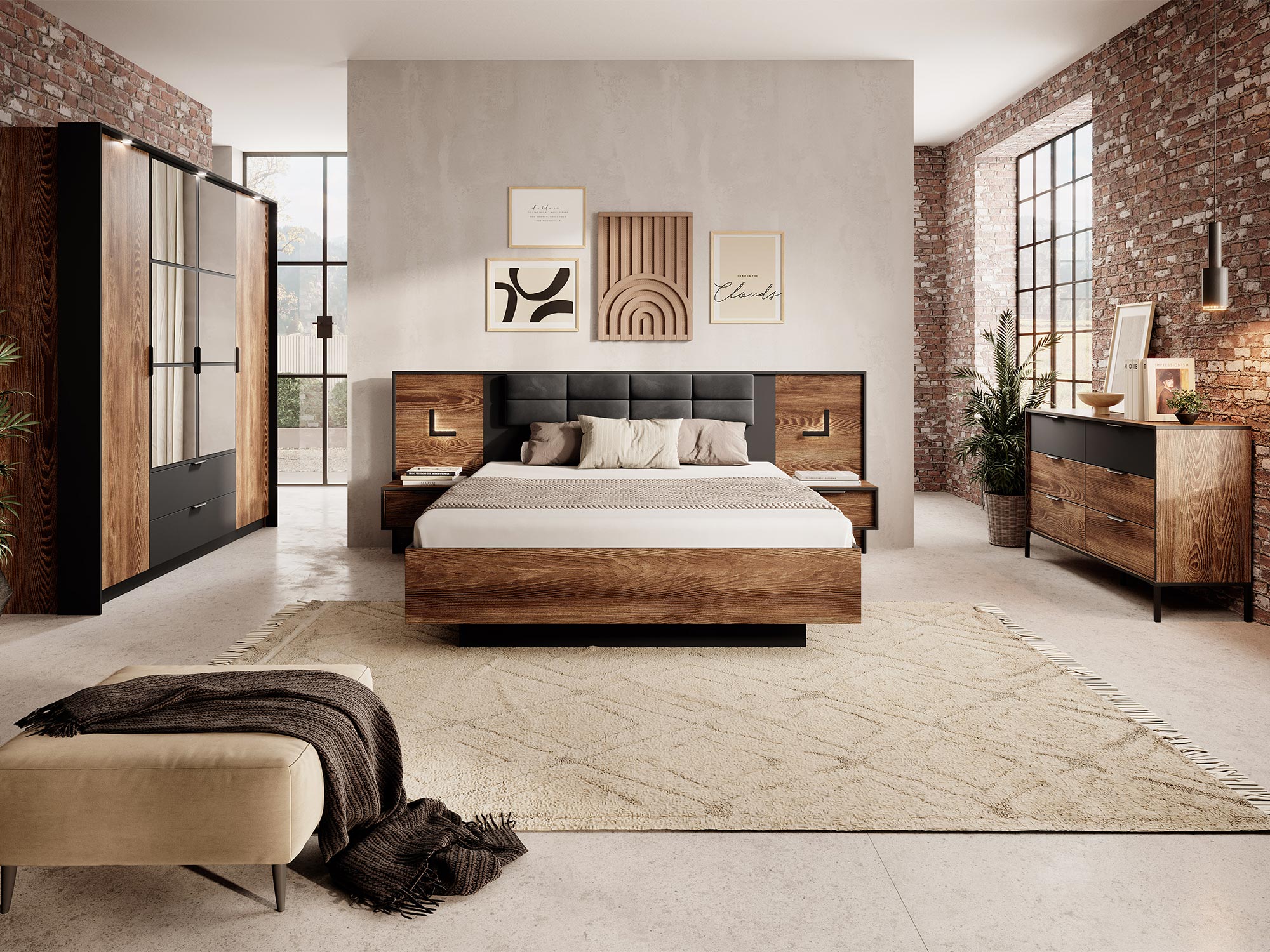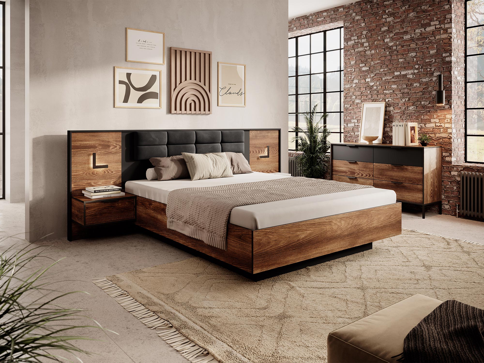 Zapraszamy do odkrycia Łóżko z Pojemnikiem 160 cm CARLTON , niezwykłego mebla z kolekcji CARLTON, który łączy w sobie oryginalność, styl i charakter. To niezwykle wygodne łóżko, z częściowo tapicerowanym wezgłowiem z przeszyciami, zostało stworzone, aby być wspaniałą ozdobą Twojej sypialni. Harmonijne połączenie kolorów antracytu i kasztanu nadaje wnętrzu głębi i stylowego wyglądu, idealnego dla miłośników loftowego designu.