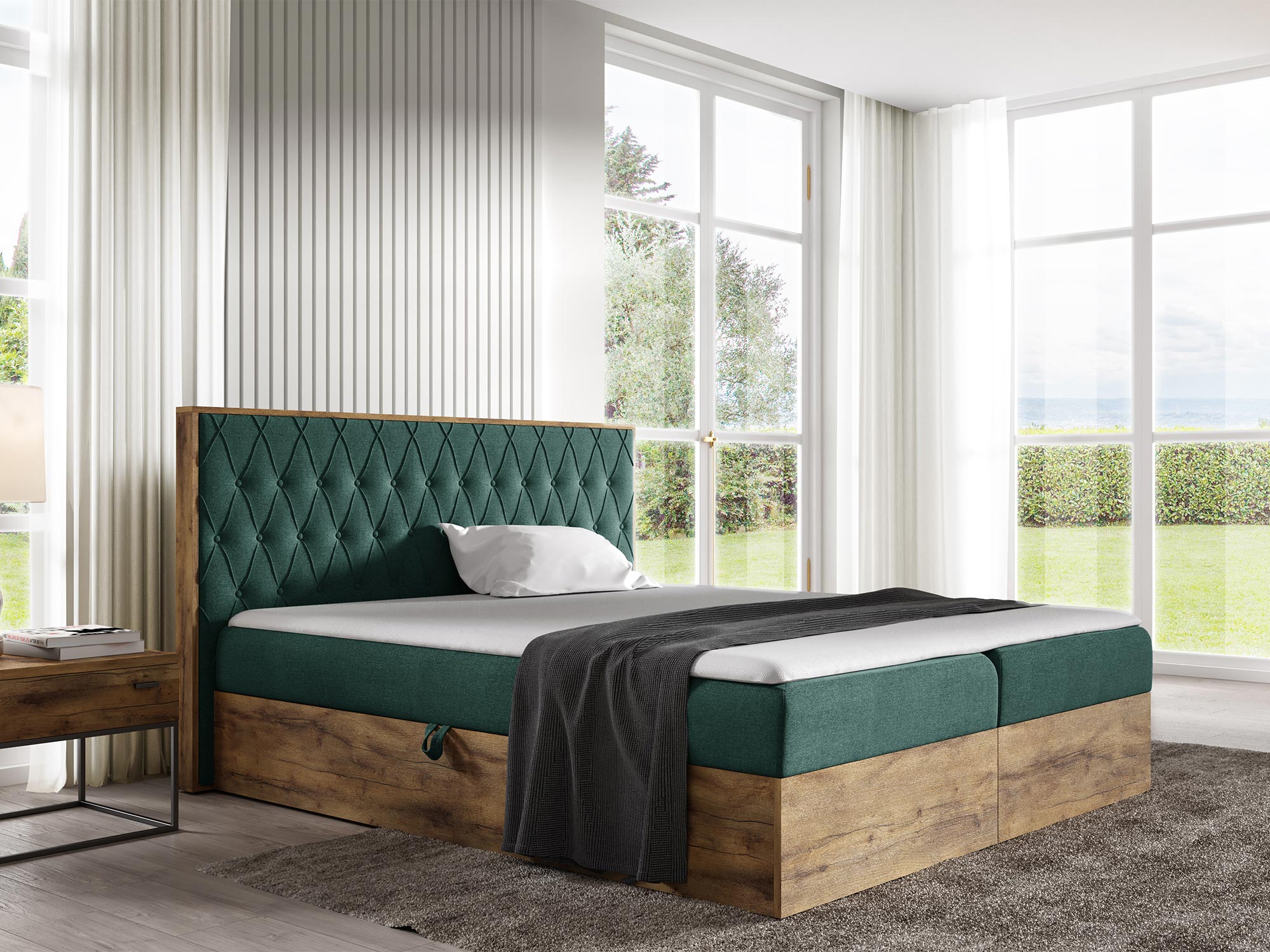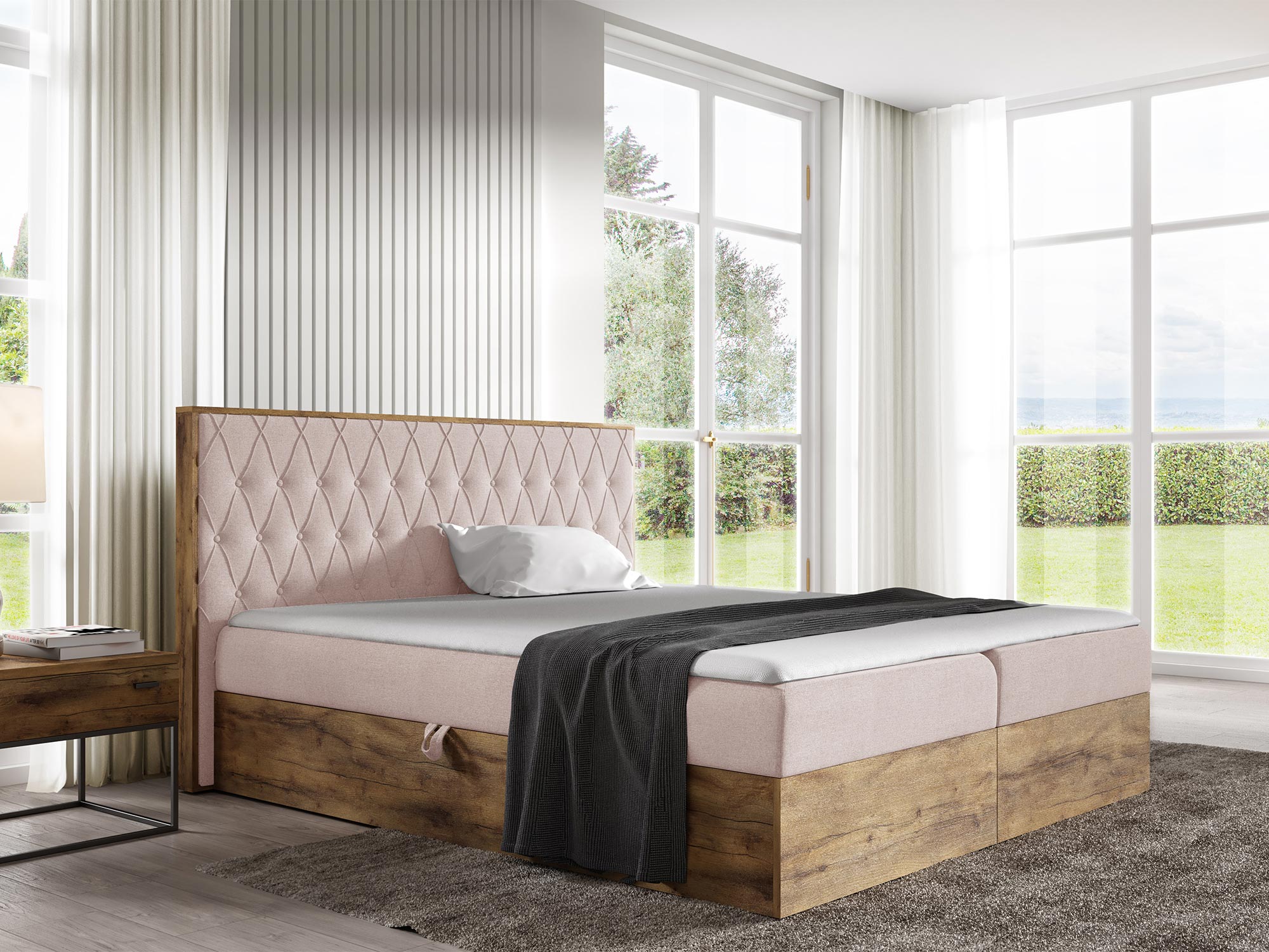 - Dwa pojemniki na pościel, które oferują dodatkową przestrzeń do przechowywania