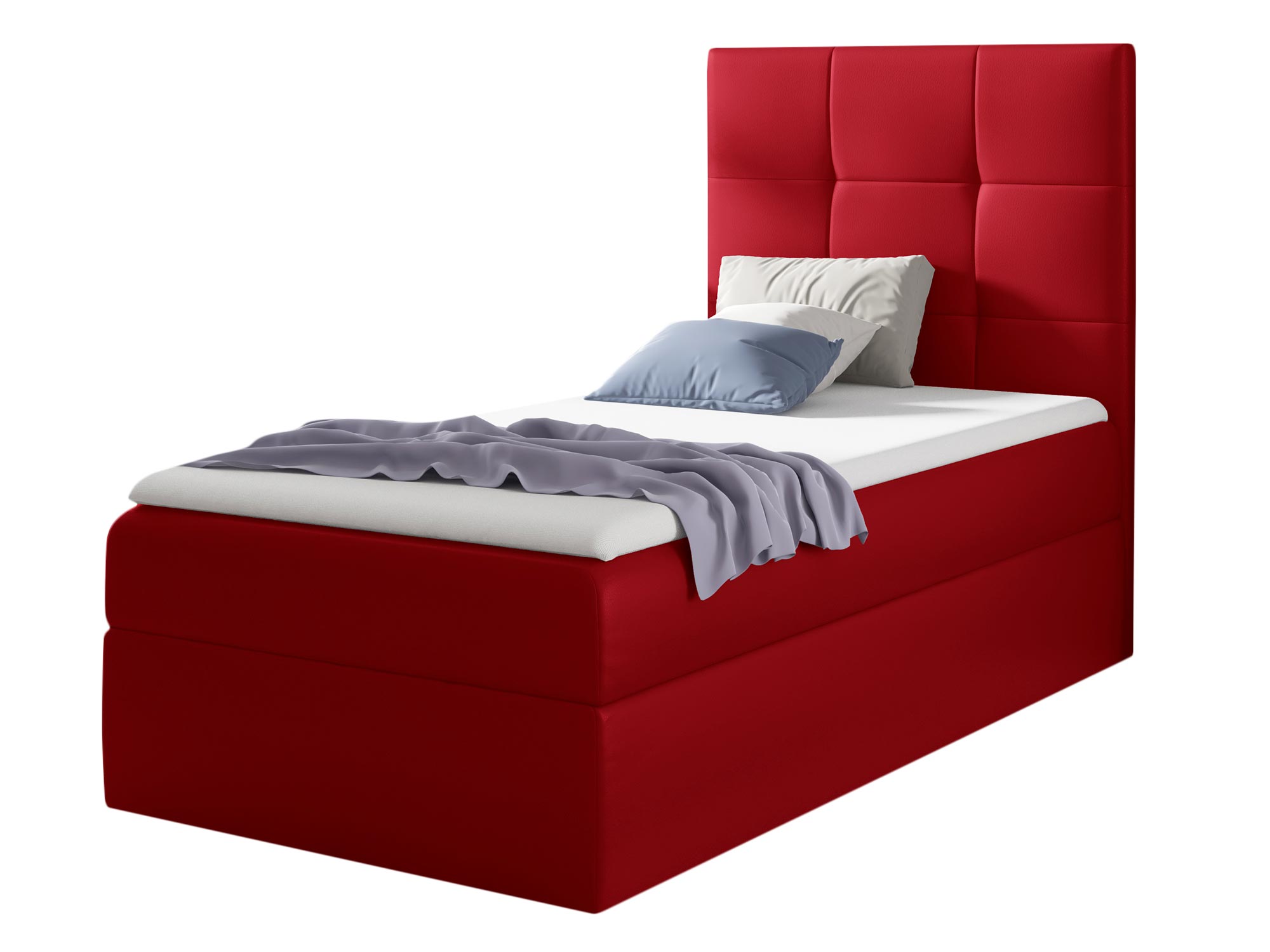 Czerwone łóżko – inne ujęcie, widoczne linie przeszyć.