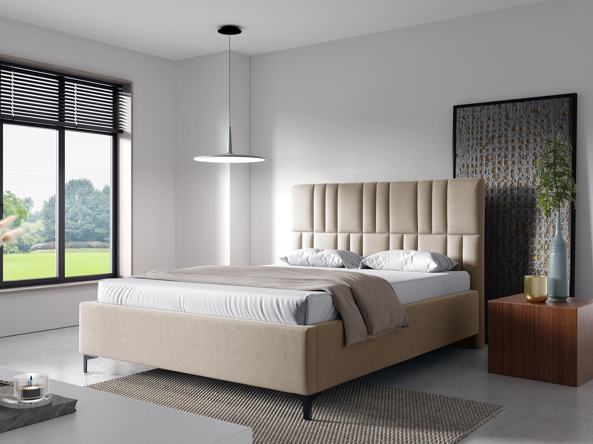 Beżowe łóżko z dekoracyjnym pikowaniem i prostymi nóżkami