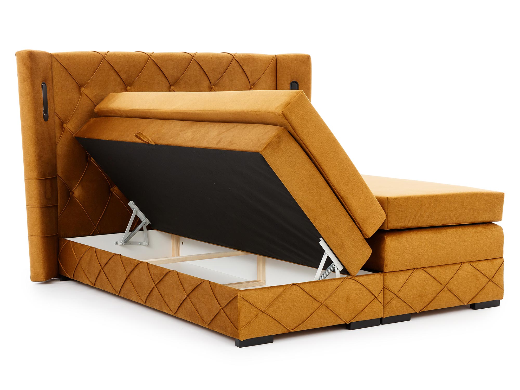 Łóżko Nexus Lux to nie tylko piękny mebel, ale również funkcjonalne rozwiązanie, które doskonale sprawdzi się w nowoczesnych wnętrzach. Dzięki dwóm pojemnikom na pościel umieszczonym pod materacem, z łatwością zorganizujesz przestrzeń w sypialni. Otwieranie pojemników nigdy nie było łatwiejsze – zastosowanie sprężynowego automatu umożliwia szybkie i wygodne otwieranie bez wysiłku.