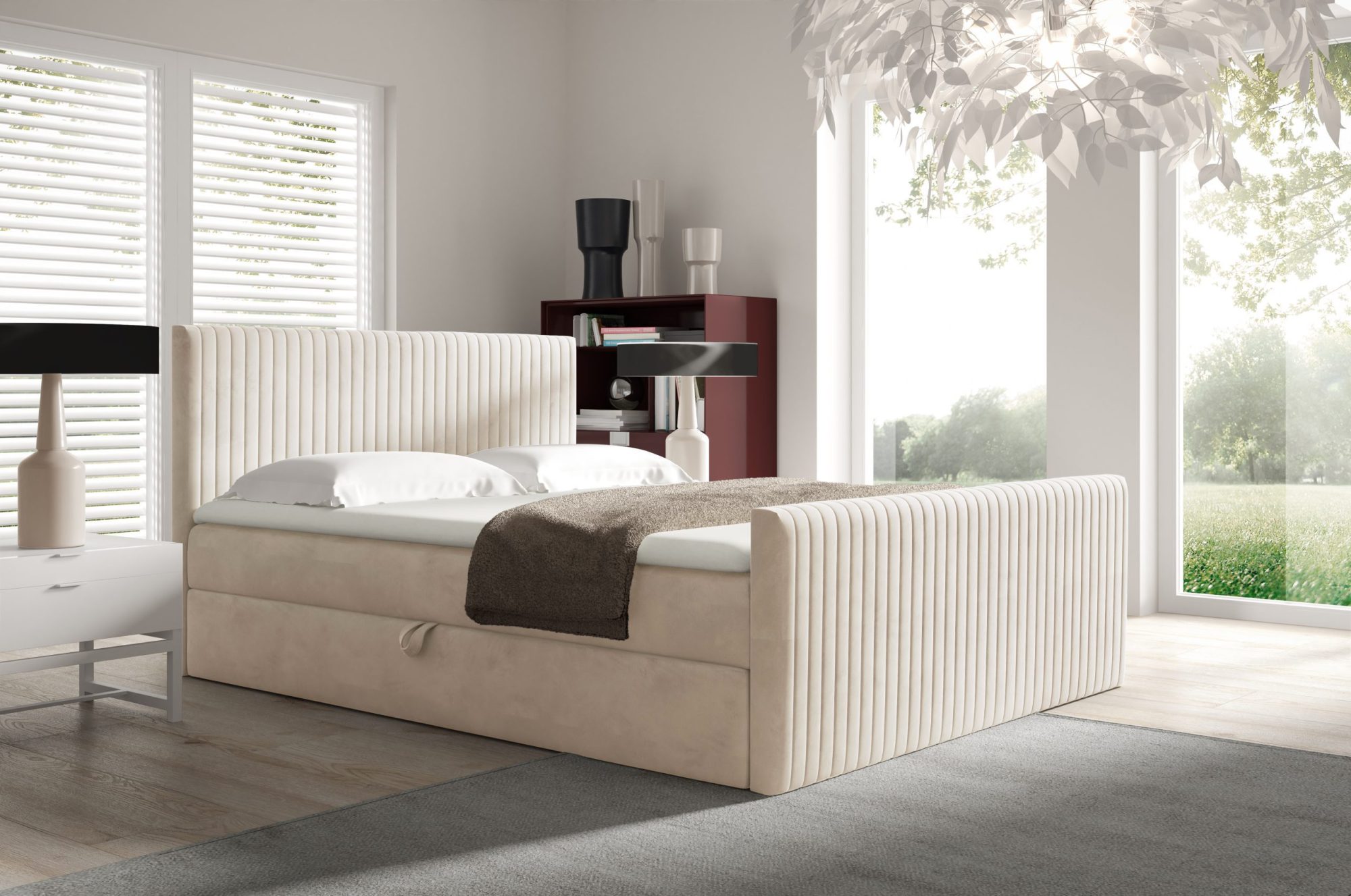 - Automat na sprężynach – ułatwia otwieranie pojemników na pościel, zwiększając wygodę użytkowania na co dzień.