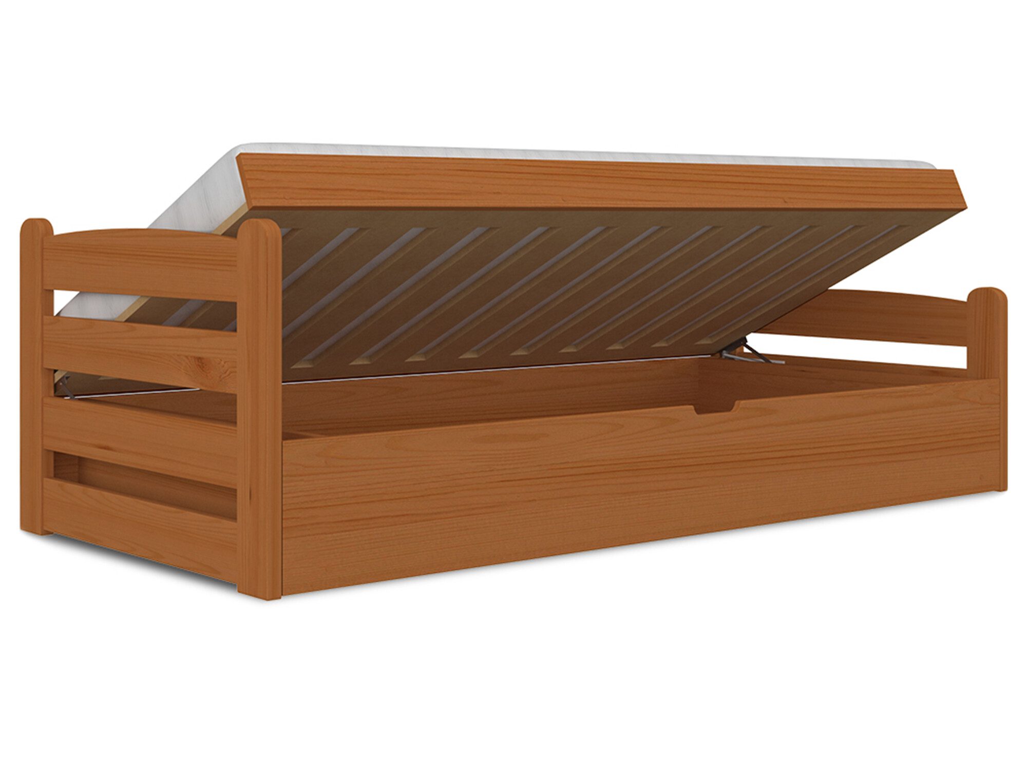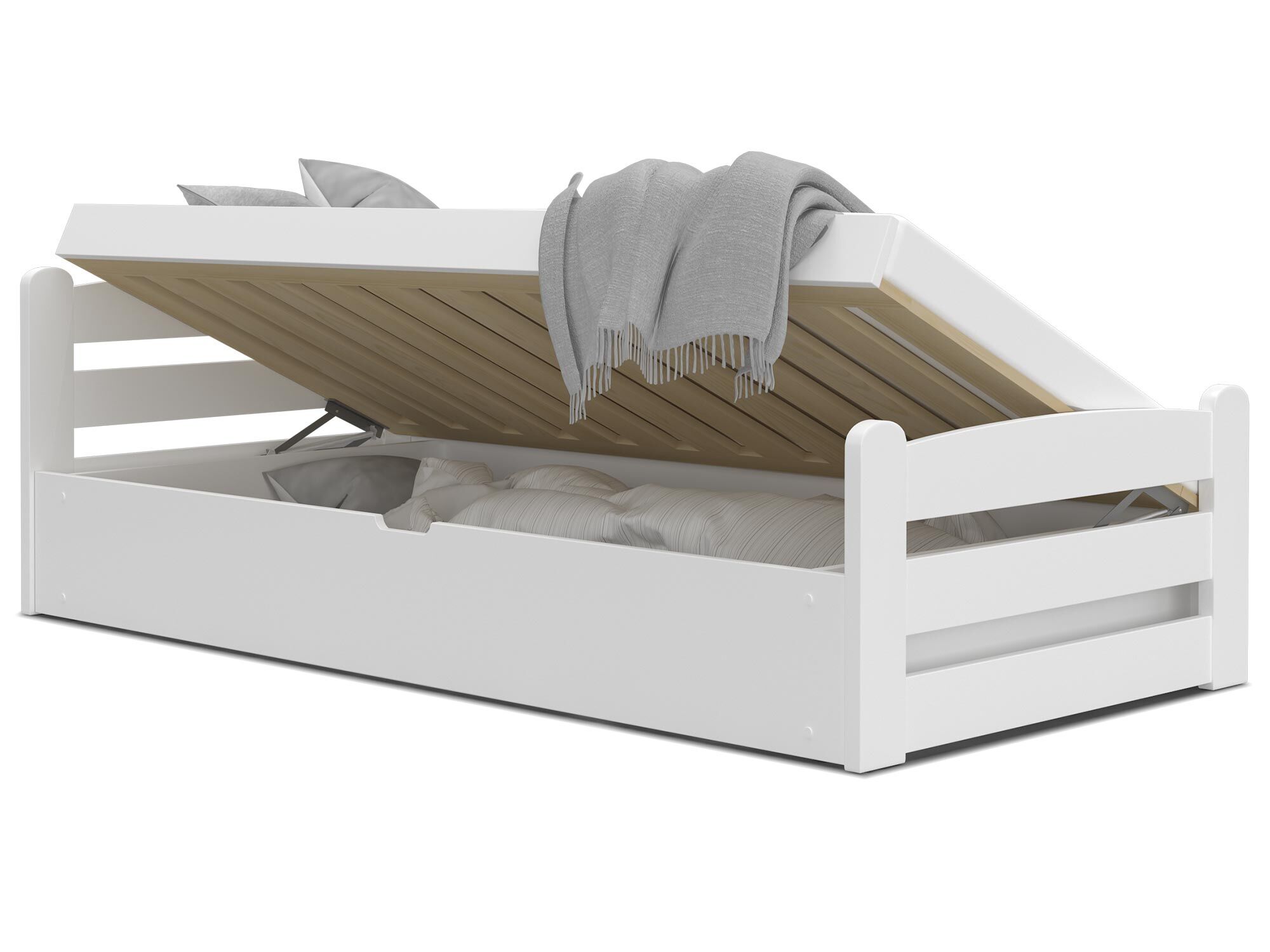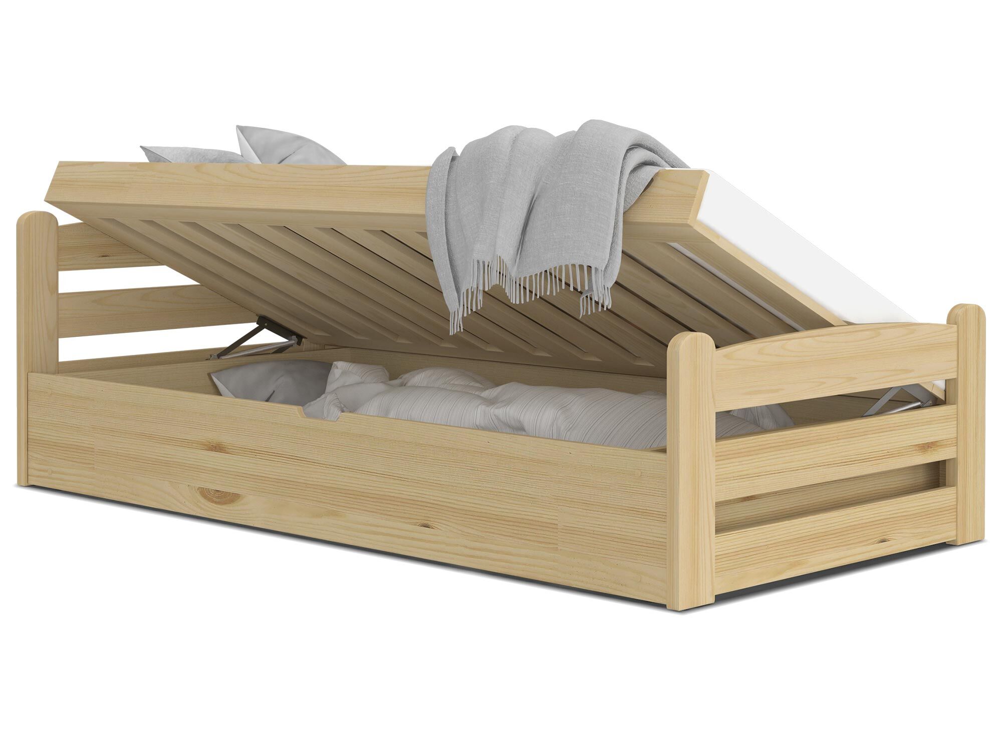 - Pojemna komora na pościel znajdująca się pod stelażem