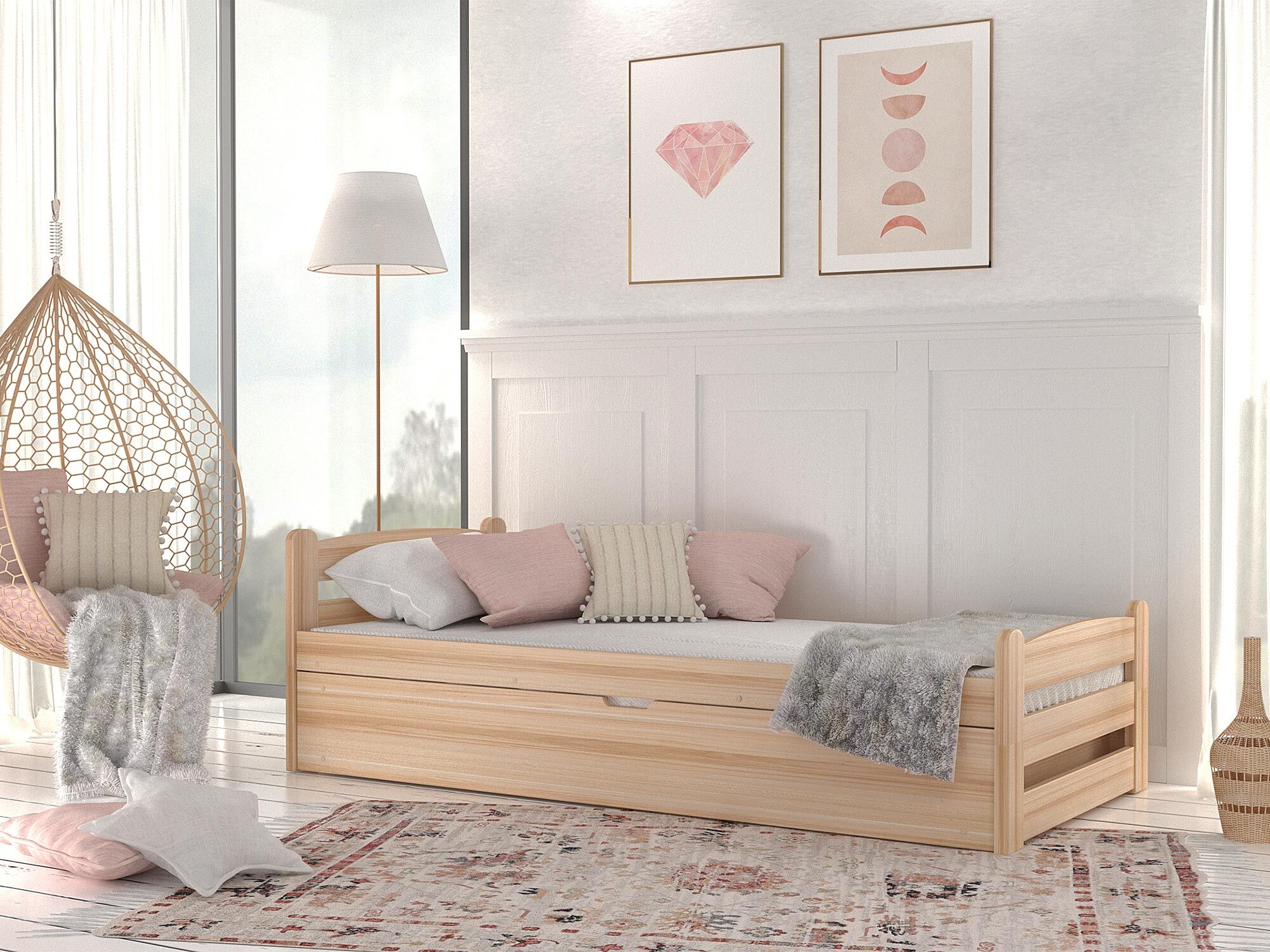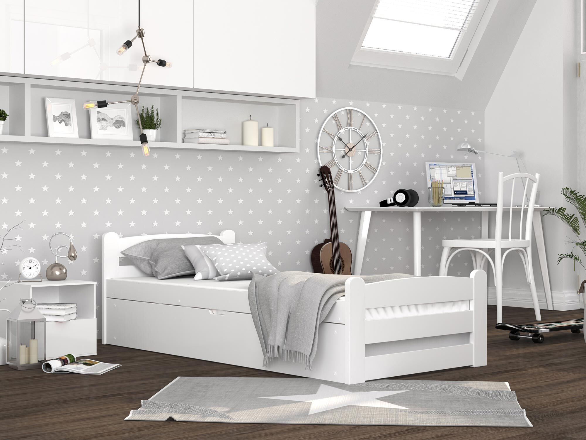 - Materiał wykonania płyta meblowa (biały/szary) lub drewno sosnowe (sosna/olcha)