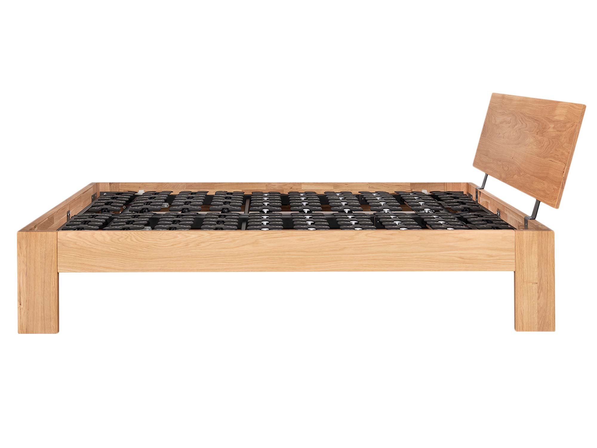 Cateresia A to esencja nowoczesnej klasyki: 100% litego dębu, olejowosk wydobywający piękno słojów i ponadczasowa forma z lekkim, ergonomicznym pochyleniem zagłówka. Ciepły rysunek drewna i spokój, jaki wprowadza do sypialni. Solidna rama, dopracowane łączenia, trwałe wykończenie.