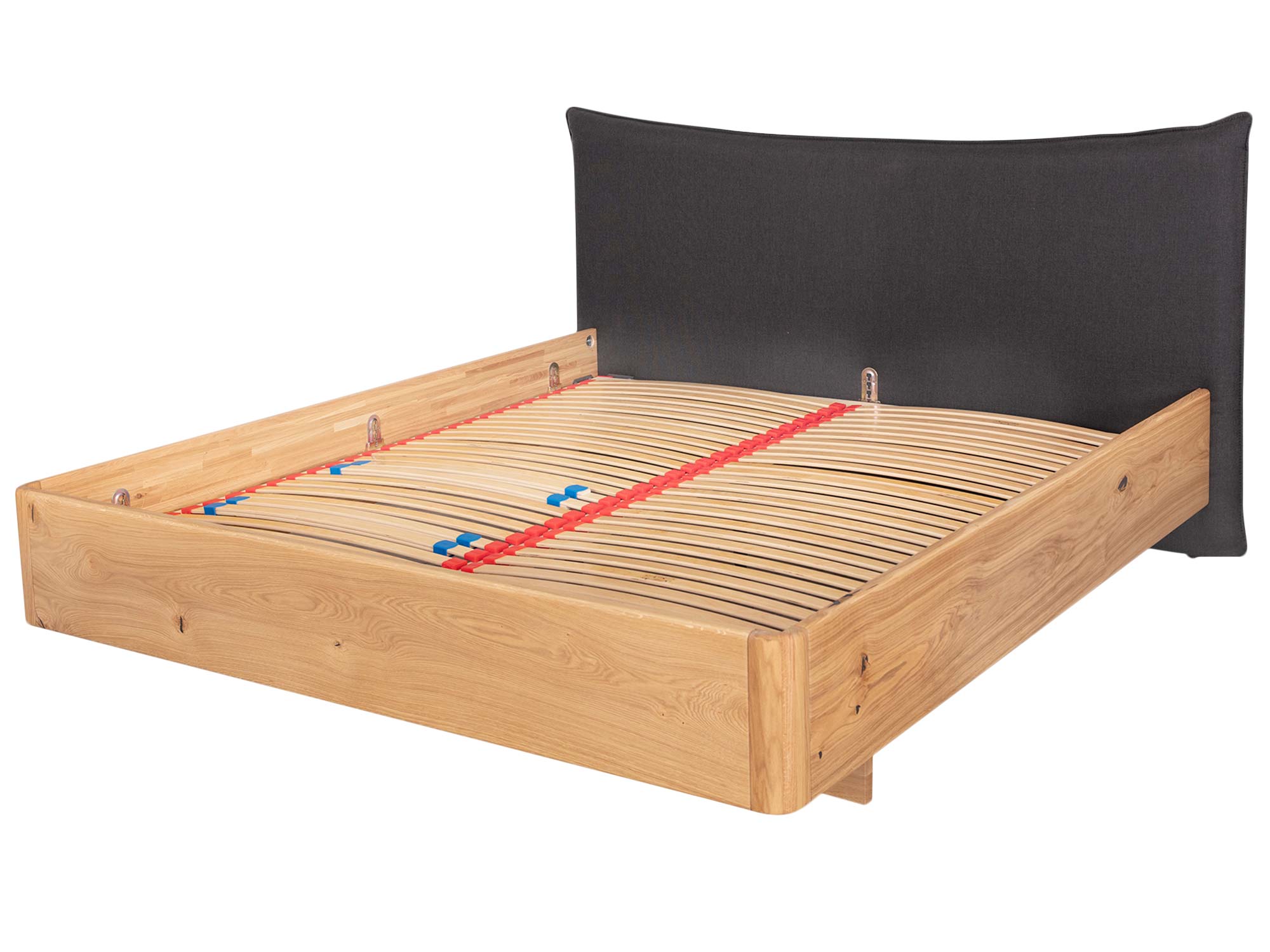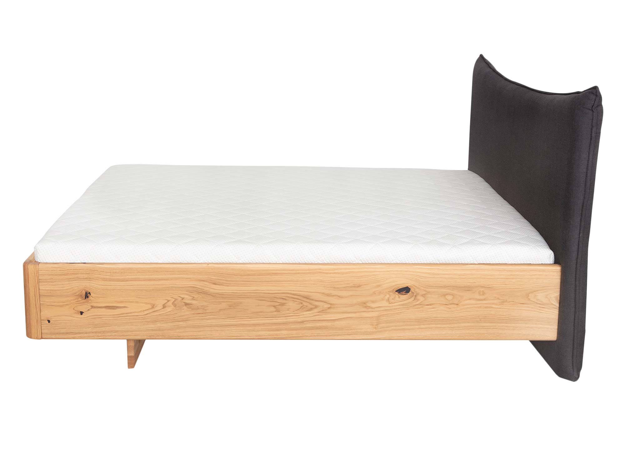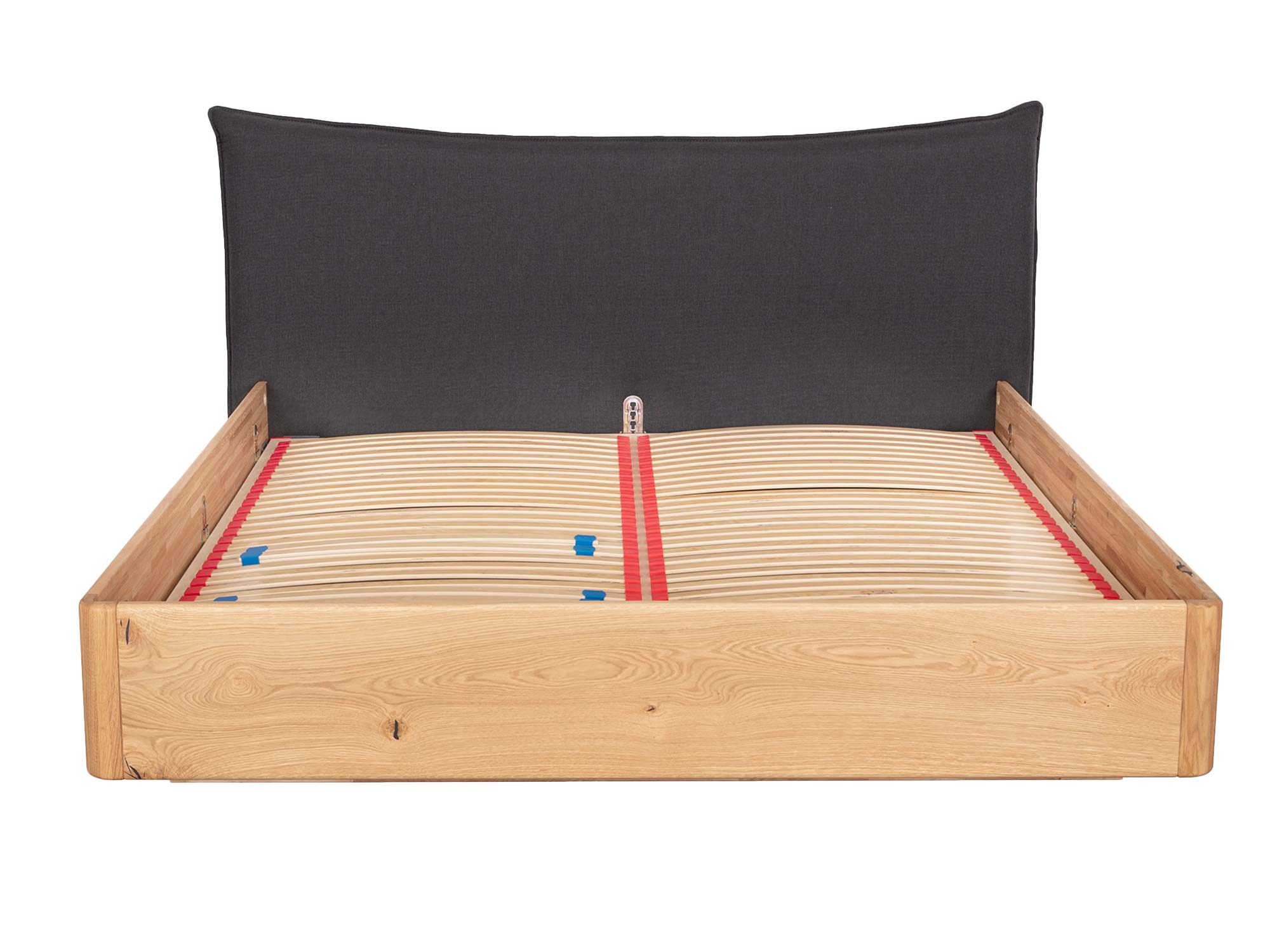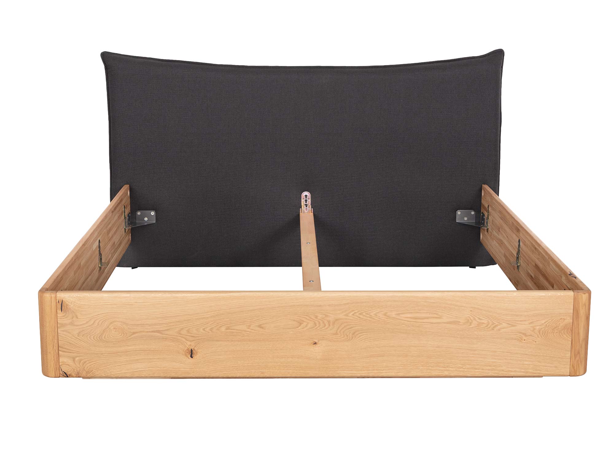 Zaokrąglona rama łączy nowoczesną prostotę z organiczną miękkością. Zaoblone narożniki zwiększają bezpieczeństwo użytkowania, a subtelnie wyoblone krawędzie sprawiają, że łóżko wygląda lekko nawet przy masywnej, dębowej konstrukcji. To detal, który czuć w dotyku i widać w każdym ujęciu.