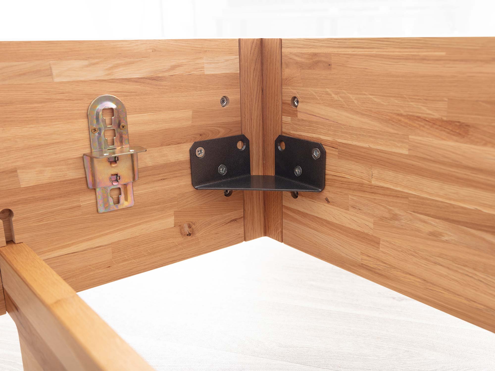 Nowoczesne okucia i ukryte łączenia gwarantują stabilność i cichą pracę konstrukcji. Precyzyjne spasowanie elementów eliminuje skrzypienie, a solidne złącza przekładają się na trwałość, którą widać i czuć przy każdym użytkowaniu.
