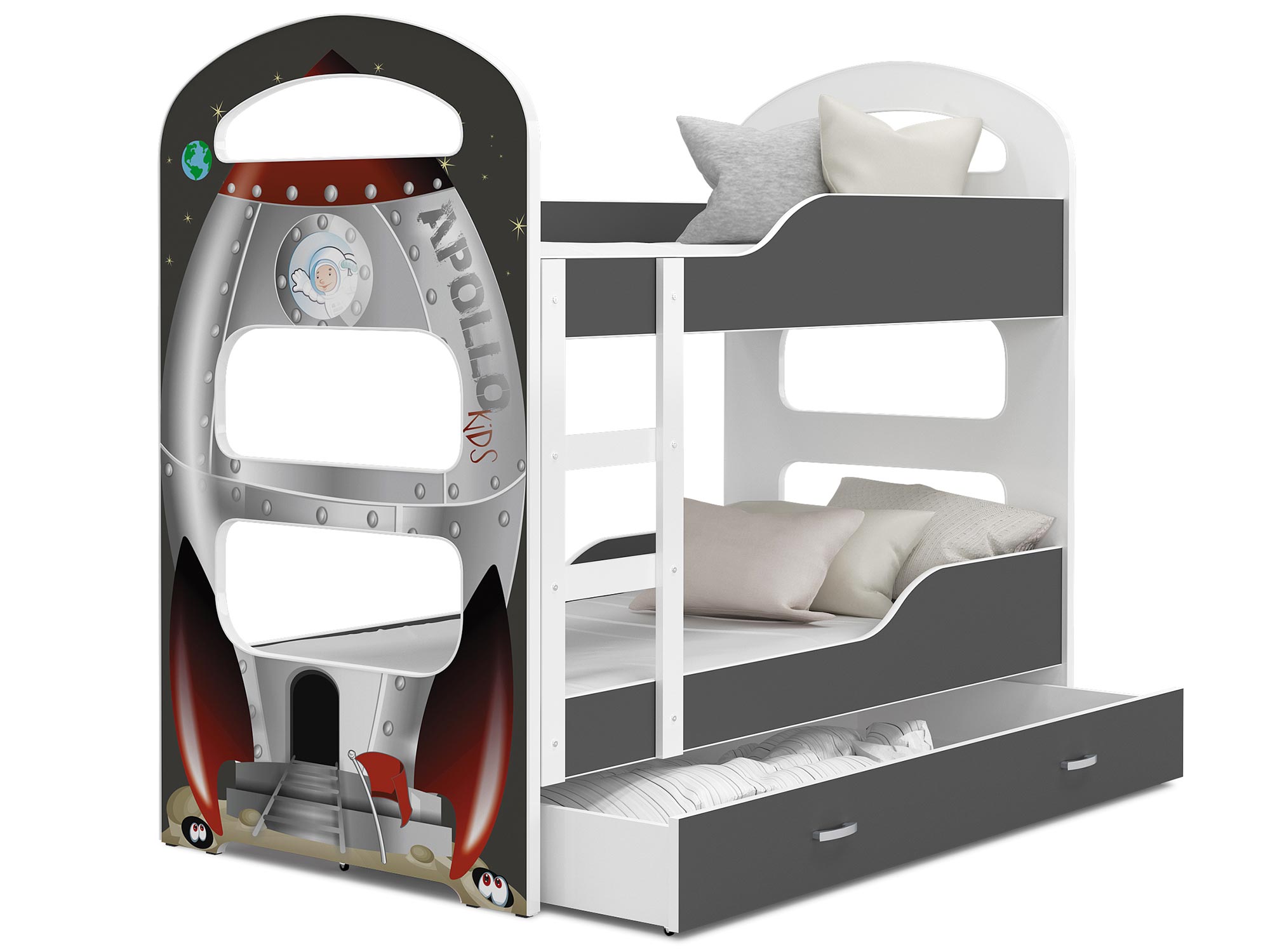 Piętrowe łóżko szare z nadrukiem FIROME
