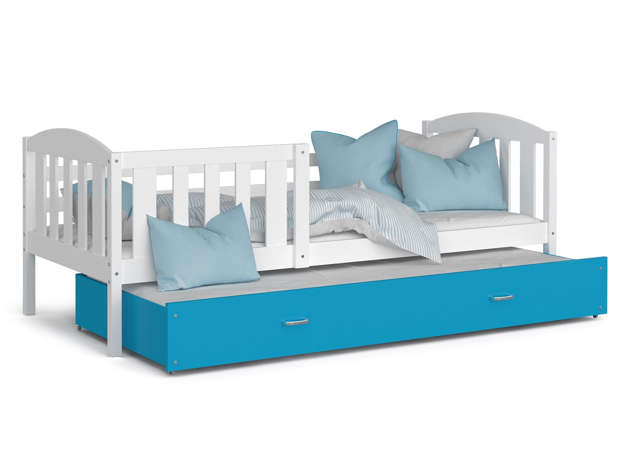 Łóżko drewniane dla dziecka VISPO P2 to mebel, który charakteryzuje się wygodą, bezpiecznym użytkowaniem i świeżym wyglądem. Wytrzymała i mocna struktura zapewniają odporność łóżka a także jego wytrzymałość. Mebel zrobiono z wysokiego gatunku drewna sosnowego lub płyty meblowej o zaokrąglonych krawędziach i profilowanymi bokami, które mają na celu zagwarantować bezpieczeństwo śpiącym dzieciom. W celu zwiększenia bezpieczeństwa korzystania z produktu został on pomalowany bezwonnym wodnym lakierem przeznaczonym do produktów dziecięcych. Łóżko wyposażono w stelaż flex zrobiony z sprężynujących listw osadzonych w plastikowych kieszonkach, który zapewnia właściwą amortyzację materaca wraz z ciałem dziecka, a także szufladę na pościel, na której jest dodatkowa powierzchnia do spania. Do wyboru jest też piankowy materac w pokrowcu o grubości 7 cm.