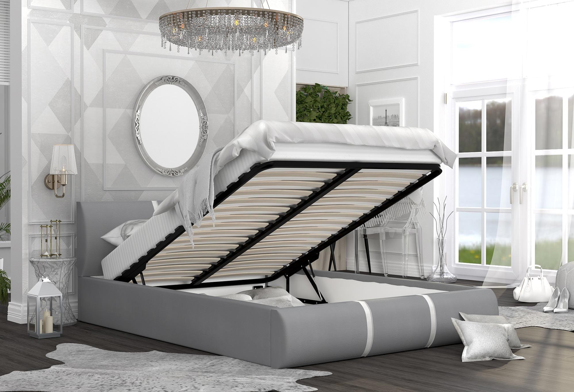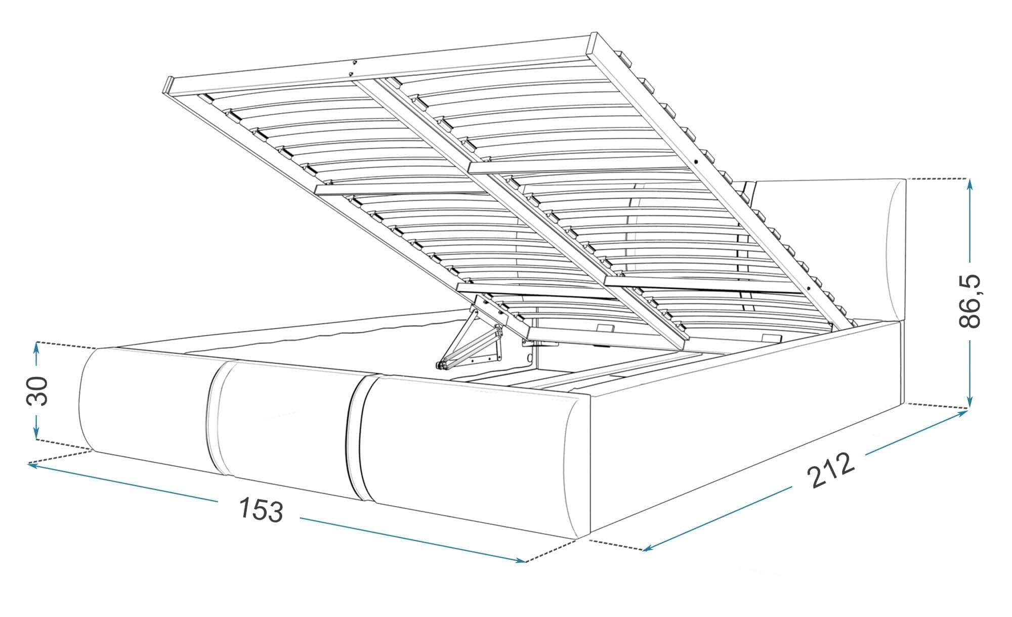 - Łóżko posiada schowek na pościel.