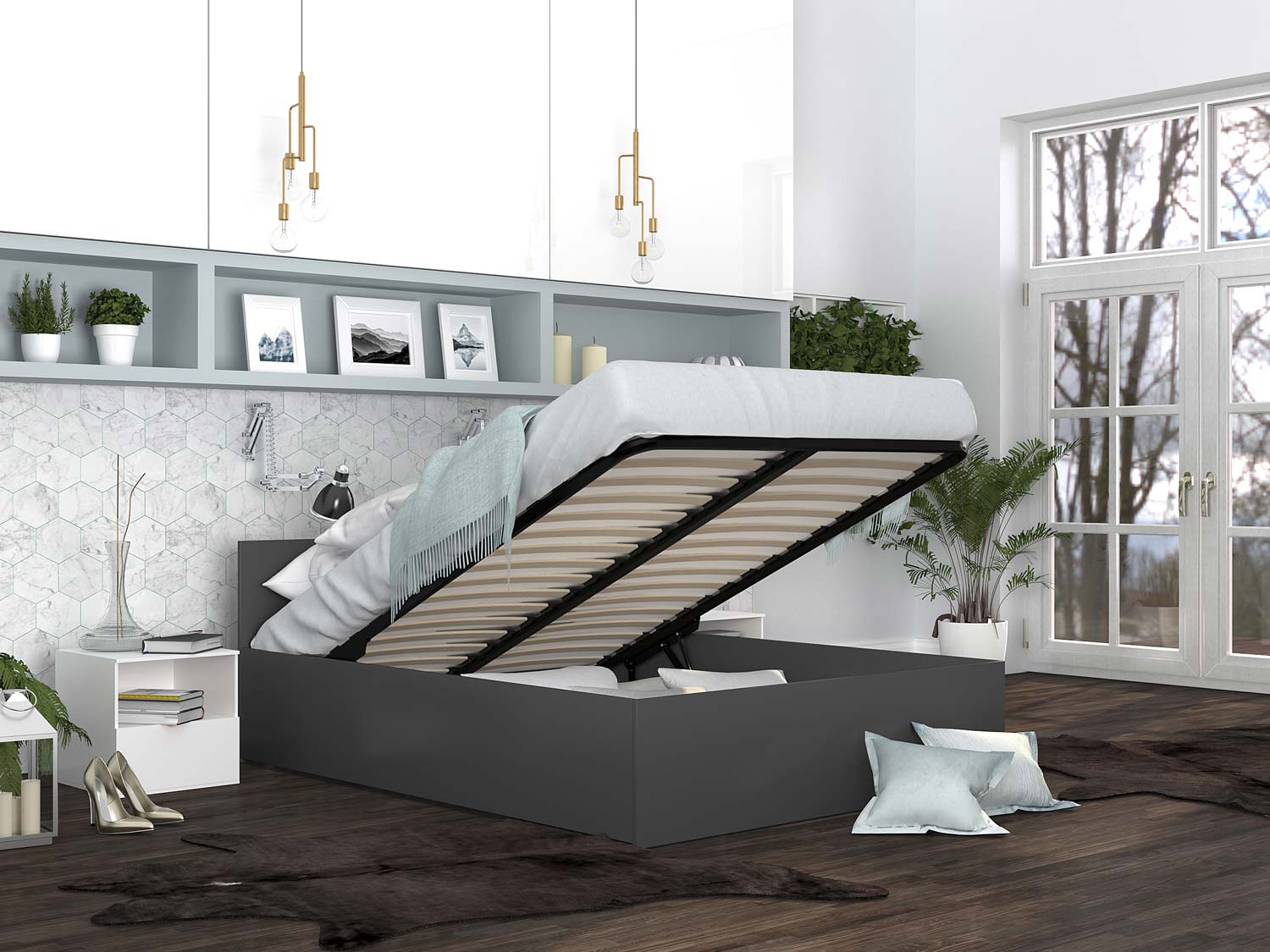 Łóżko do sypialni z podnoszonym stelażem BASEL Plus