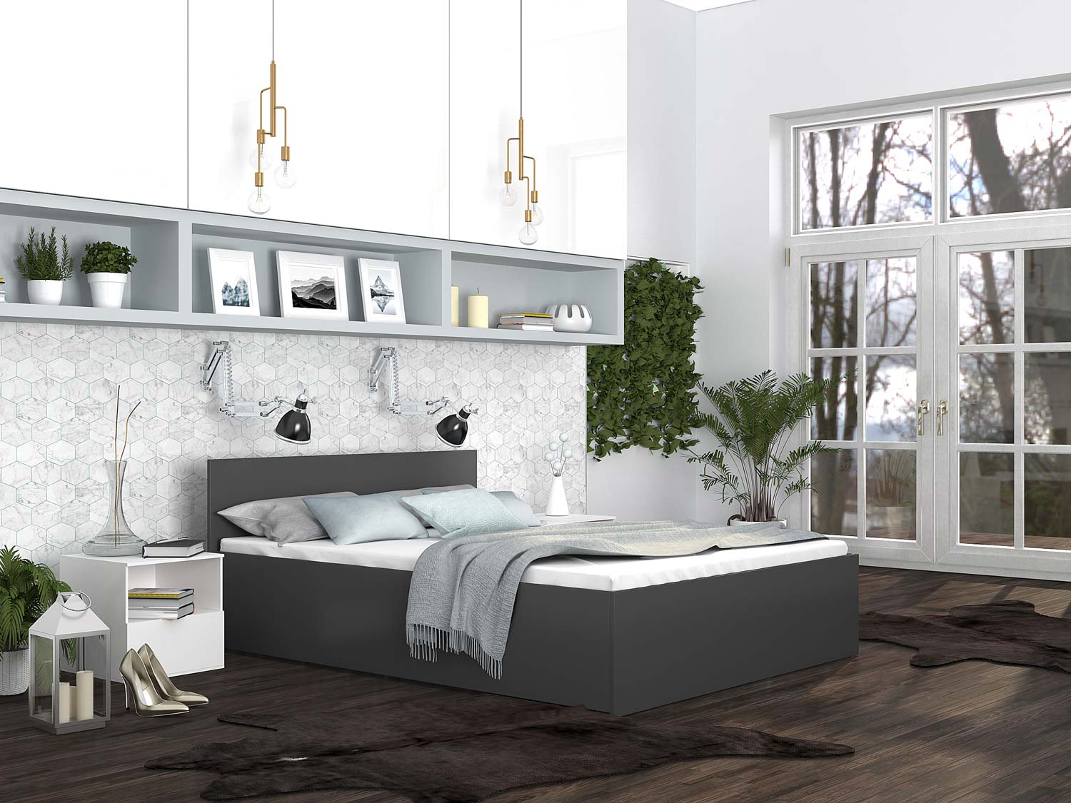 Nowoczesne łóżko do sypialni szare białe tło PANAMA