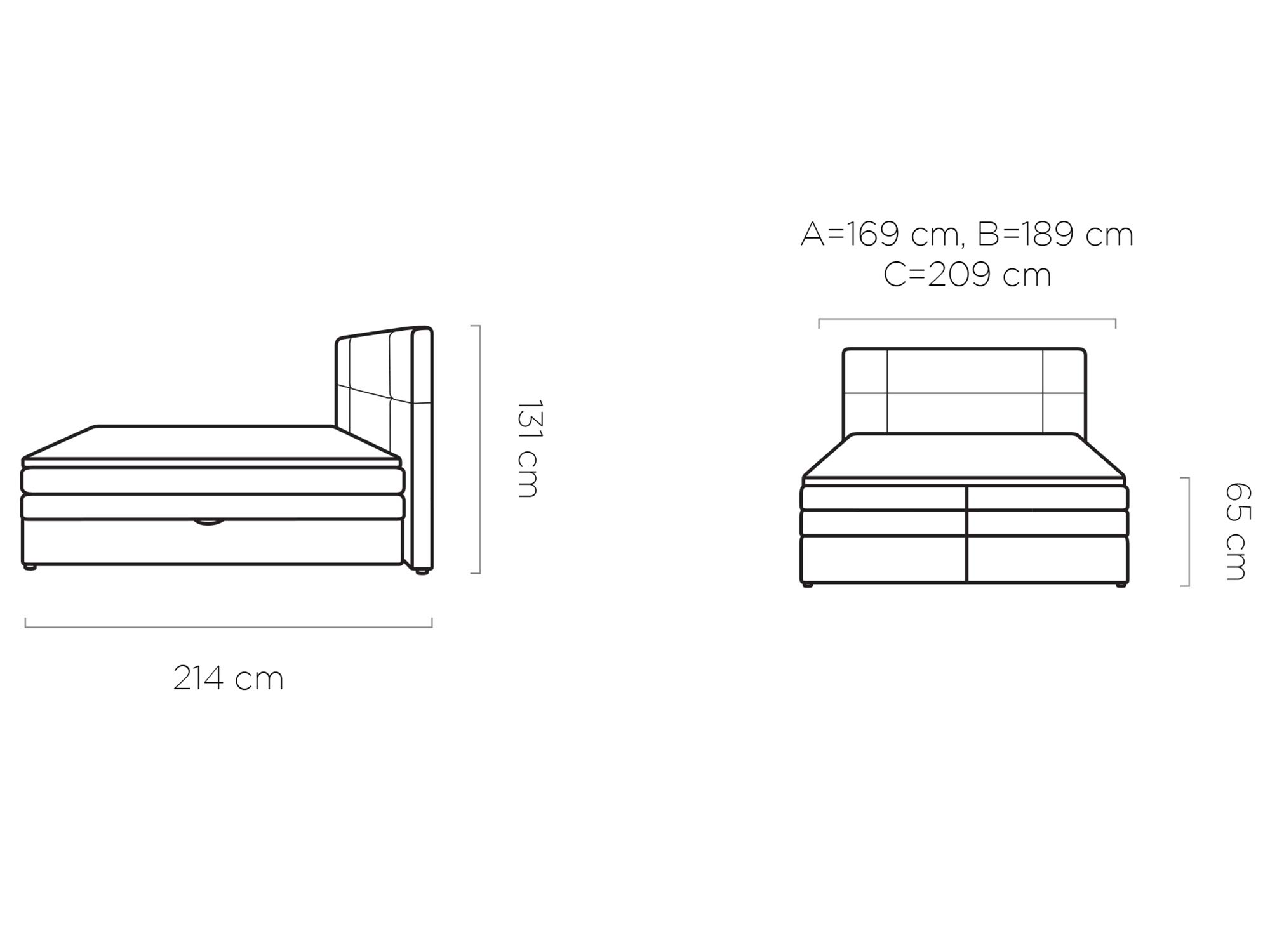 • Szerokość całkowita: A=159 cm / B=179 cm / C=199 cm