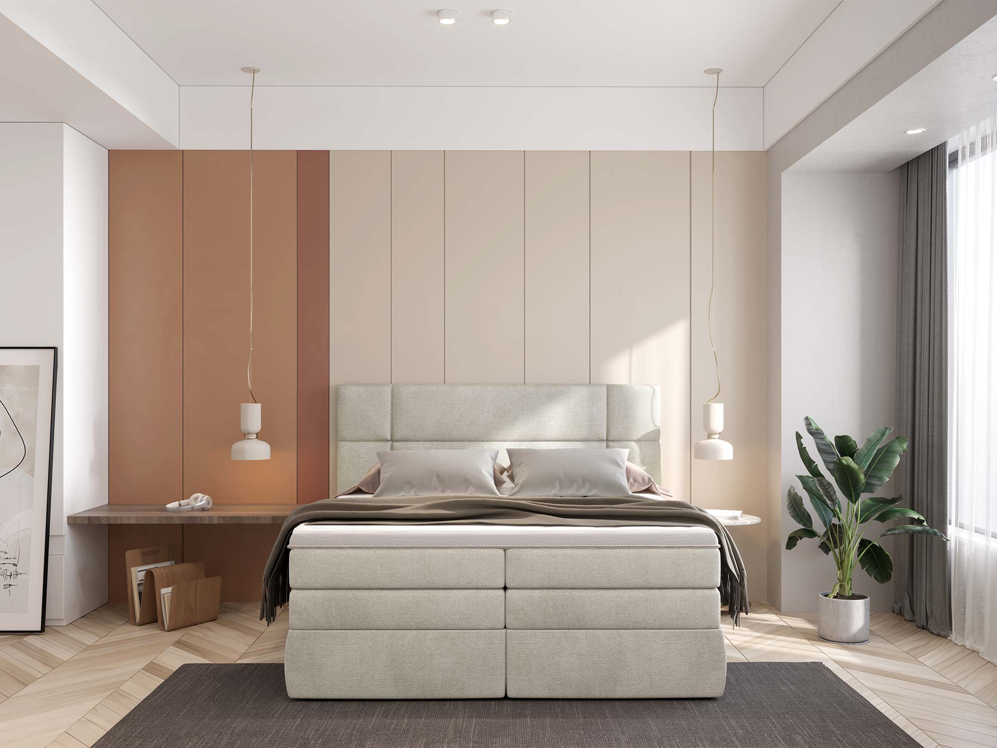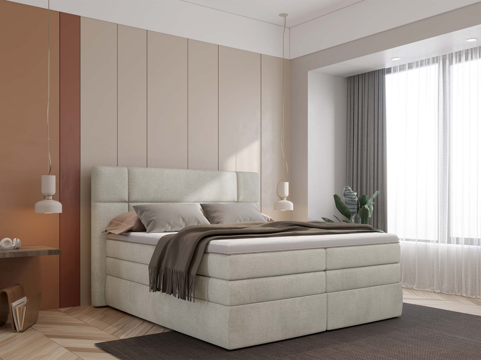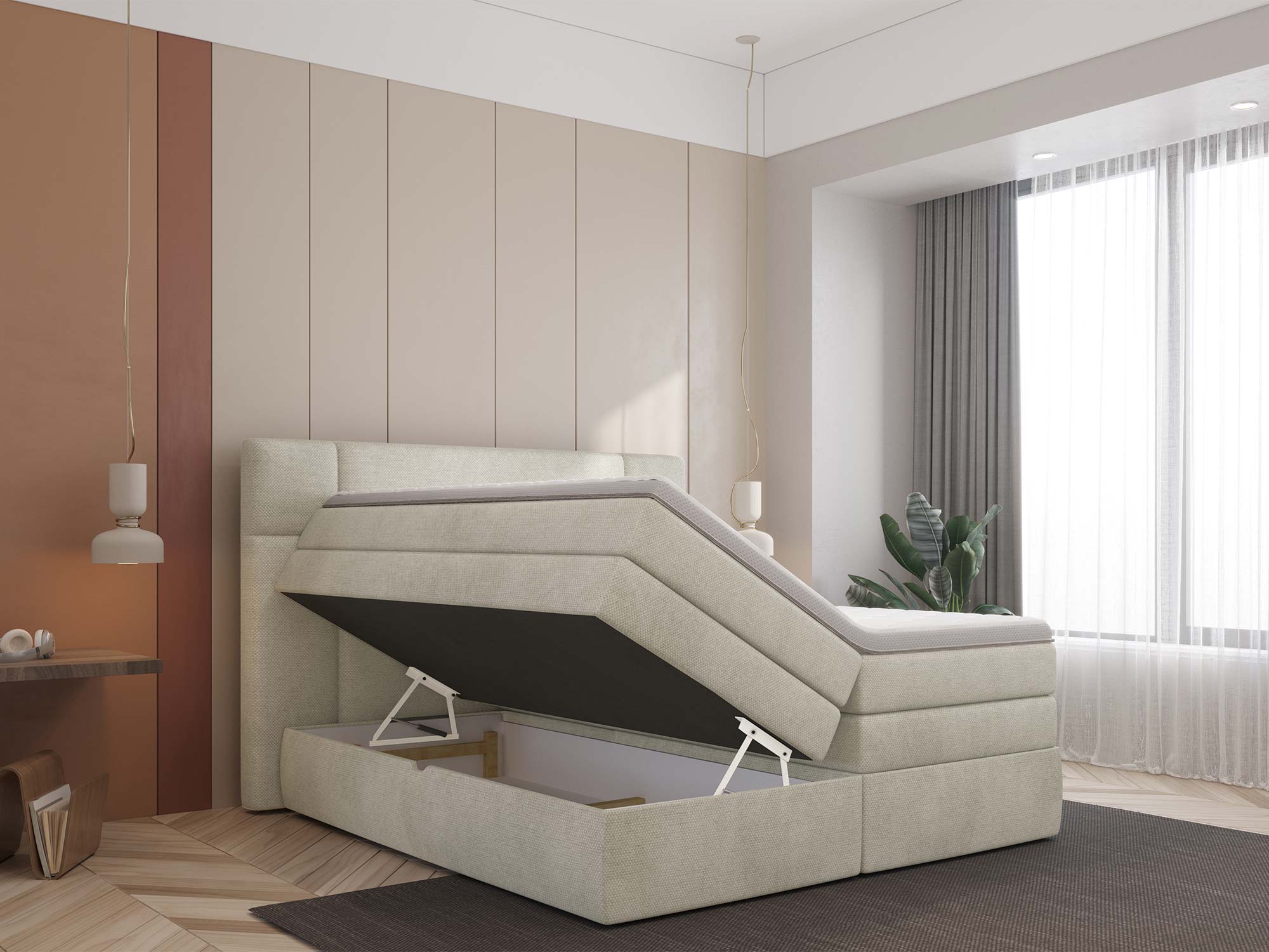 Wyobraź sobie poranek, w którym budzisz się wypoczęty na szerokiej, miękko sprężystej powierzchni. Pościel znika w dyskretnych schowkach, sypialnia pozostaje idealnie uporządkowana, a Ty czujesz, że każdy detal został zaprojektowany z myślą o codziennej wygodzie. PALACE to łóżko kontynentalne, które łączy luksusowy wygląd z praktycznymi rozwiązaniami: dwa pojemne schowki na pościel, warstwowy system materacy tworzą zestaw do snu klasy premium – na co dzień. Jeśli szukasz mebla, który wyniesie komfort snu na wyższy poziom, a jednocześnie pomoże utrzymać ład – PALACE jest właściwą decyzją.