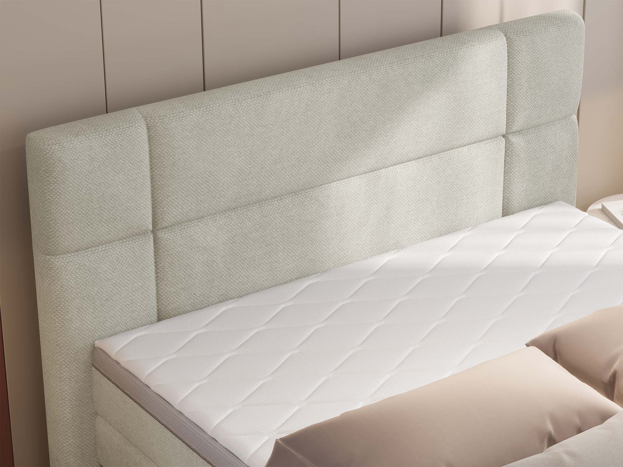Za komfort snu odpowiada trzystopniowy system: u podstawy materac bonellowy nadaje sprężystość całej bryle; powyżej pracuje materac kieszeniowy 7-strefowy, który wspiera ciało punktowo – w okolicach barków, lędźwi i bioder.
