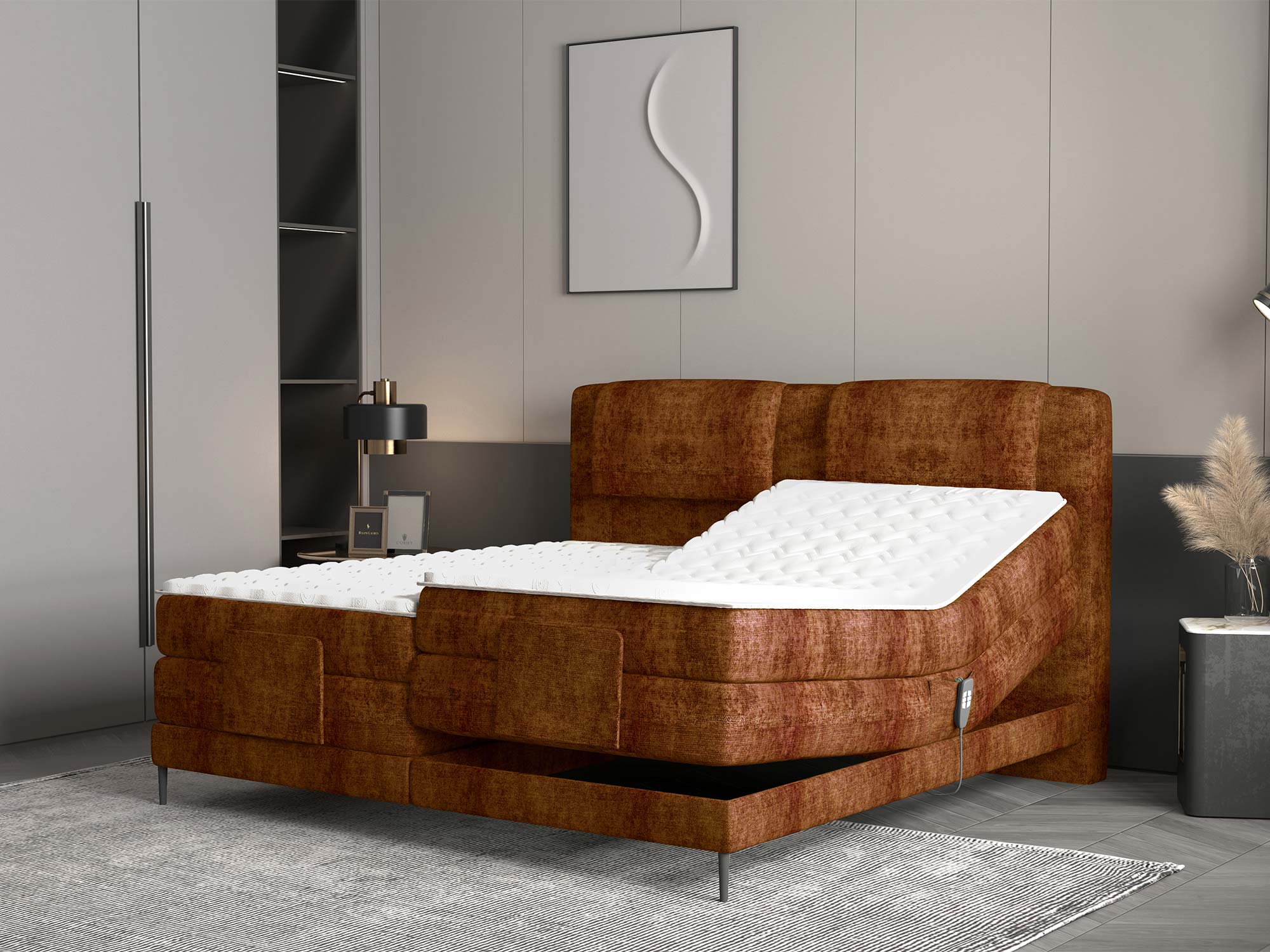 • Elektryczna regulacja – perfekcyjne dopasowanie pozycji do czytania, relaksu i snu.