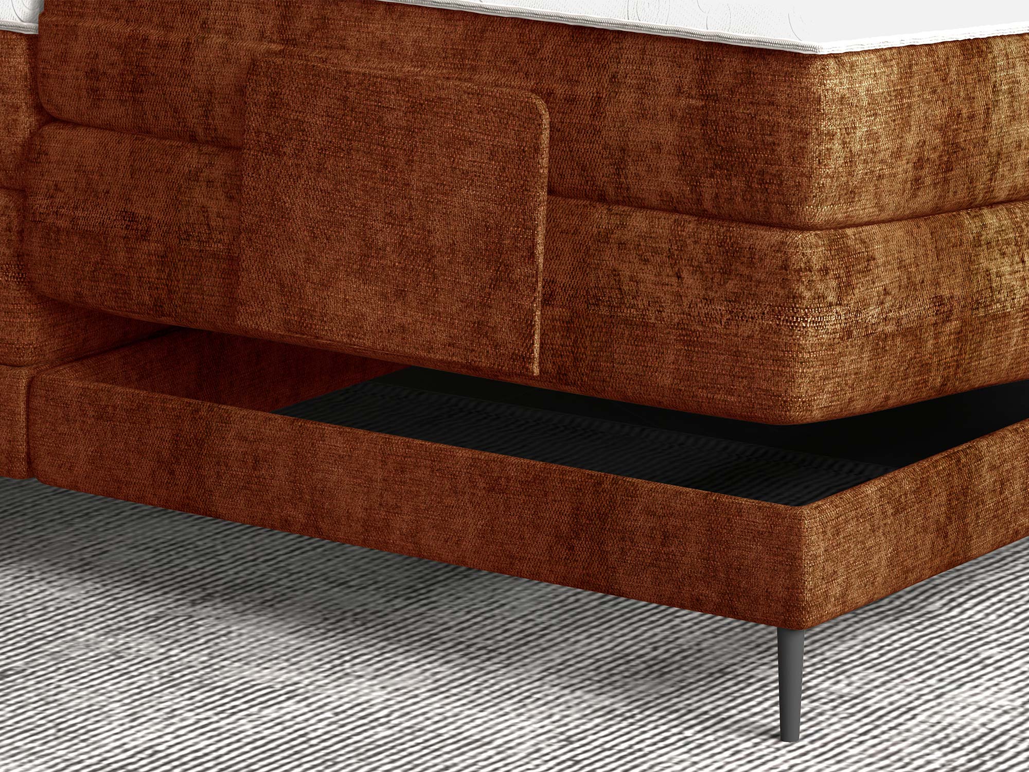 WAVE 2026 nie ma pojemnika na pościel – to świadomy wybór dla entuzjastów przewiewności i stabilności. Rezygnacja z skrzyni pozwala obniżyć masę i skupić się na tym, co najważniejsze: na jakości snu, ergonomii i cichej, płynnej pracy napędów.