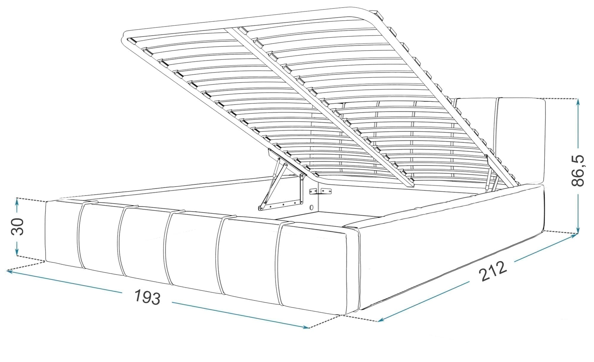 - Łóżko posiada schowek na pościel.