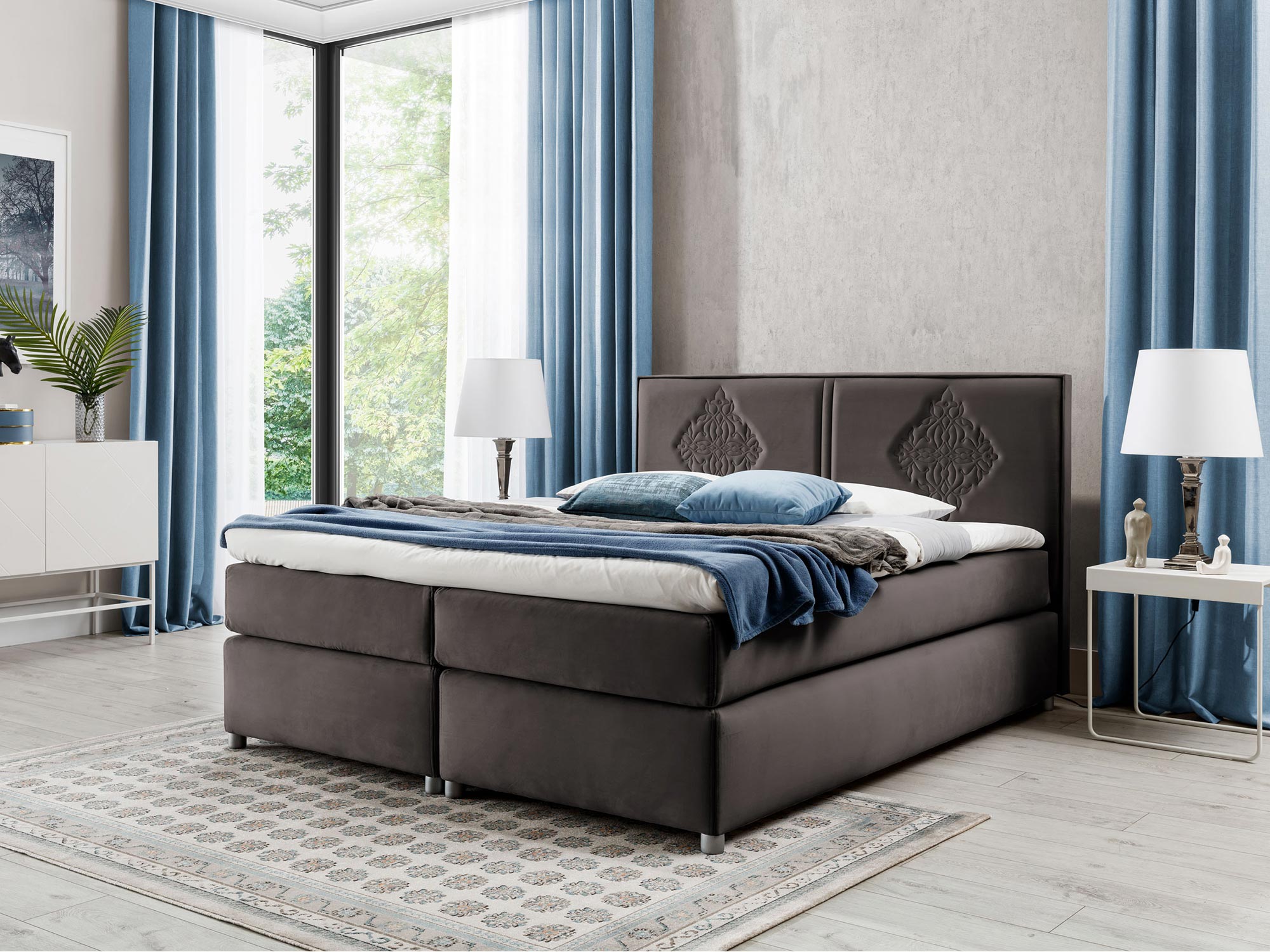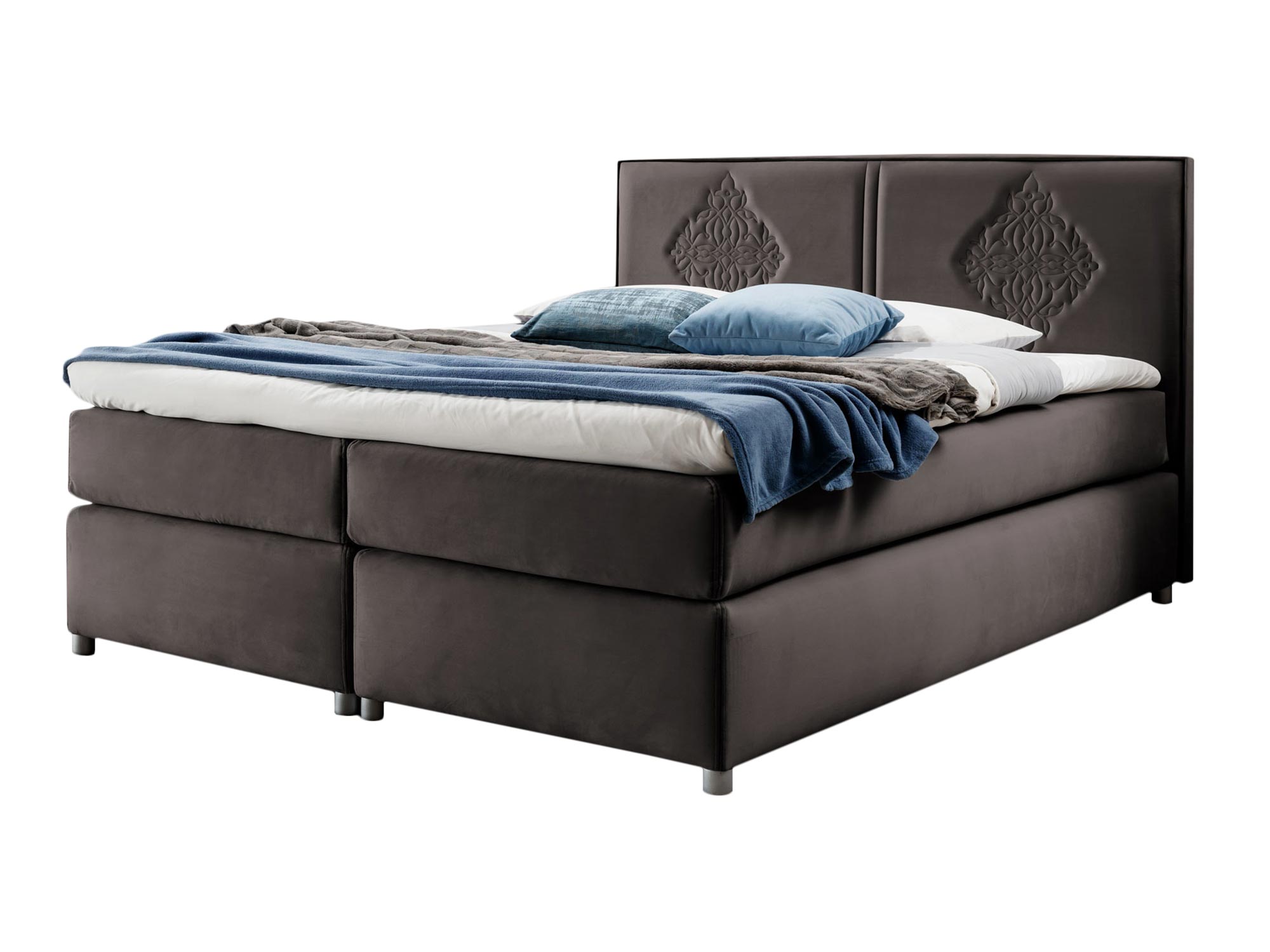 Brązowe łóżko kontynentalne w eleganckim wzornictwem