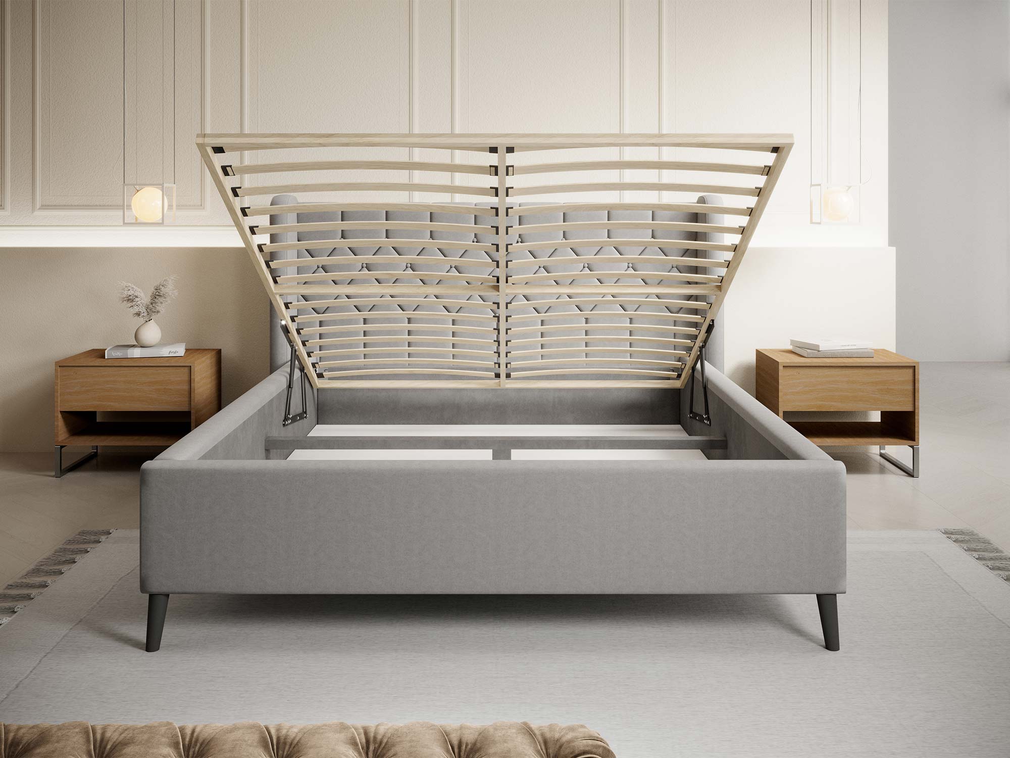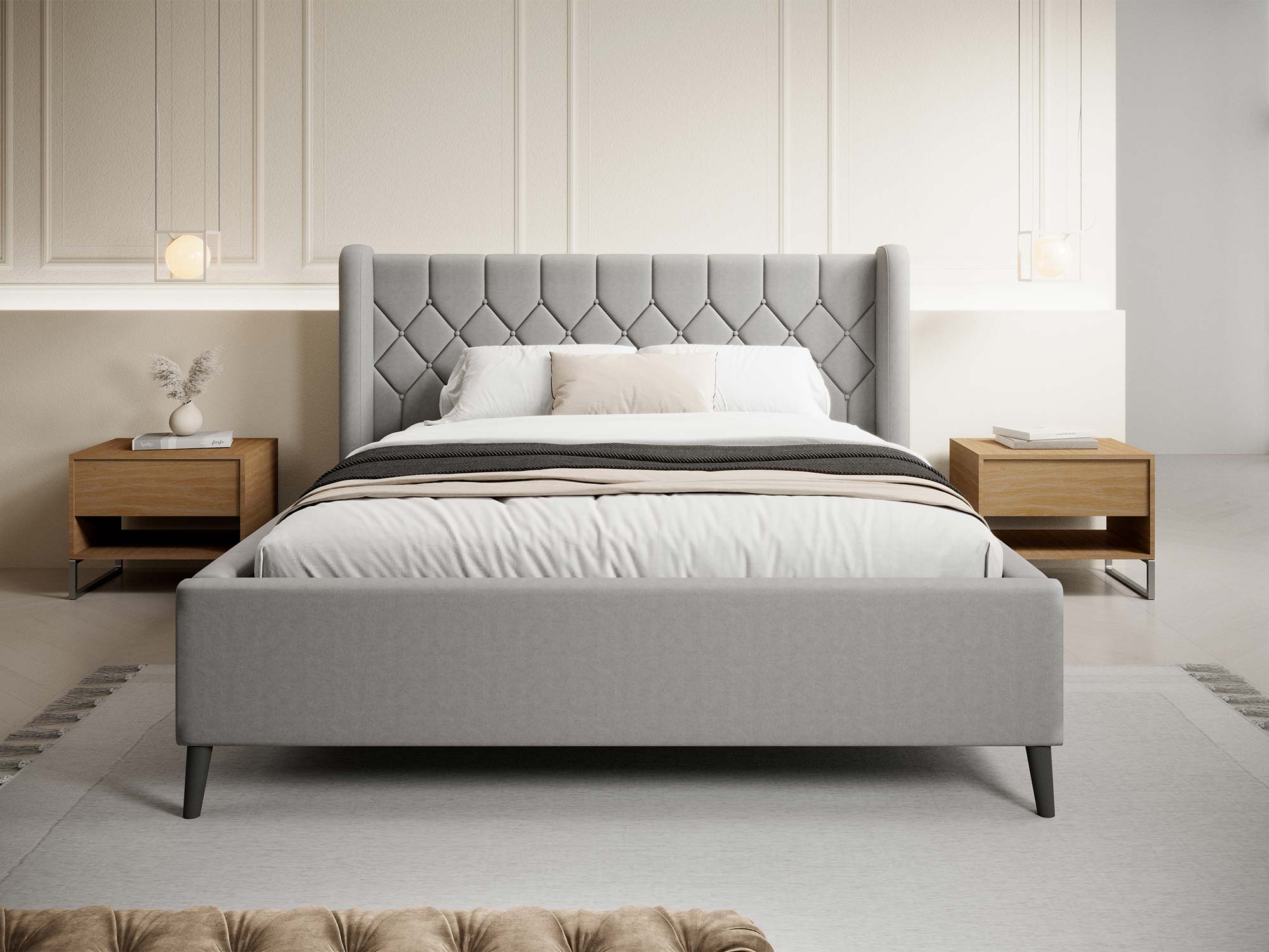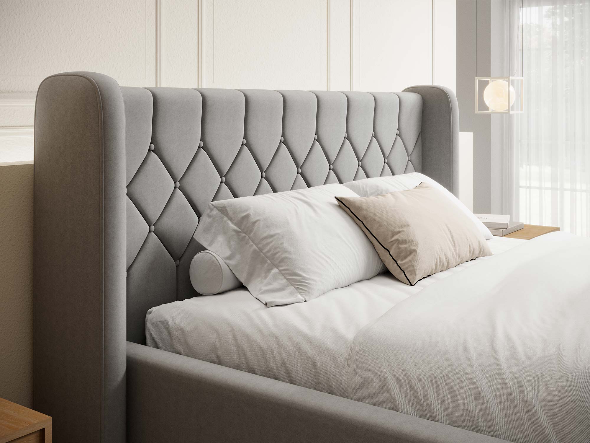 Wyobraź sobie ten moment, gdy wieczorem opierasz się o miękkie, pikowane wezgłowie, a sypialnię wypełnia cisza i ciepłe światło lampki nocnej. DIANA zamienia codzienny odpoczynek w mały rytuał luksusu – subtelna elegancja, przytulny klimat i design, który nie wychodzi z mody.