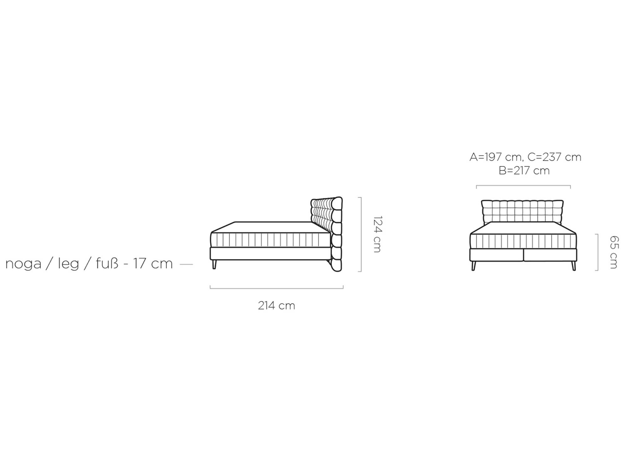 • Powierzchnia spania: A – 140 × 200 cm | B – 160 × 200 cm | C – 180 × 200 cm