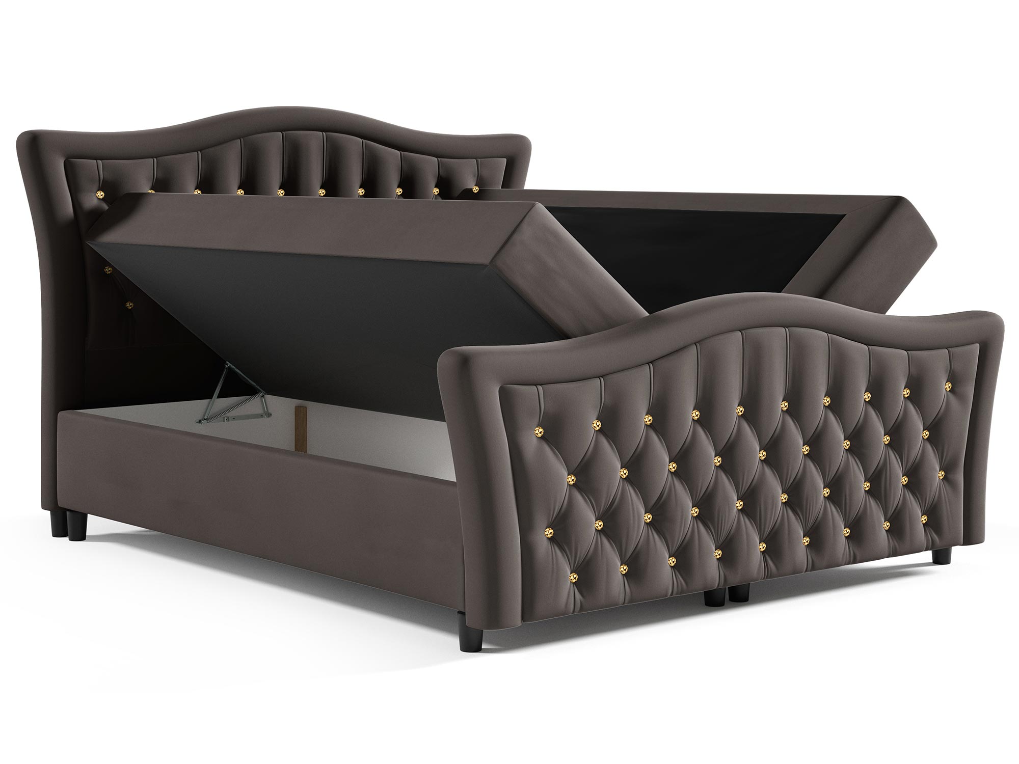 Łóżko w kolorze grafitowym - stylowy model z głębokim pikowaniem, wyrazisty, ciemny odcień, nowoczesny design.