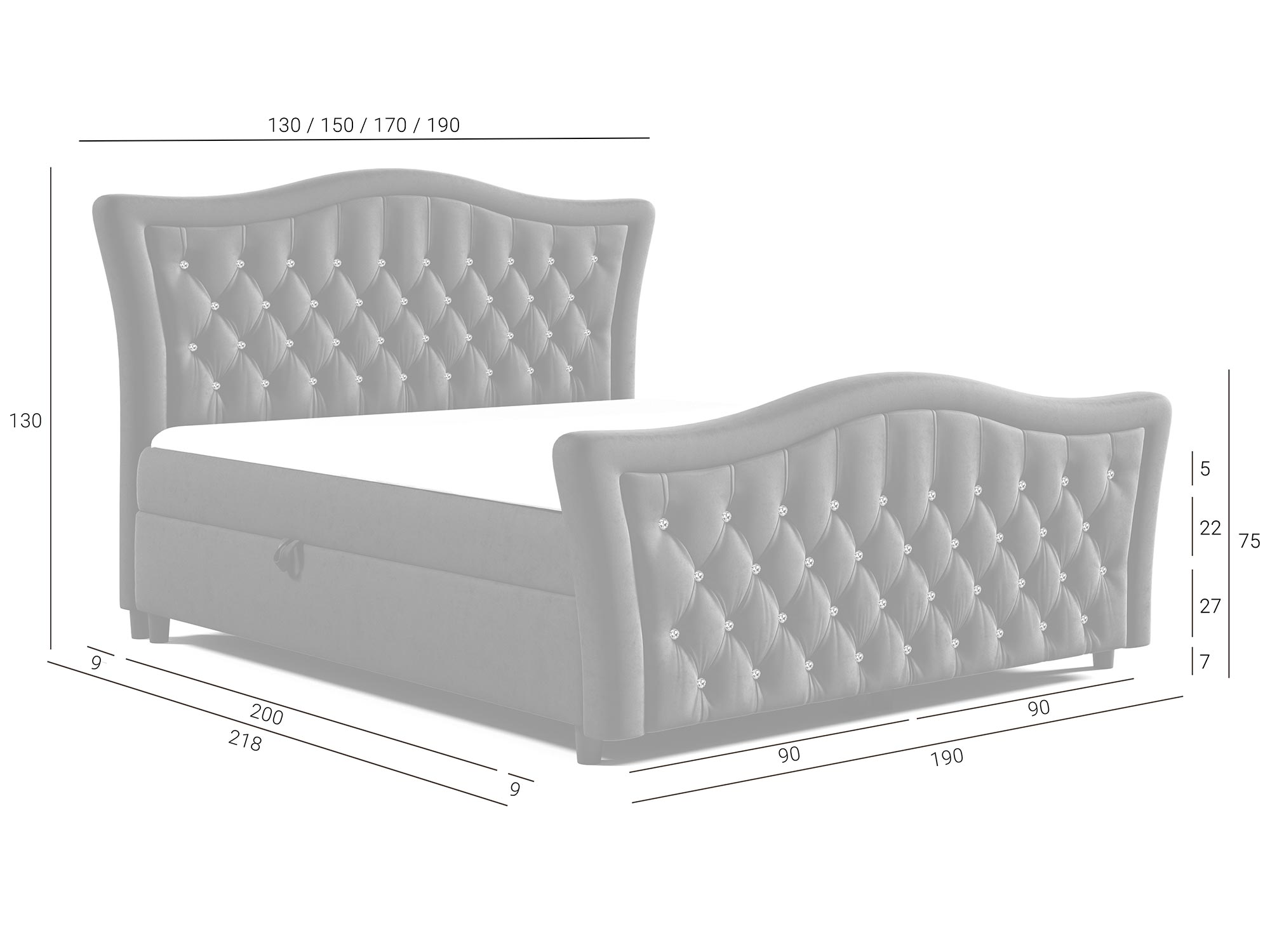 Szerokość 130 cm 150 cm 170 cm 190 cm 210 cm