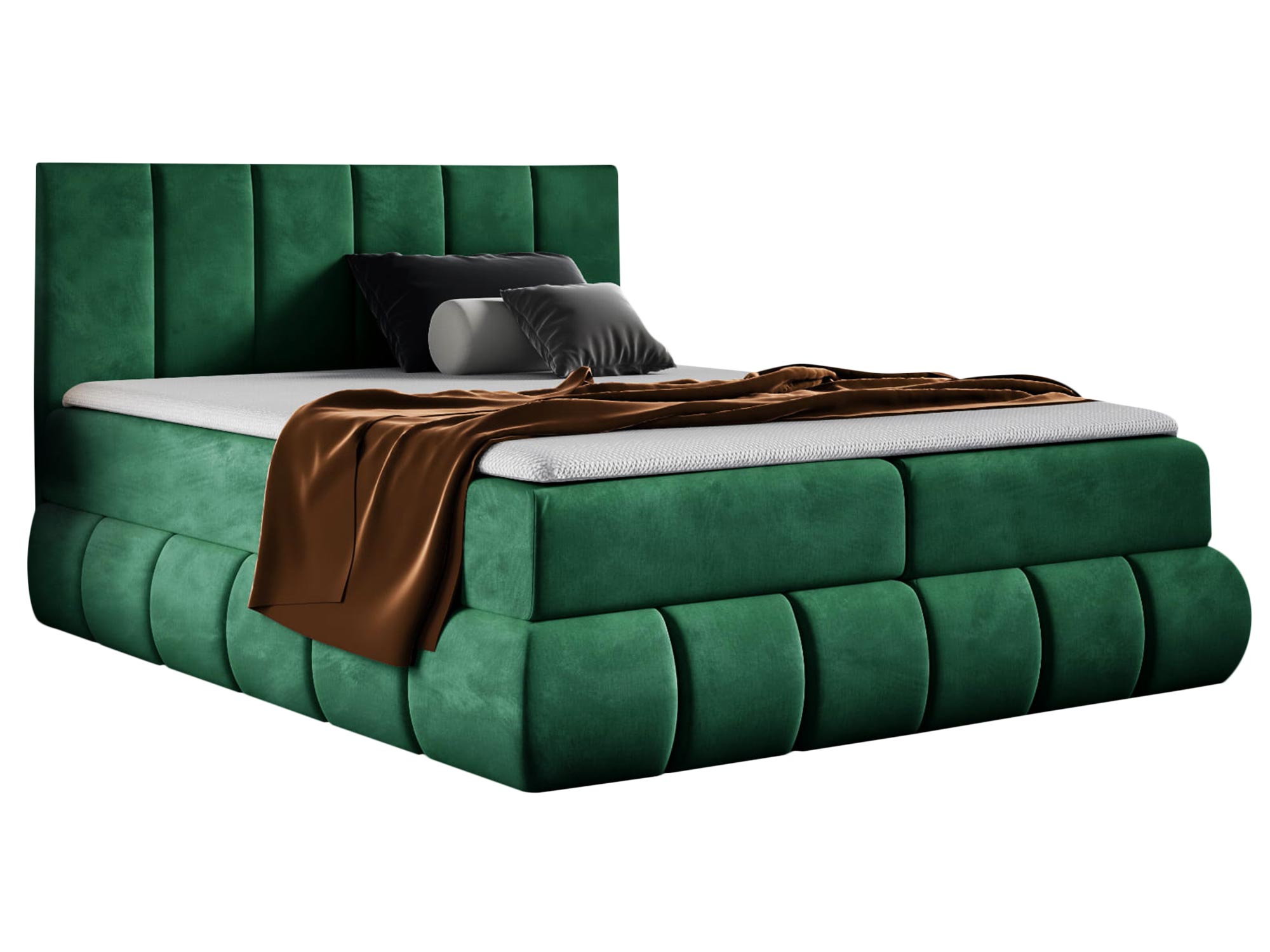 Łóżko tapicerowane w kolorze butelkowej zieleni