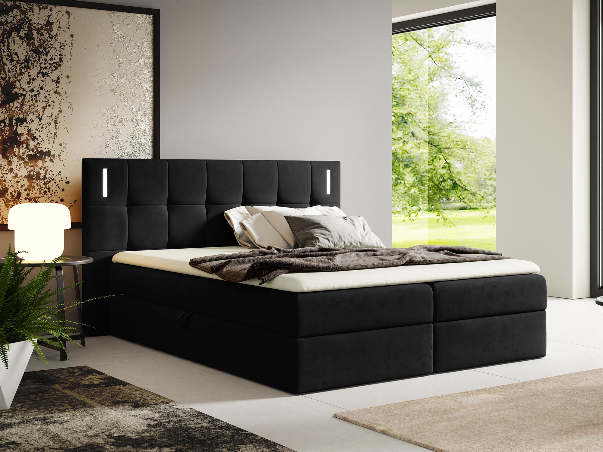 Łóżko z Pikowaniem i Subtelnym Oświetleniem LED Midnight – Nowoczesny Komfort i Minimalizm