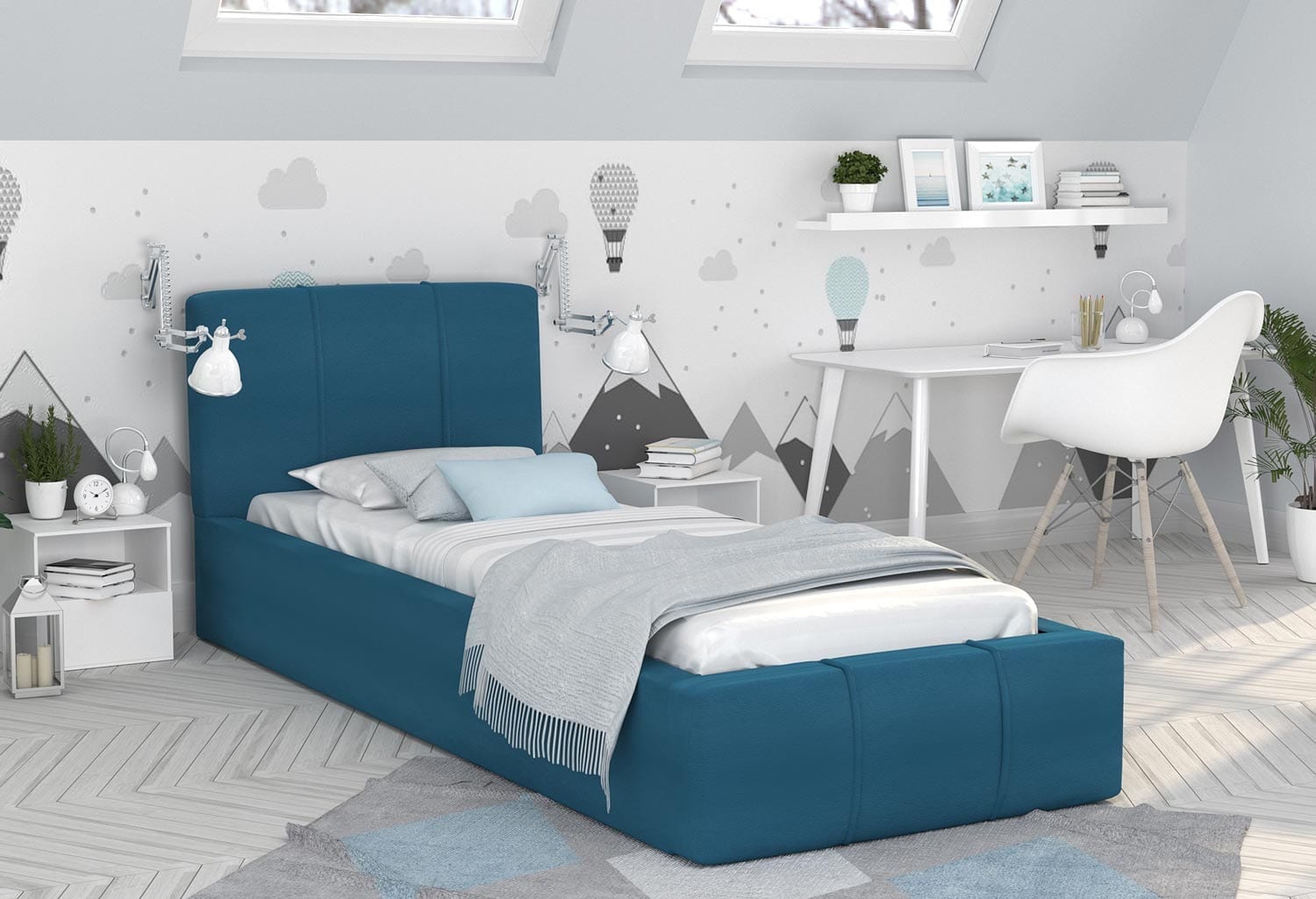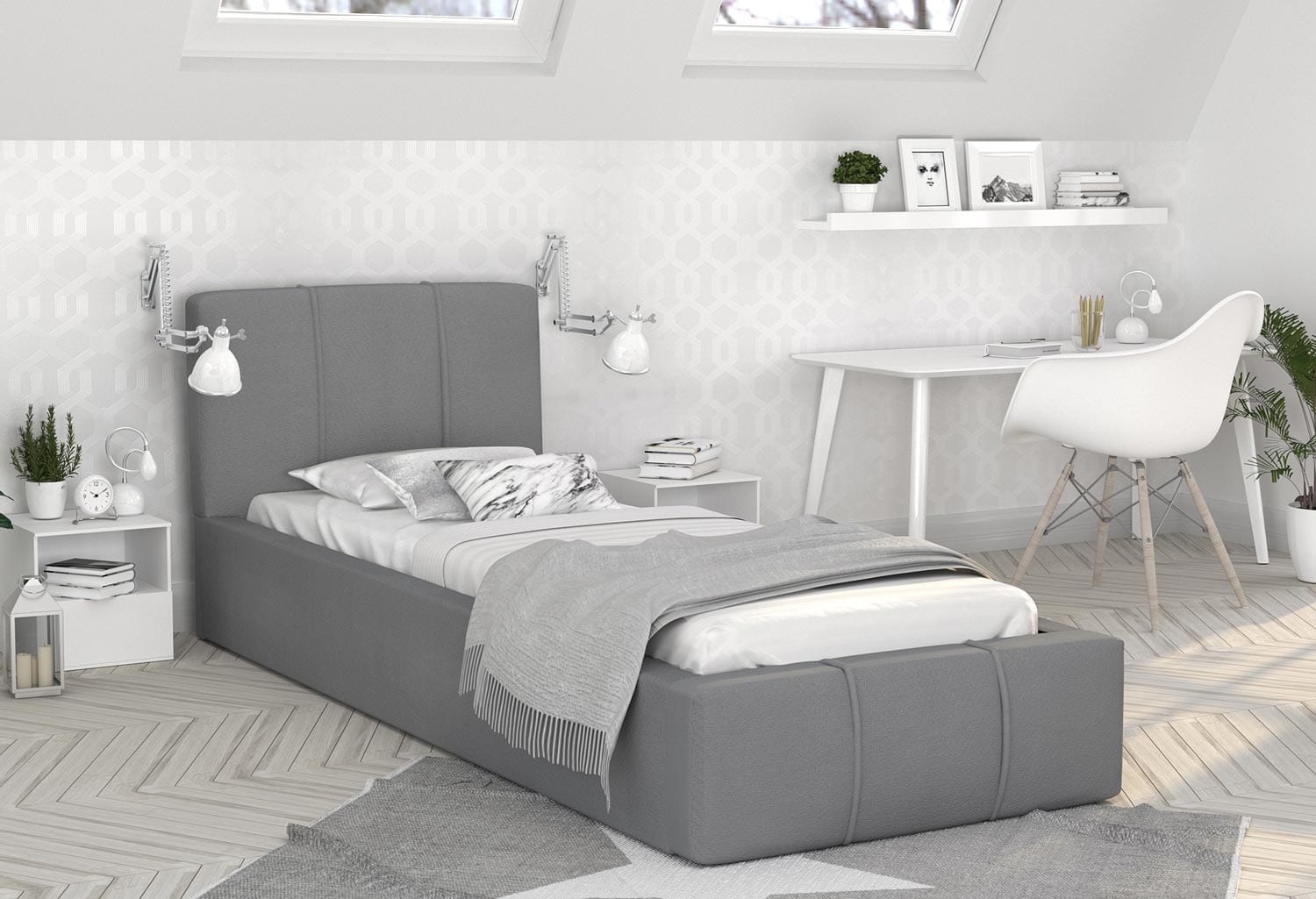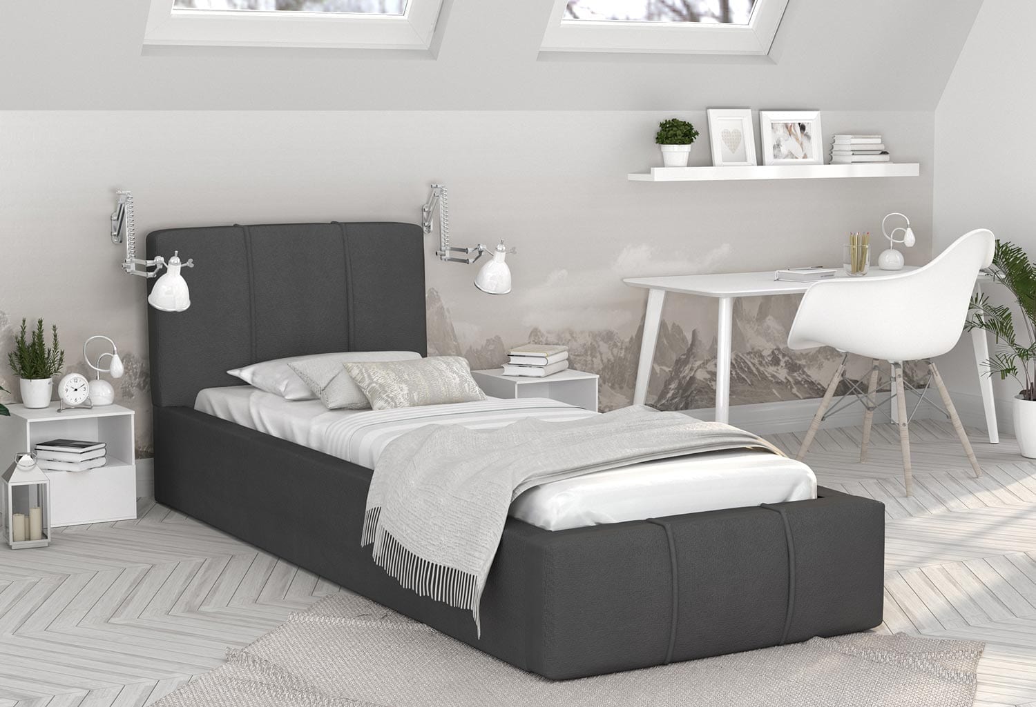 • Na zdjęciu prezentowane jest łóżko w rozmiarze 90×200.