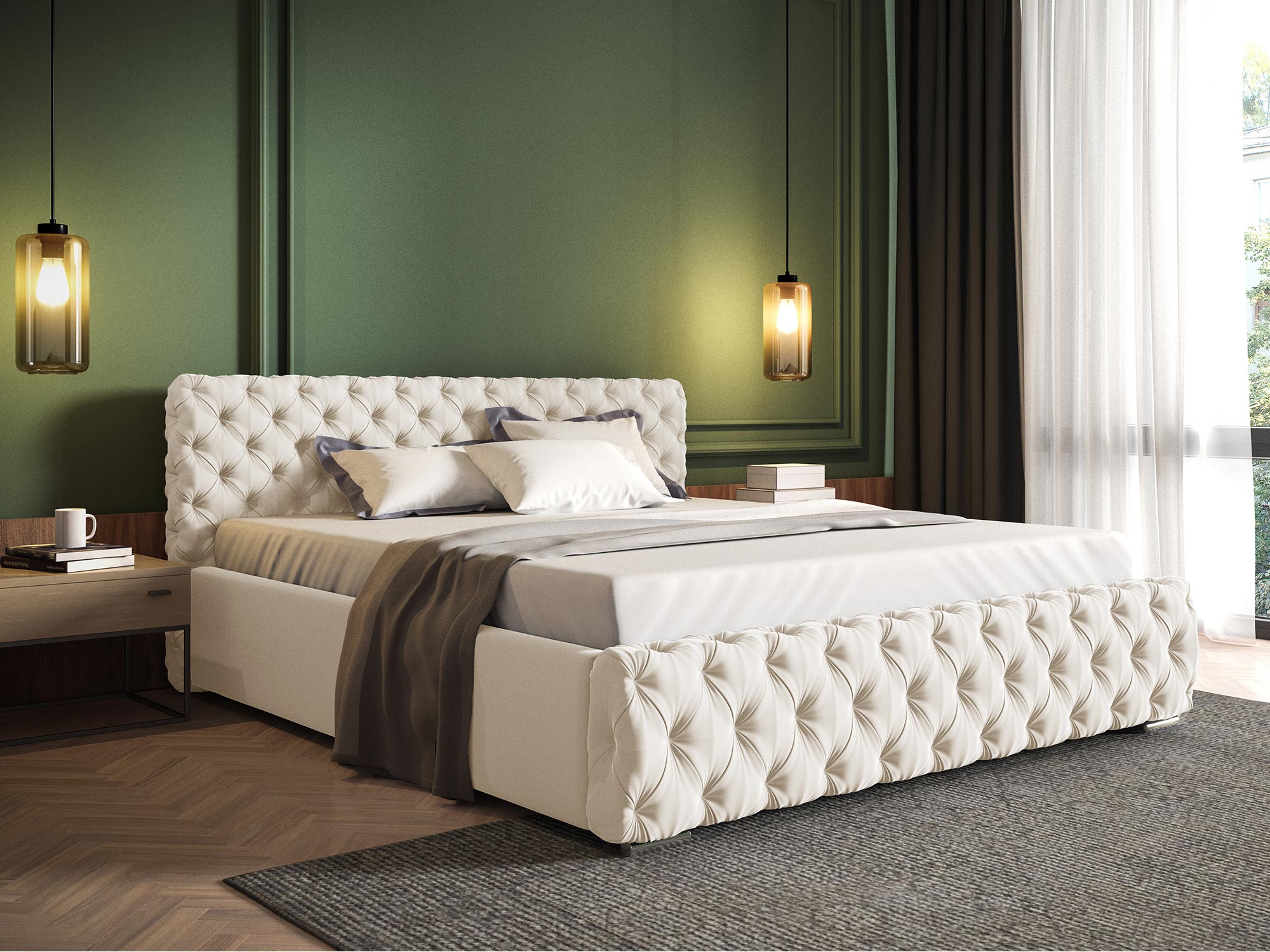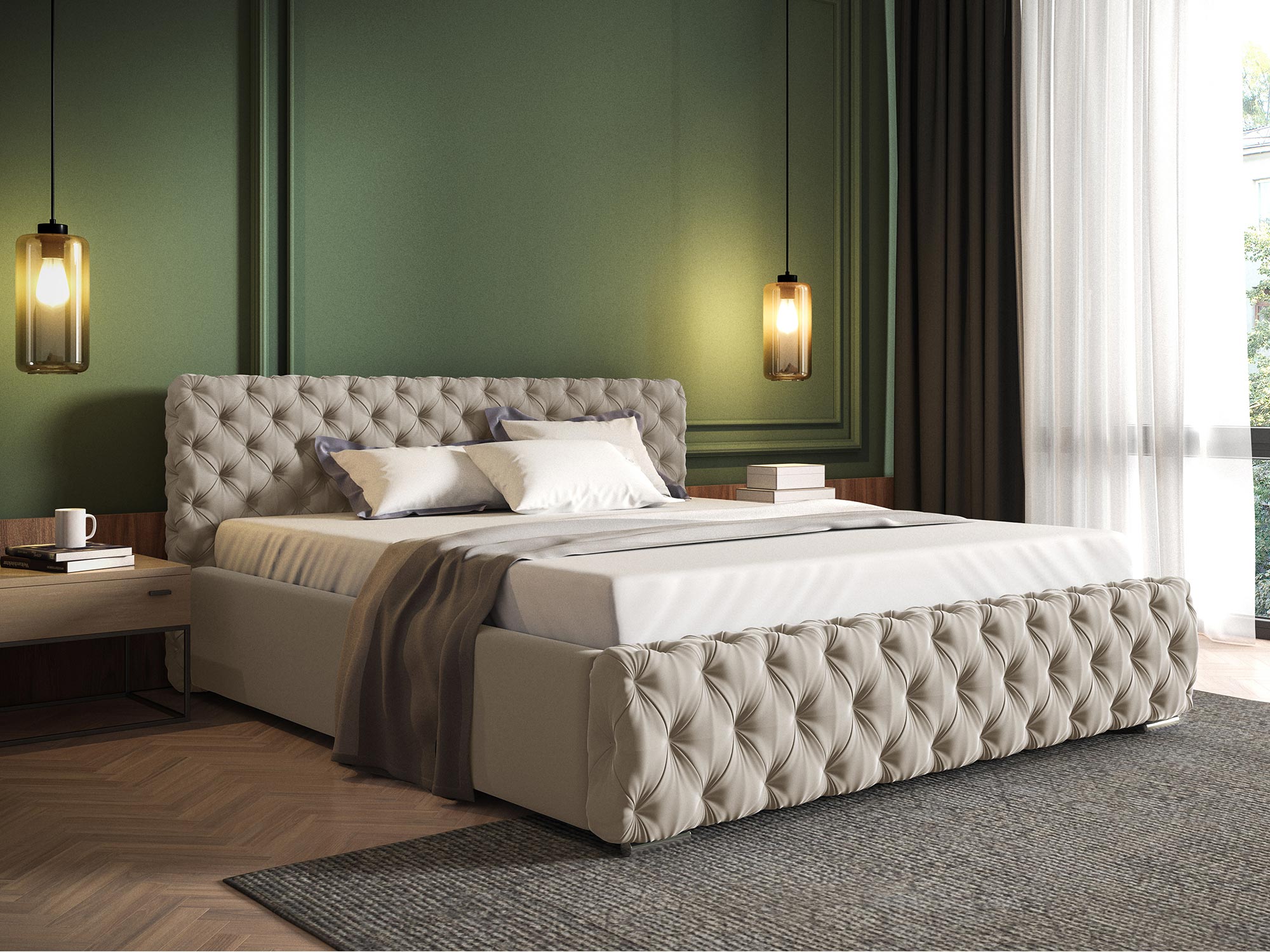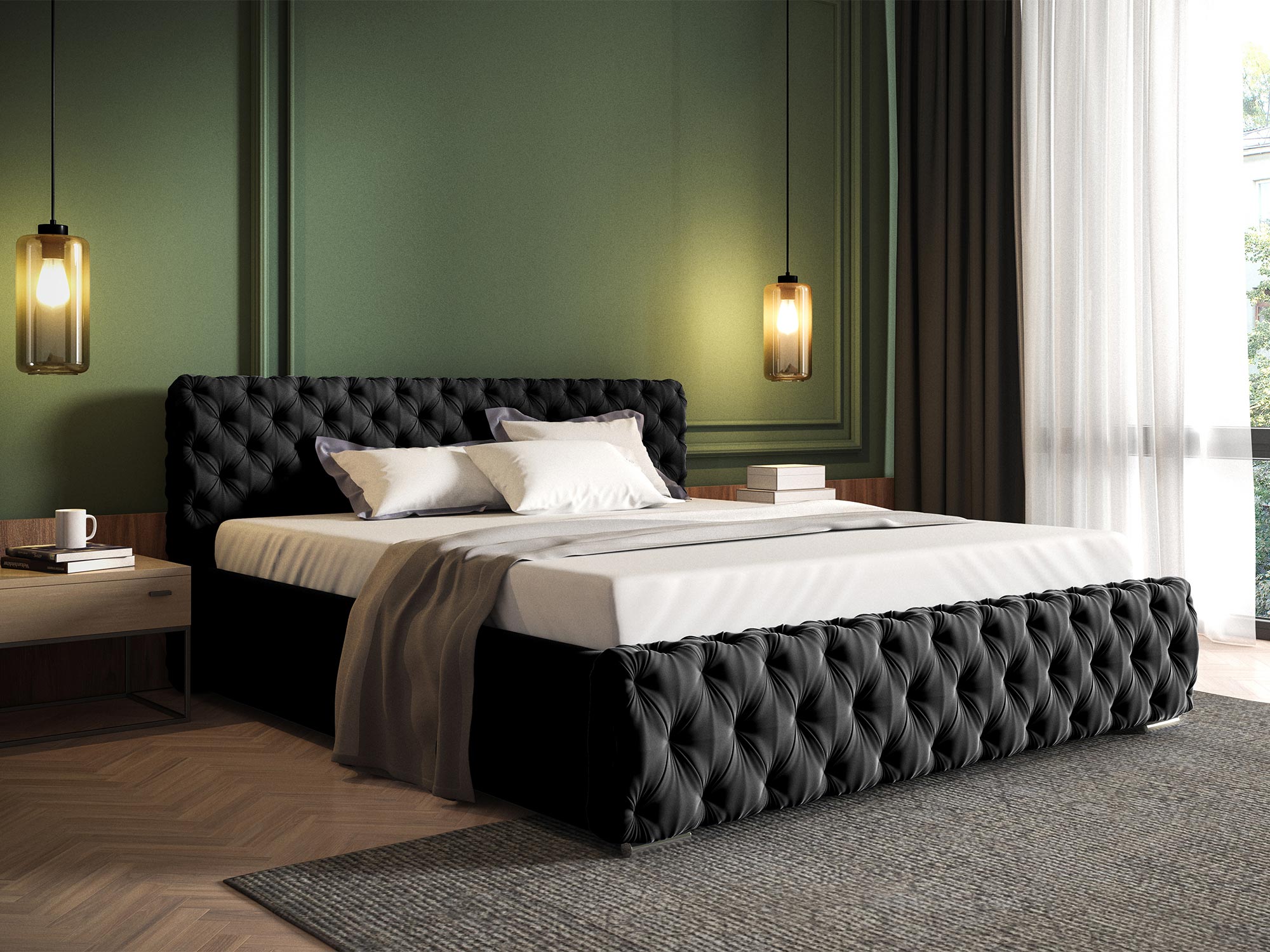 • Głęboko pikowane zagłowie i przód łóżka: Zapewniają luksusowy wygląd i wygodę.