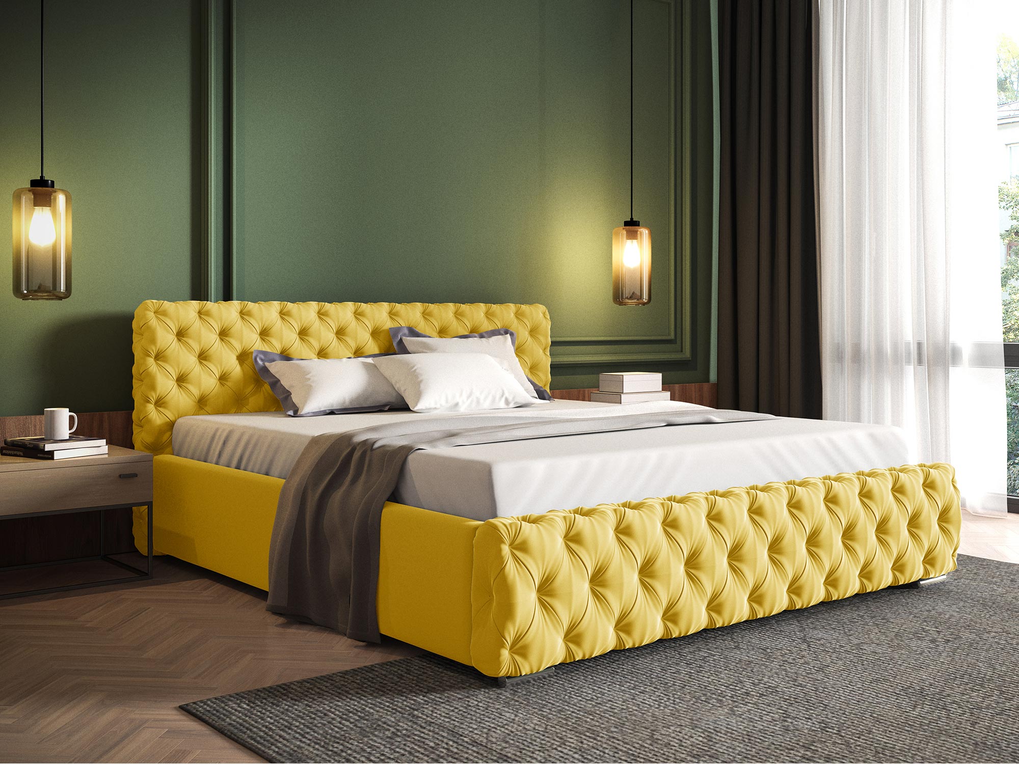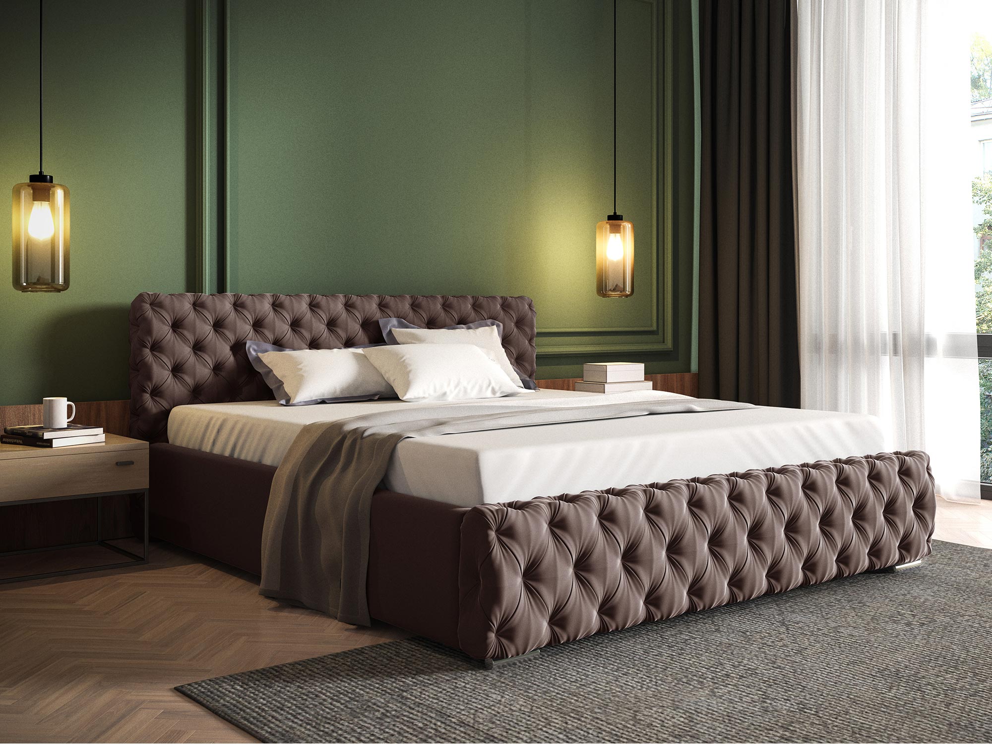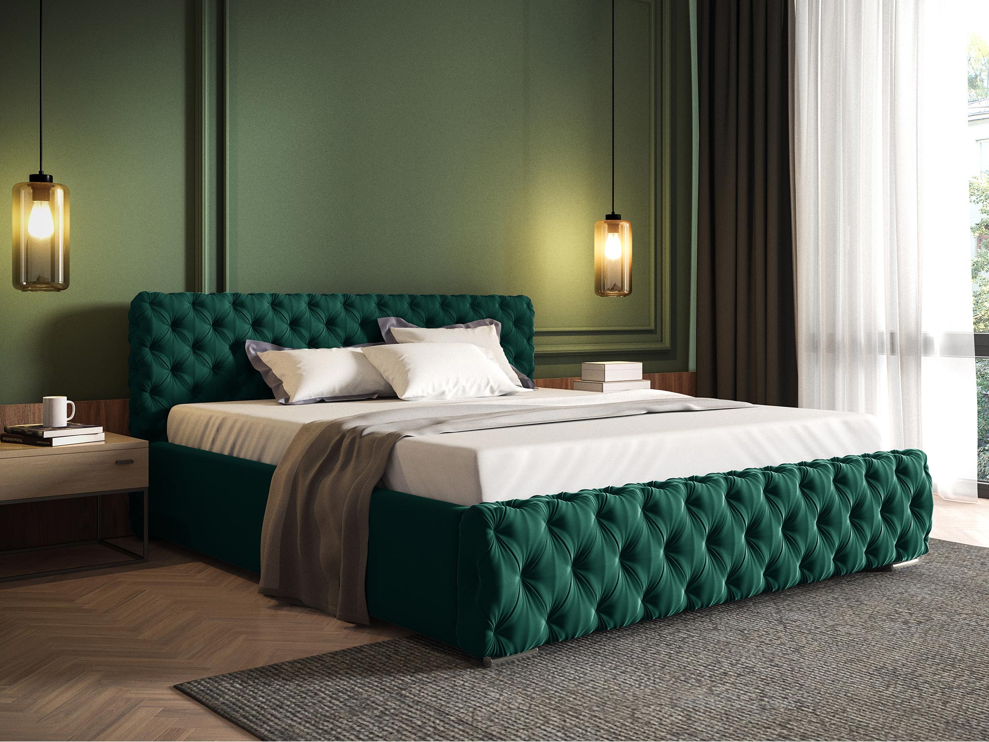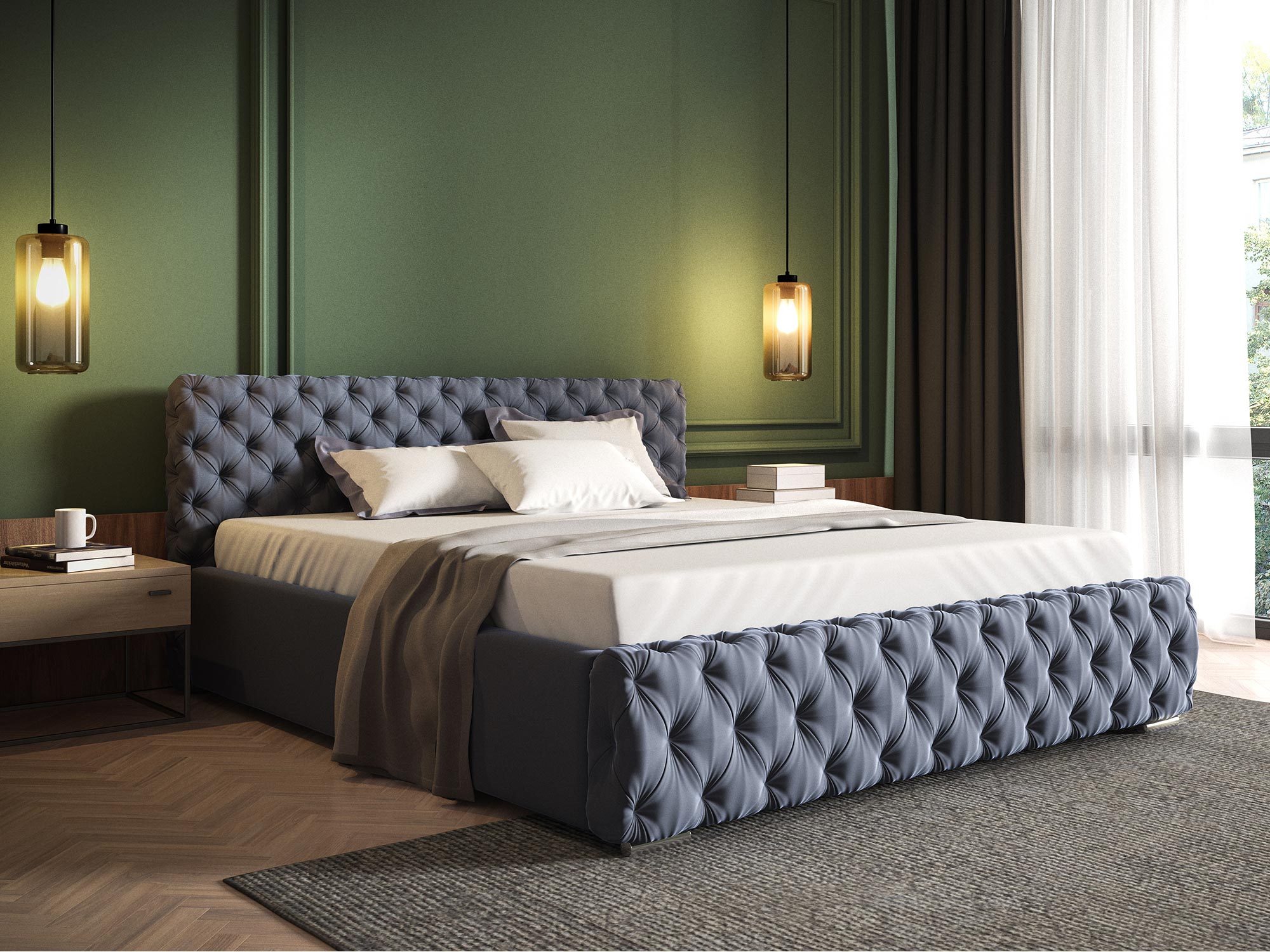 • Głęboko pikowane zagłowie i przód łóżka: Zapewniają luksusowy wygląd i wygodę.