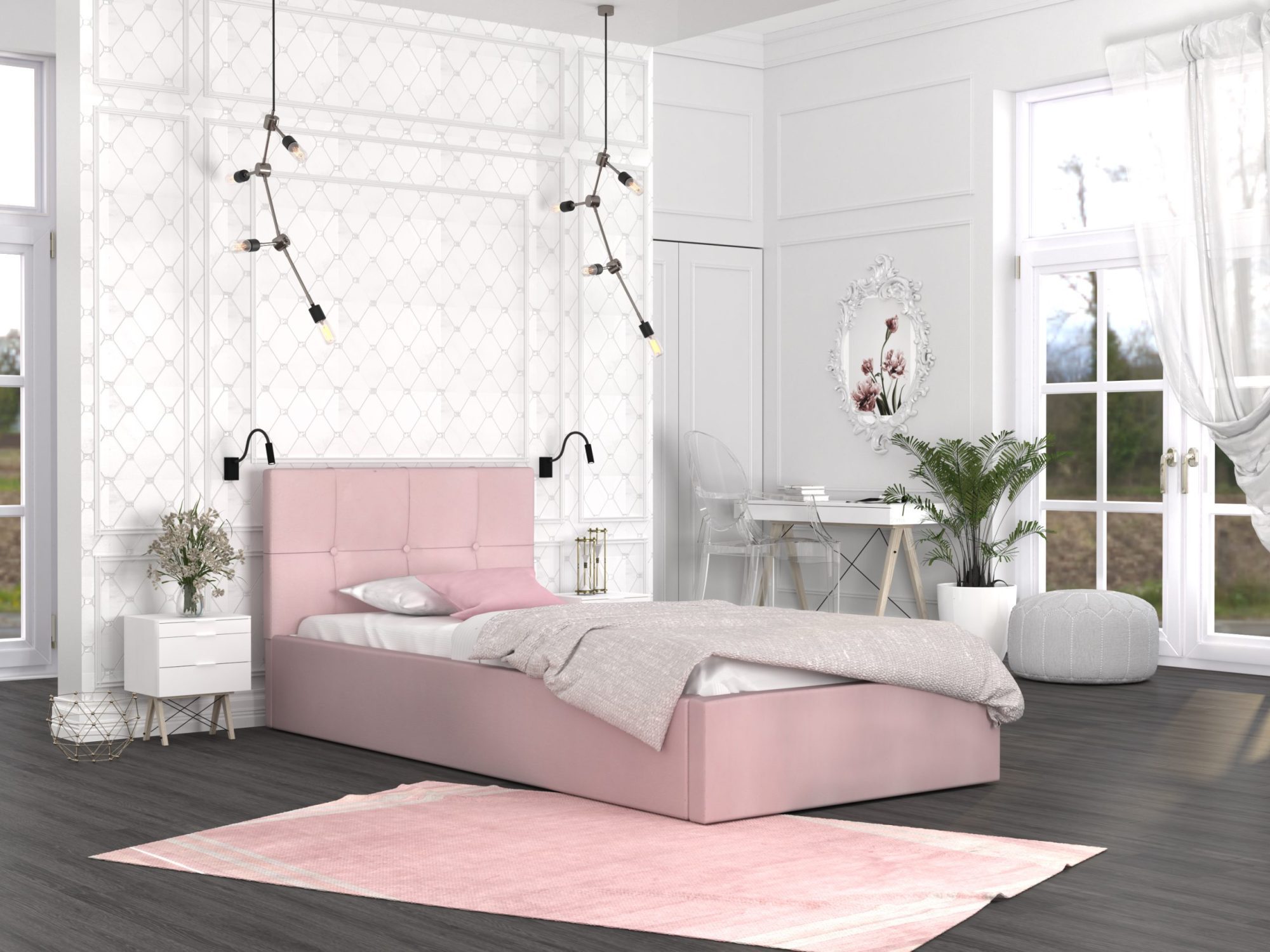 Pojedyncze łóżko pastelowy róż aranżacja 120x200 RUBY