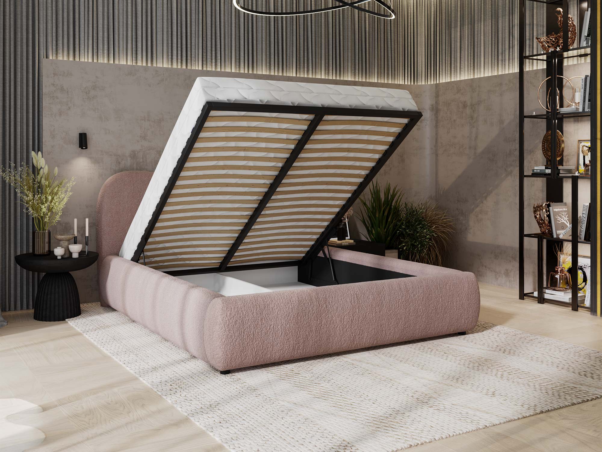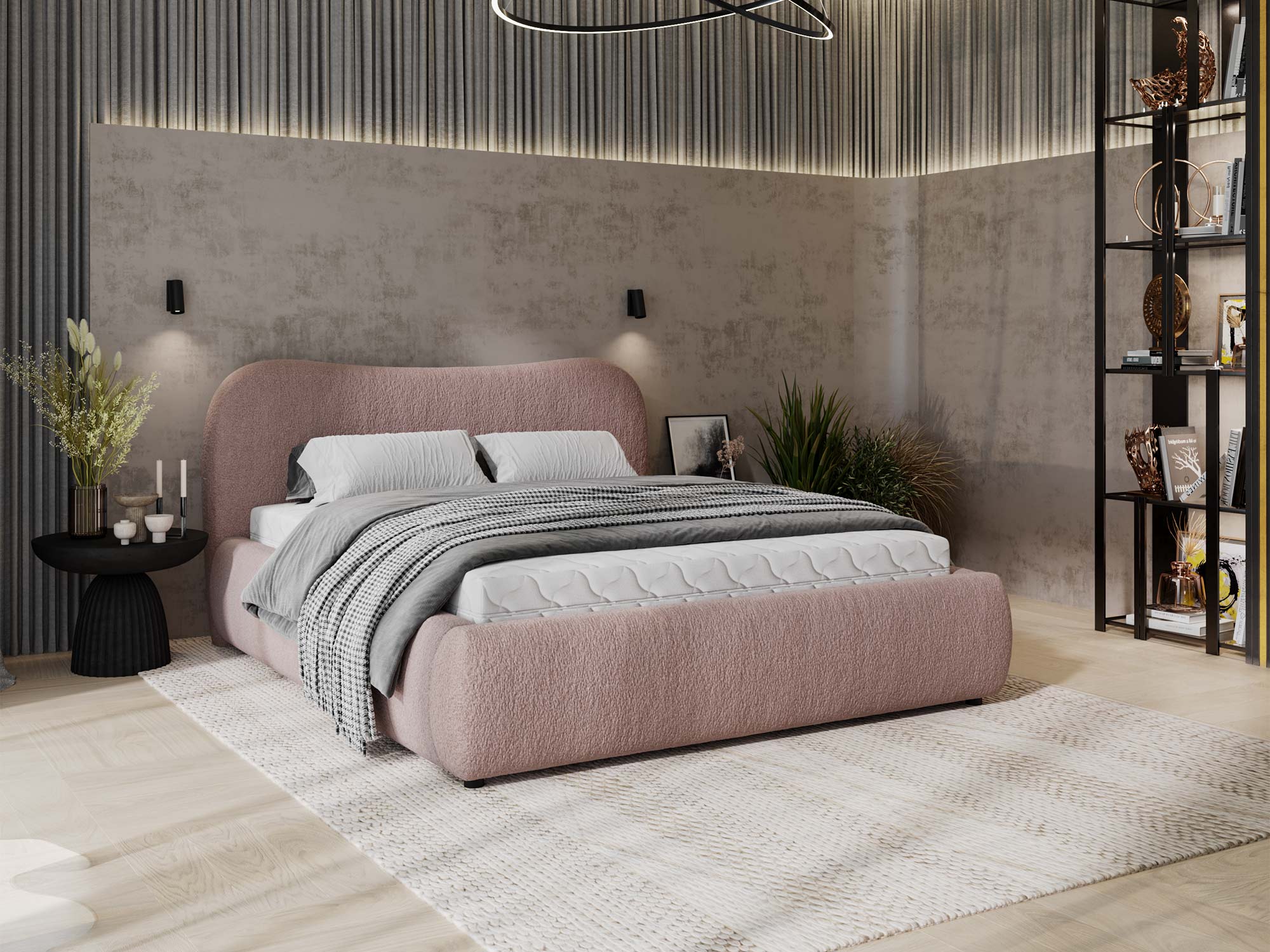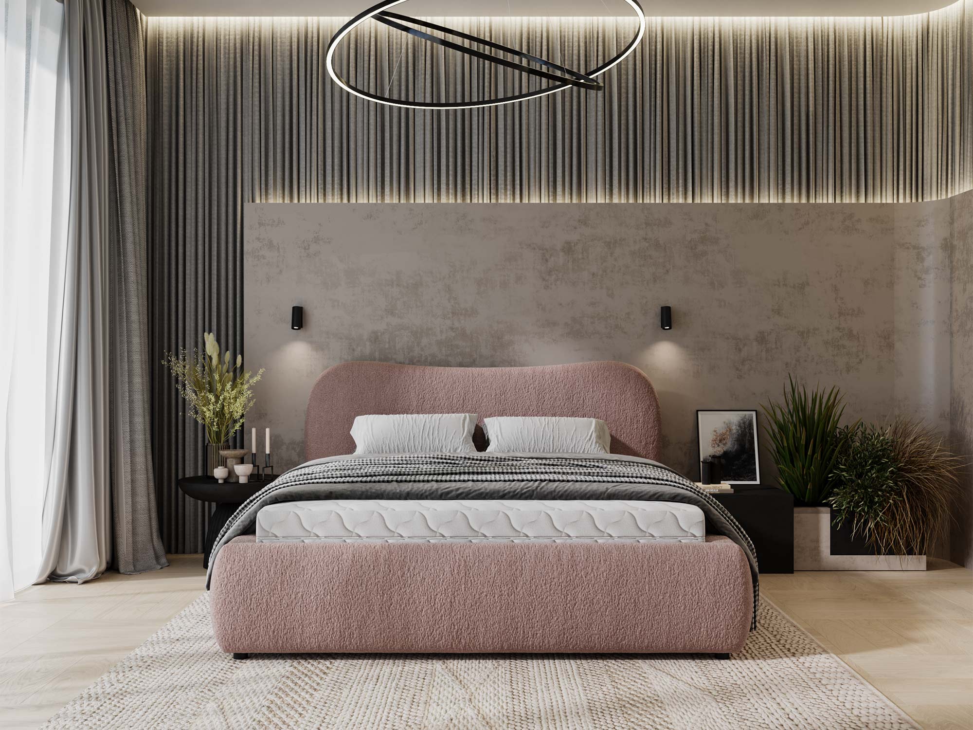 Łóżko DEMISA to elegancka i nowoczesna propozycja, która łączy w sobie wyjątkowy komfort oraz wyrafinowany design. To doskonały wybór dla osób ceniących nowoczesne aranżacje wnętrz, a także dla tych, którzy poszukują mebli glamour. Obicie w przytulnej różowej tkaninie boucle sprawia, że łóżko to stanowi nie tylko estetyczny, ale także niezwykle funkcjonalny element każdej sypialni.