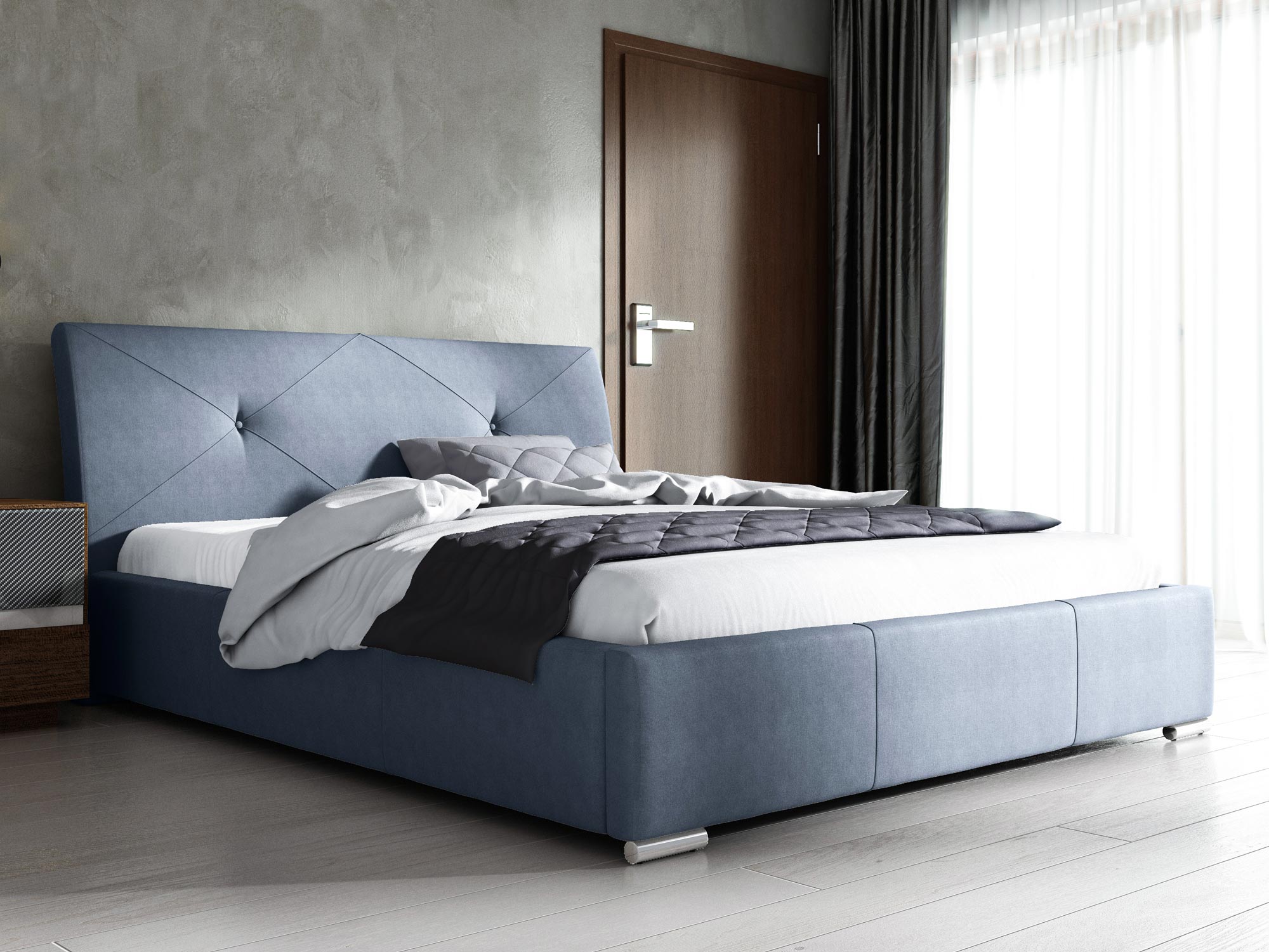 Łóżko FELCE wyróżnia się stylowym zagłówkiem wygiętym delikatnie do tyłu, co nadaje mu klasyczny, a zarazem nowoczesny wygląd. Pikowany zagłówek wykonany z pianki o grubości 3 cm nie tylko dodaje elegancji, ale również zapewnia wygodne podparcie podczas odpoczynku. To idealne rozwiązanie dla osób, które cenią komfort – wygięty zagłówek umożliwia wygodne oparcie, dzięki czemu wieczorny relaks staje się jeszcze bardziej komfortowy.