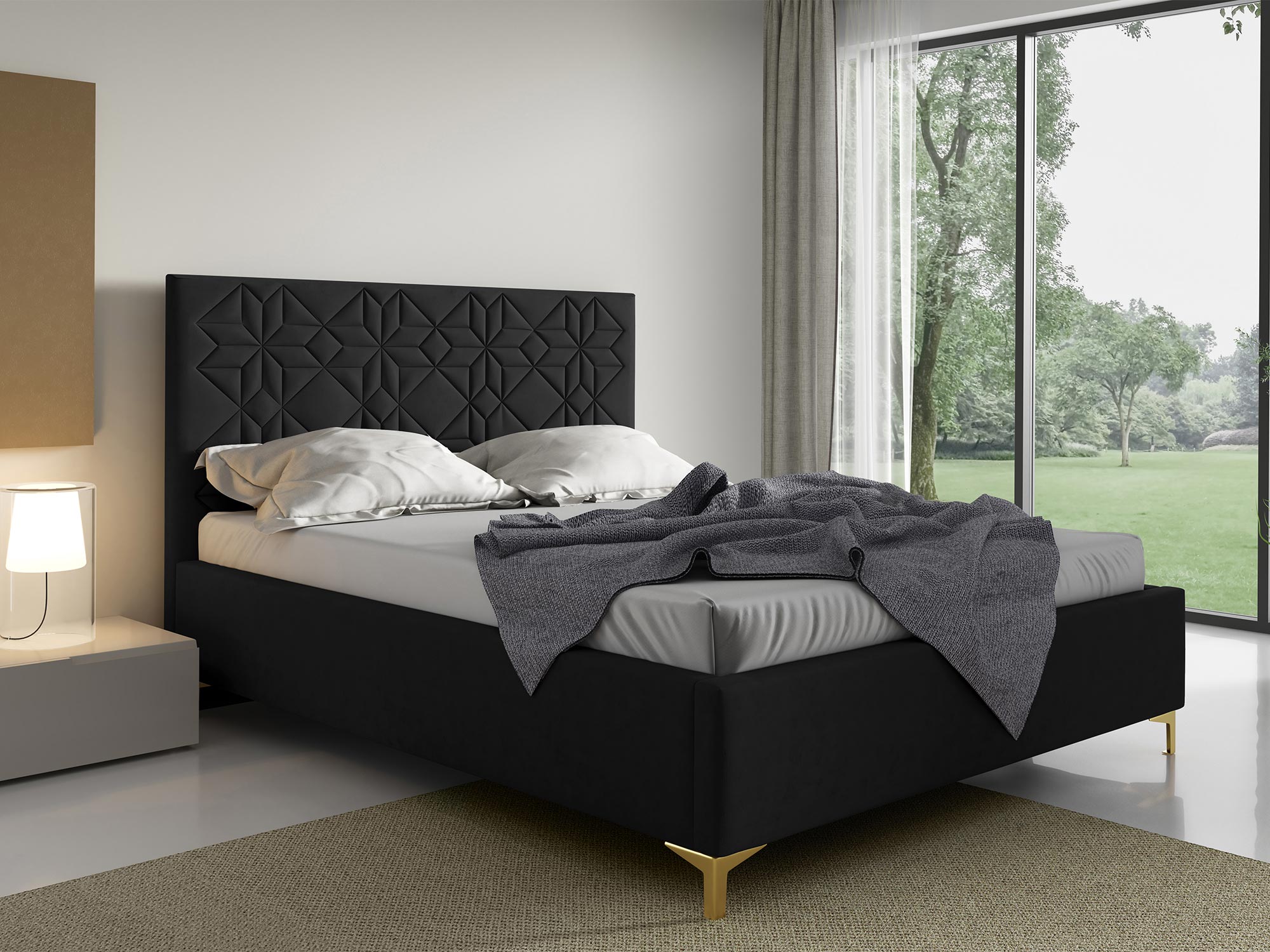 Nie bez znaczenia jest również fakt, że masz możliwość wyboru koloru nóżek – eleganckie, złote metalowe nóżki dodają blasku i podkreślają luksusowy wygląd łóżka. Dla osób preferujących bardziej stonowane rozwiązania dostępna jest także opcja nóżek w kolorze czarnym. Niezależnie od wybranego wariantu, nóżki zapewniają stabilność i trwałość konstrukcji, a przy tym dodają meblowi lekkości.
