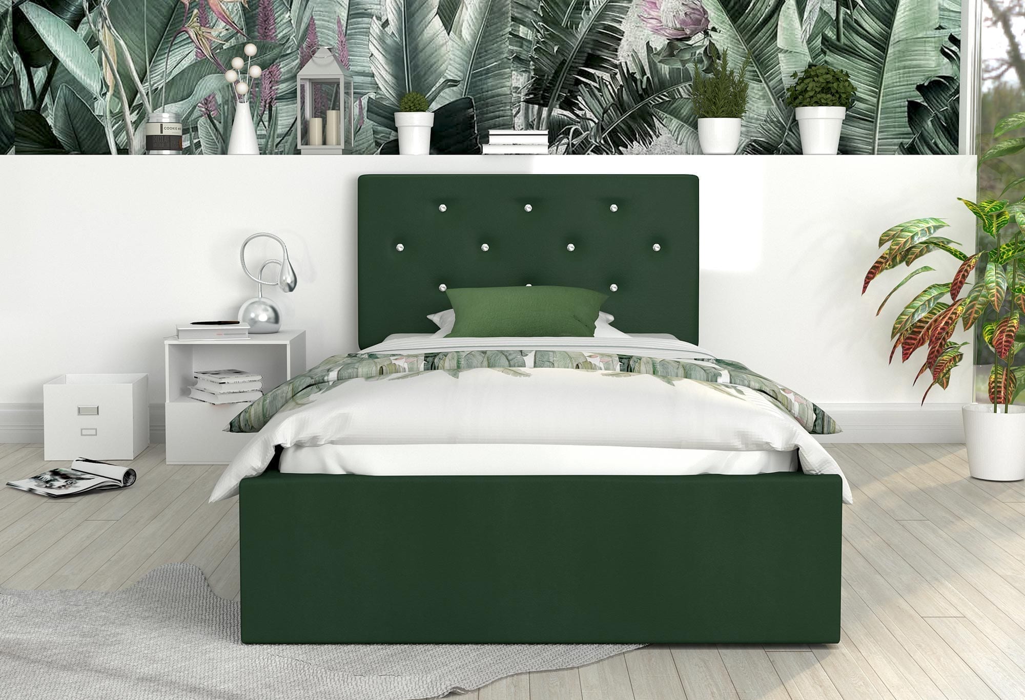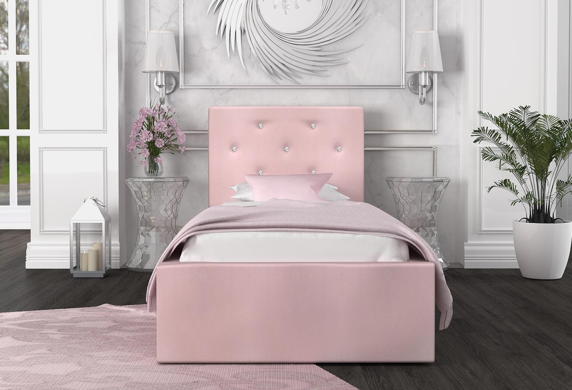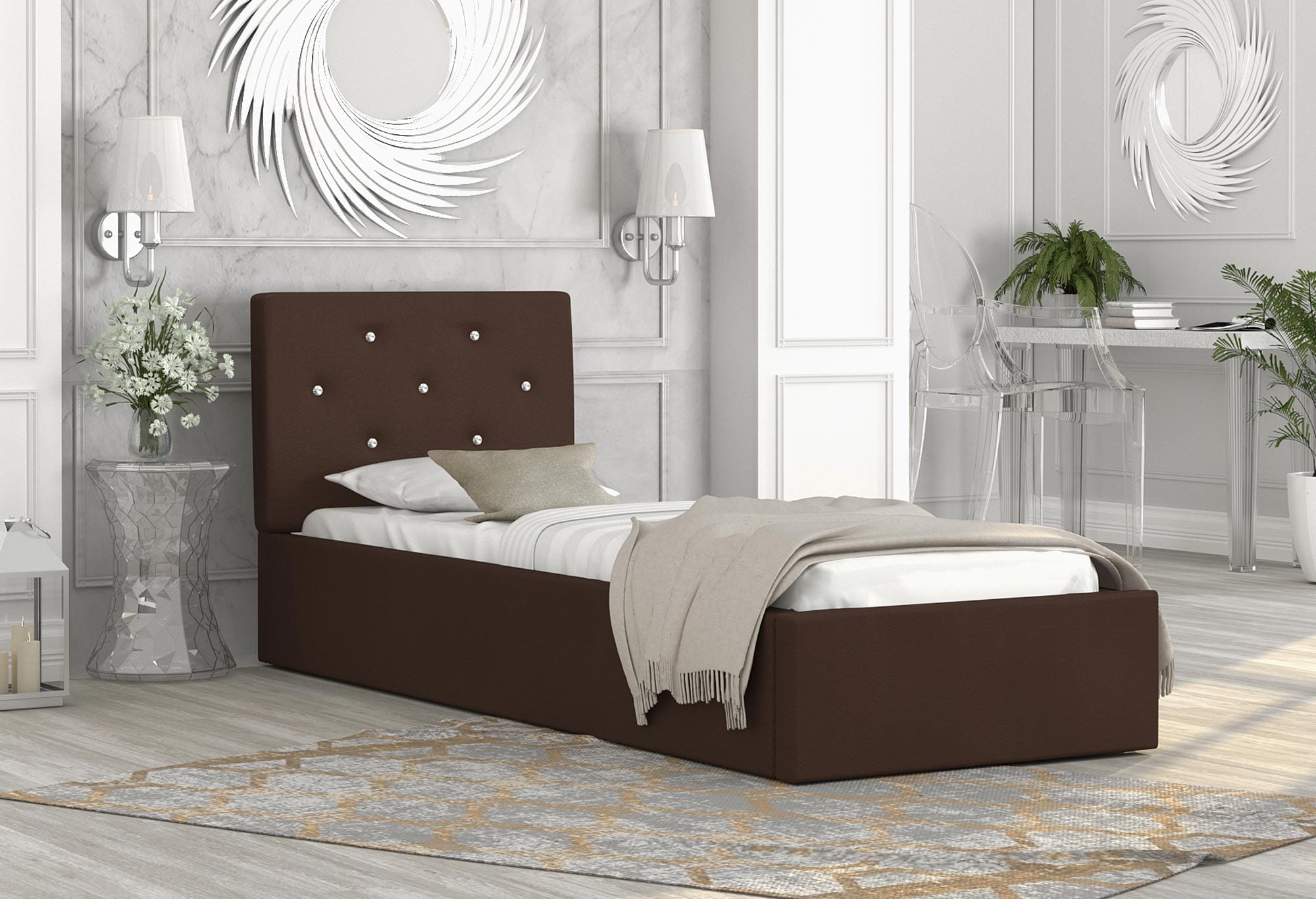 Przede wszystkim wygodne tapicerowane łóżko 90×200 FRESCO od polskiego producenta, do którego produkcji wykorzystano materiały wysokiej jakości, dzięki czemu gotowy mebel jest solidny i świetnie się prezentuje. Ponadto ciekawy design w zestawieniu z trwałością daje nam mebel, który świetnie będzie pasował do wielu wnętrz. Dodatkowo dostosowane do potrzeb użytkownika łóżko zapewnia komfort oraz spokojny sen. Łóżka są dostępne w kilku wymiarach i wielu wybarwieniach, co w rezultacie pozwoli bez trudu dopasować je do wielkości i wystroju sypialni. Wśród naszych produktów znajdują się również różnego typu materace, które będą stanowić znakomite uzupełnienie łóżka. Wezgłowie łóżka jest dostępne w pikowaniu z guzikami lub kryształkami do wyboru. Zobacz także inne łóżka jednoosobowe dostępne na naszej stronie.