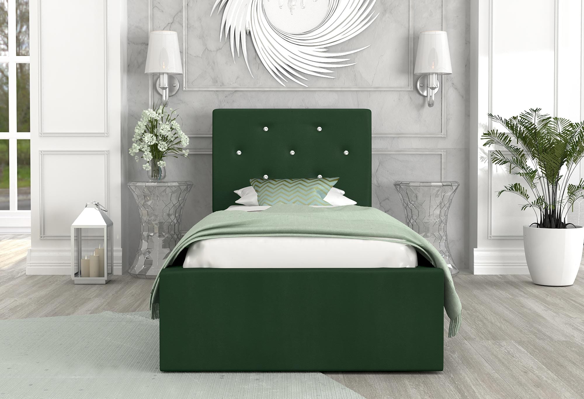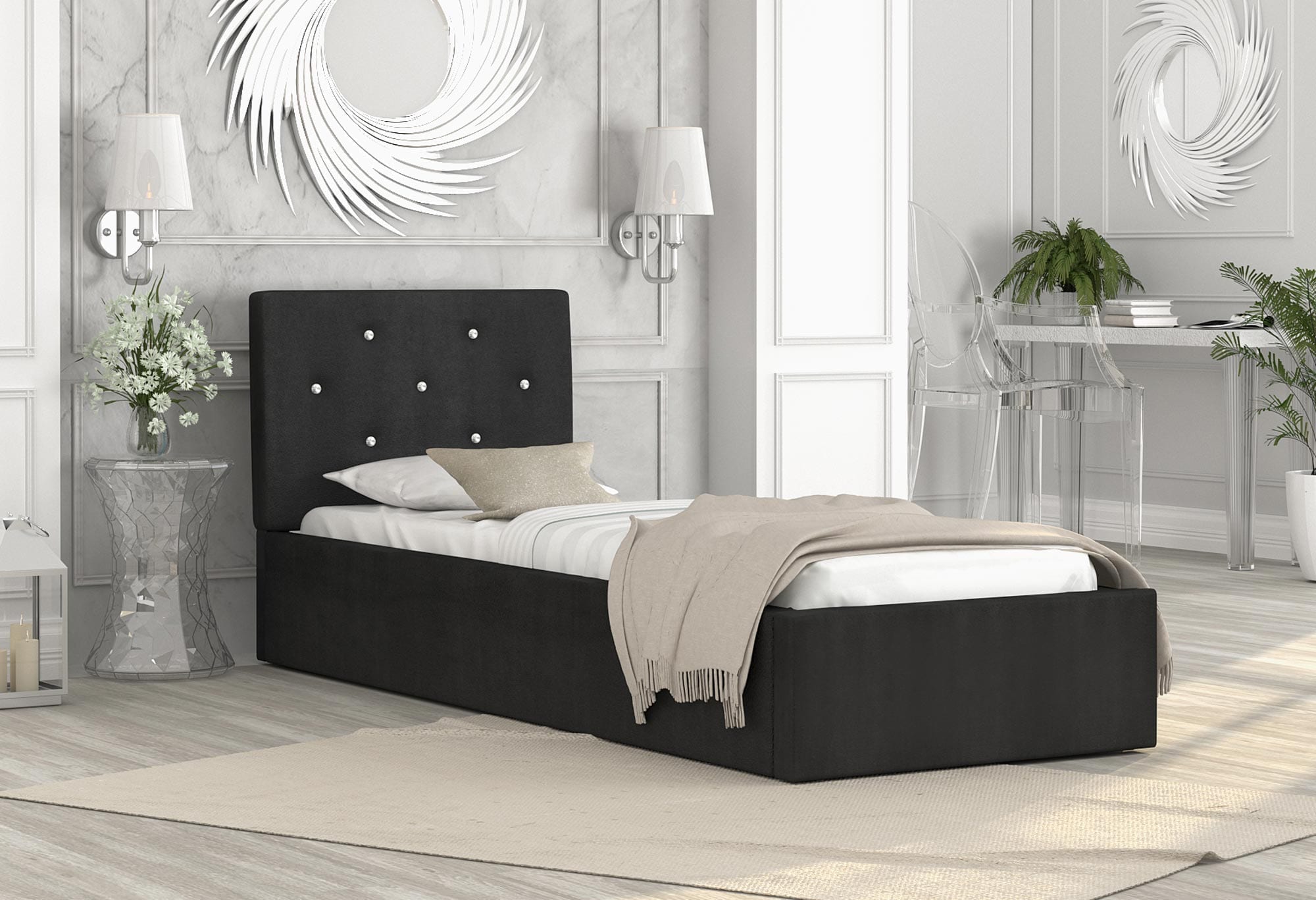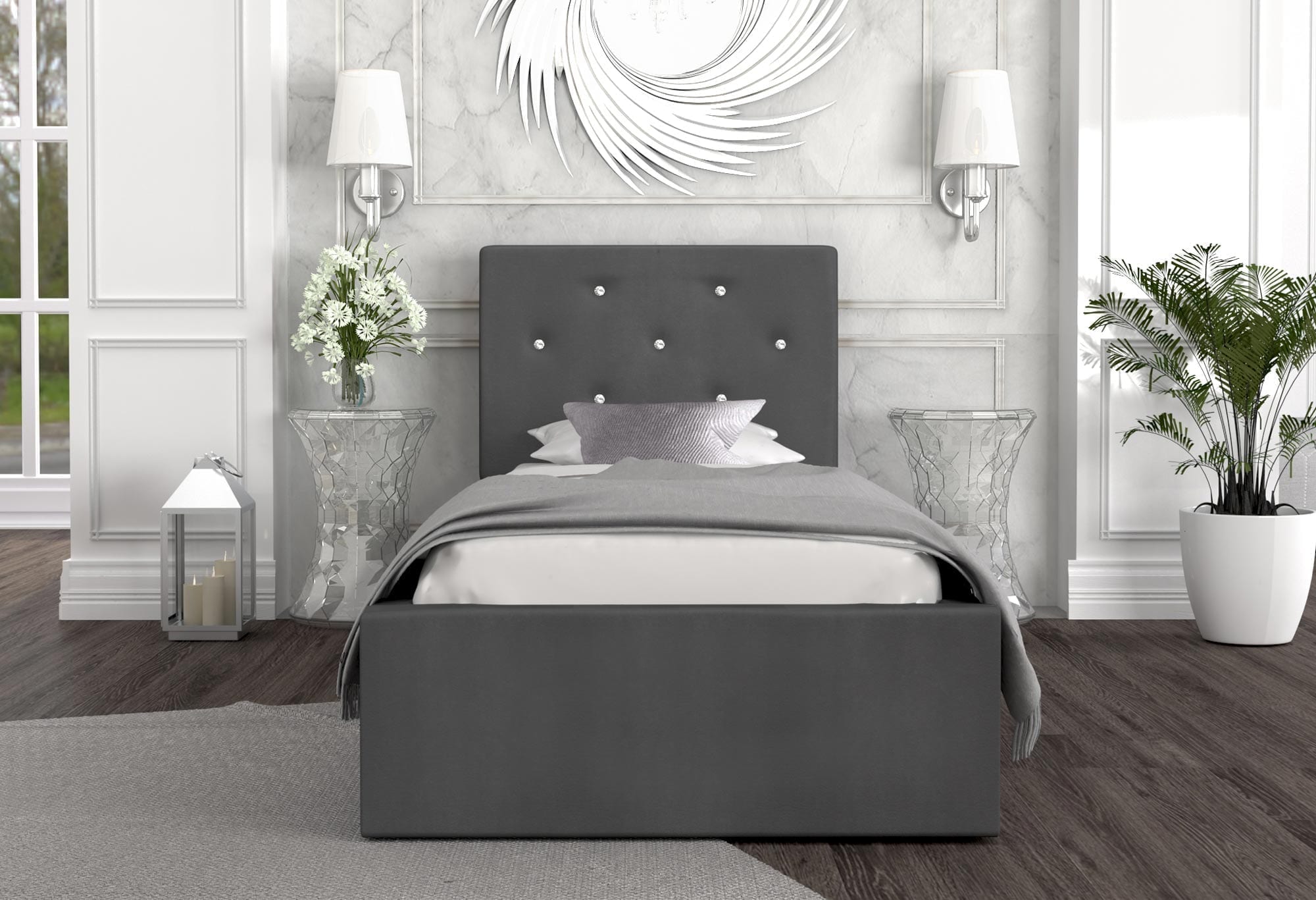 Przede wszystkim wygodne tapicerowane łóżko 90×200 FRESCO od polskiego producenta, do którego produkcji wykorzystano materiały wysokiej jakości, dzięki czemu gotowy mebel jest solidny i świetnie się prezentuje. Ponadto ciekawy design w zestawieniu z trwałością daje nam mebel, który świetnie będzie pasował do wielu wnętrz. Dodatkowo dostosowane do potrzeb użytkownika łóżko zapewnia komfort oraz spokojny sen. Łóżka są dostępne w kilku wymiarach i wielu wybarwieniach, co w rezultacie pozwoli bez trudu dopasować je do wielkości i wystroju sypialni. Wśród naszych produktów znajdują się również różnego typu materace, które będą stanowić znakomite uzupełnienie łóżka. Wezgłowie łóżka jest dostępne w pikowaniu z guzikami lub kryształkami do wyboru. Zobacz także inne łóżka jednoosobowe dostępne na naszej stronie.